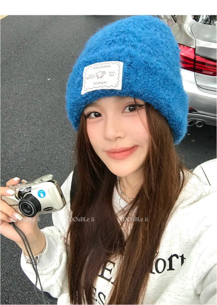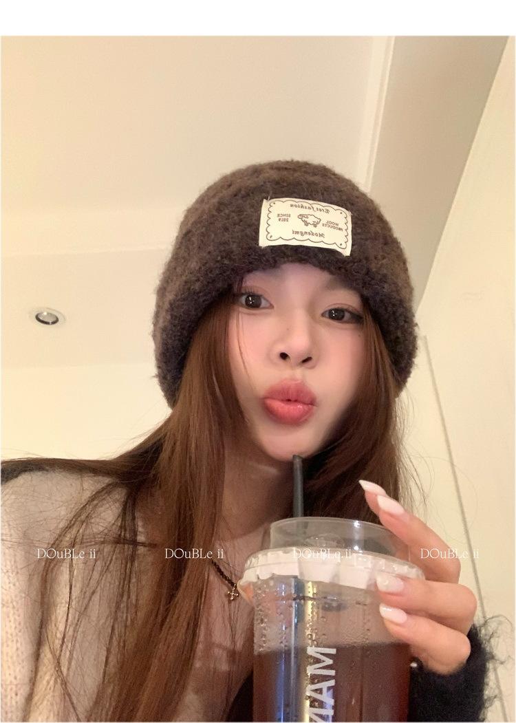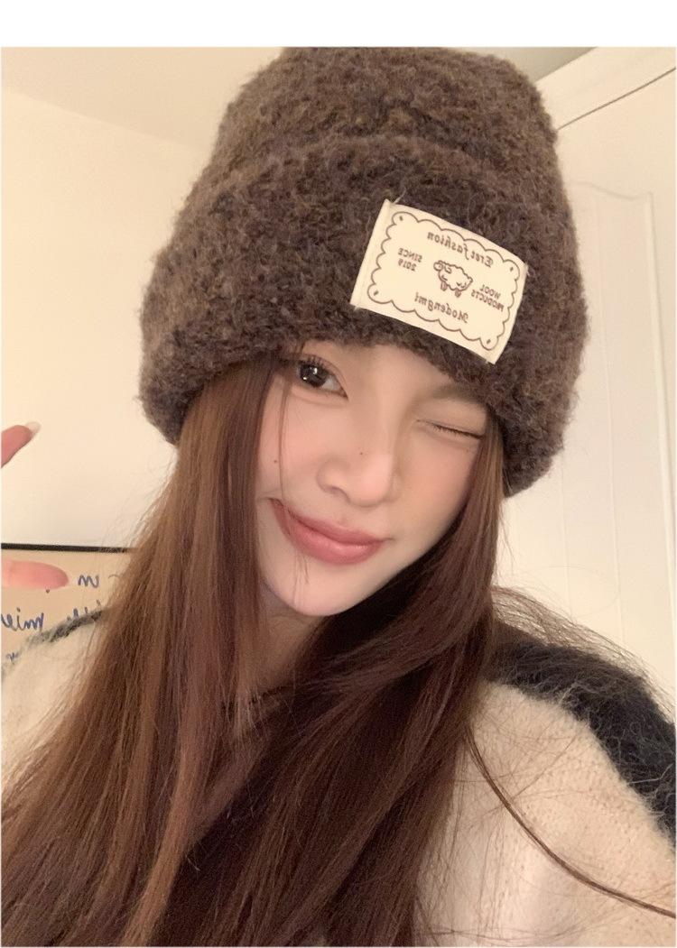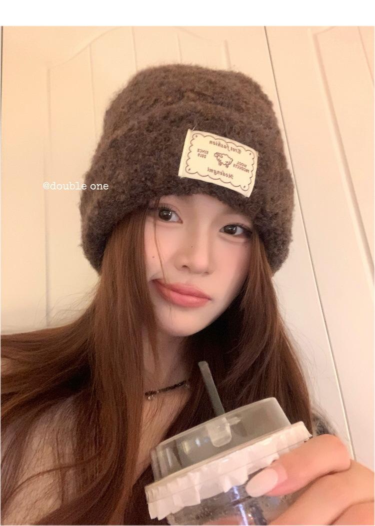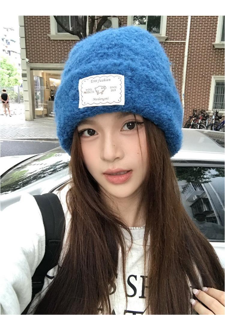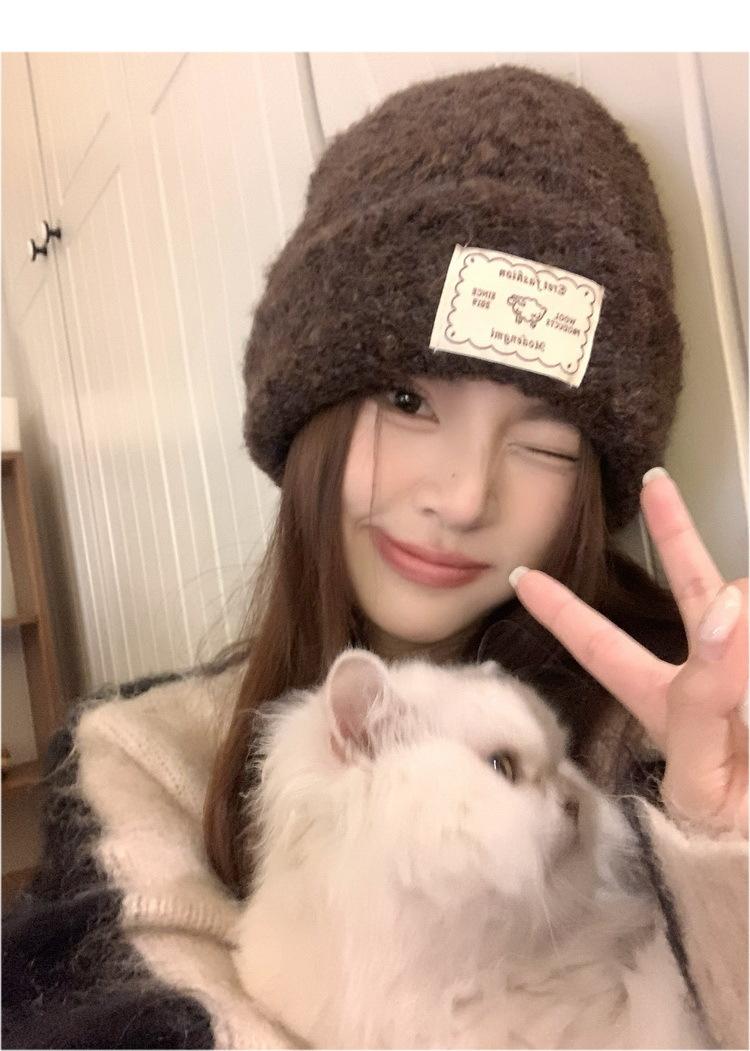 Gorro de lana de punto para mujer, estilo coreano 2024, con letras de moda, para cabeza grande, protección para las orejas pequeñas, gorro de punto frío