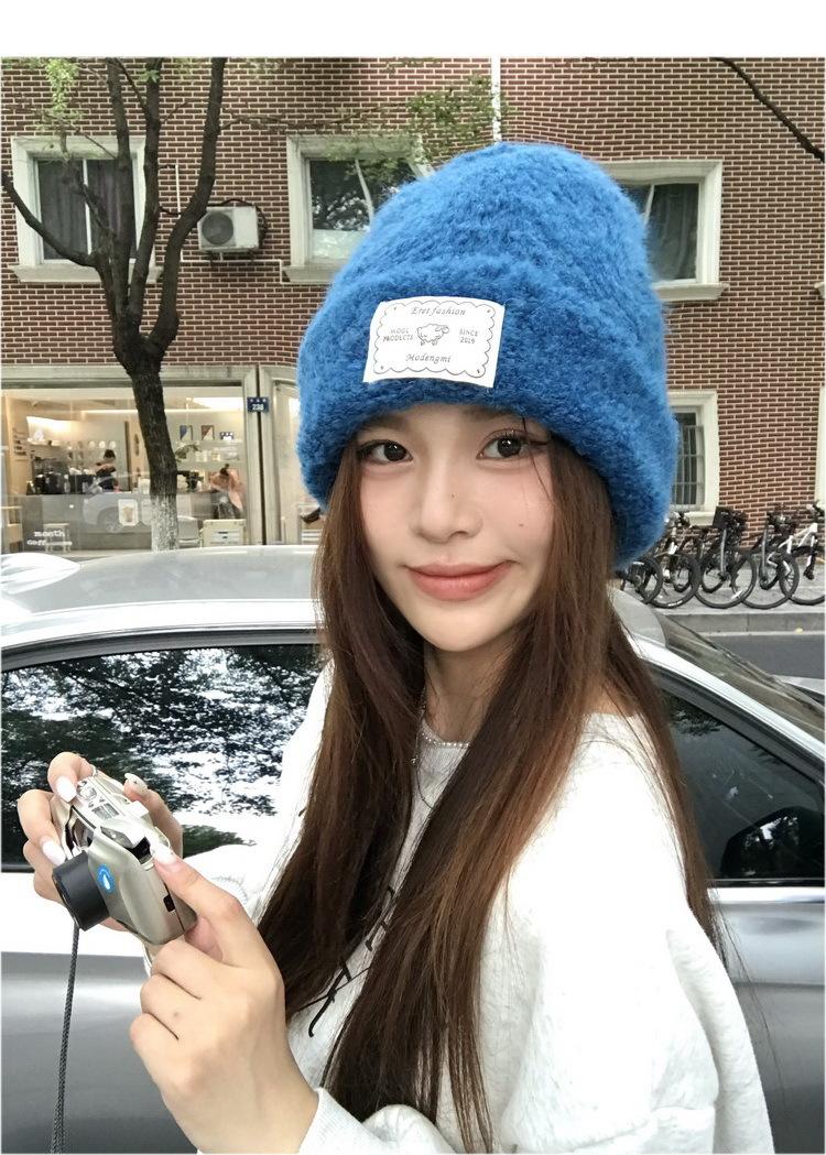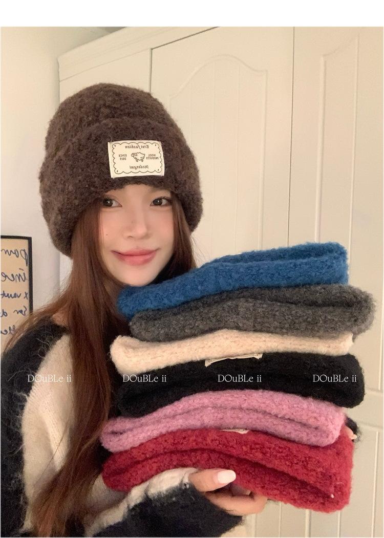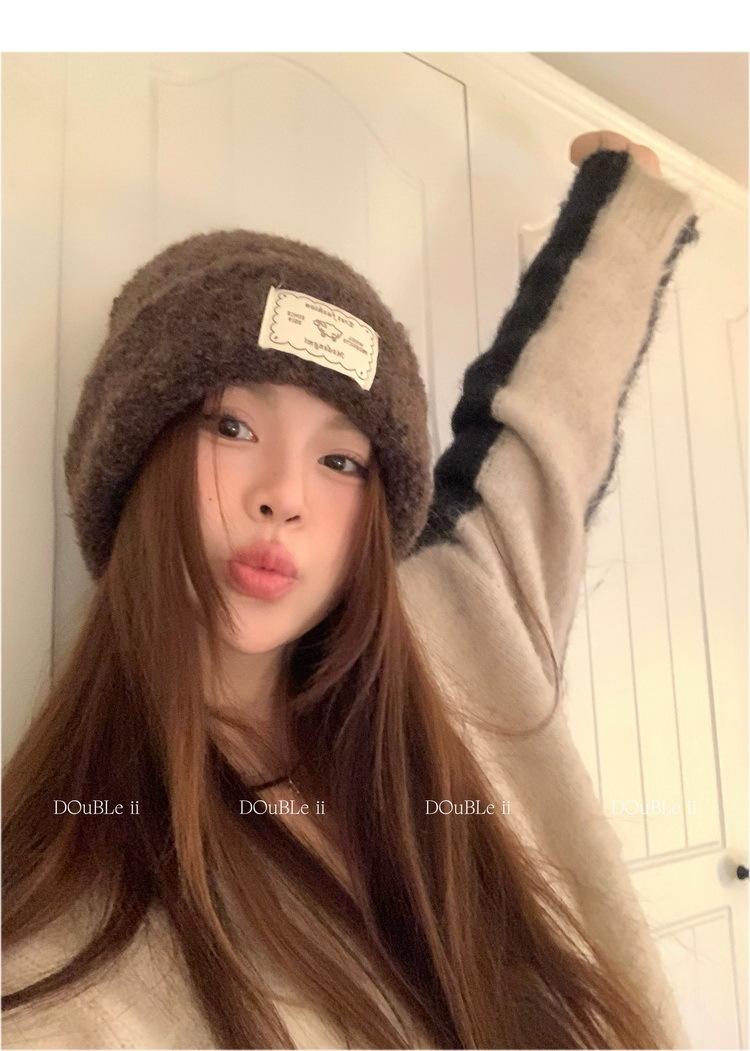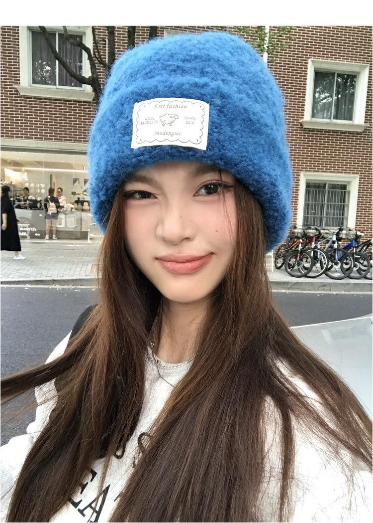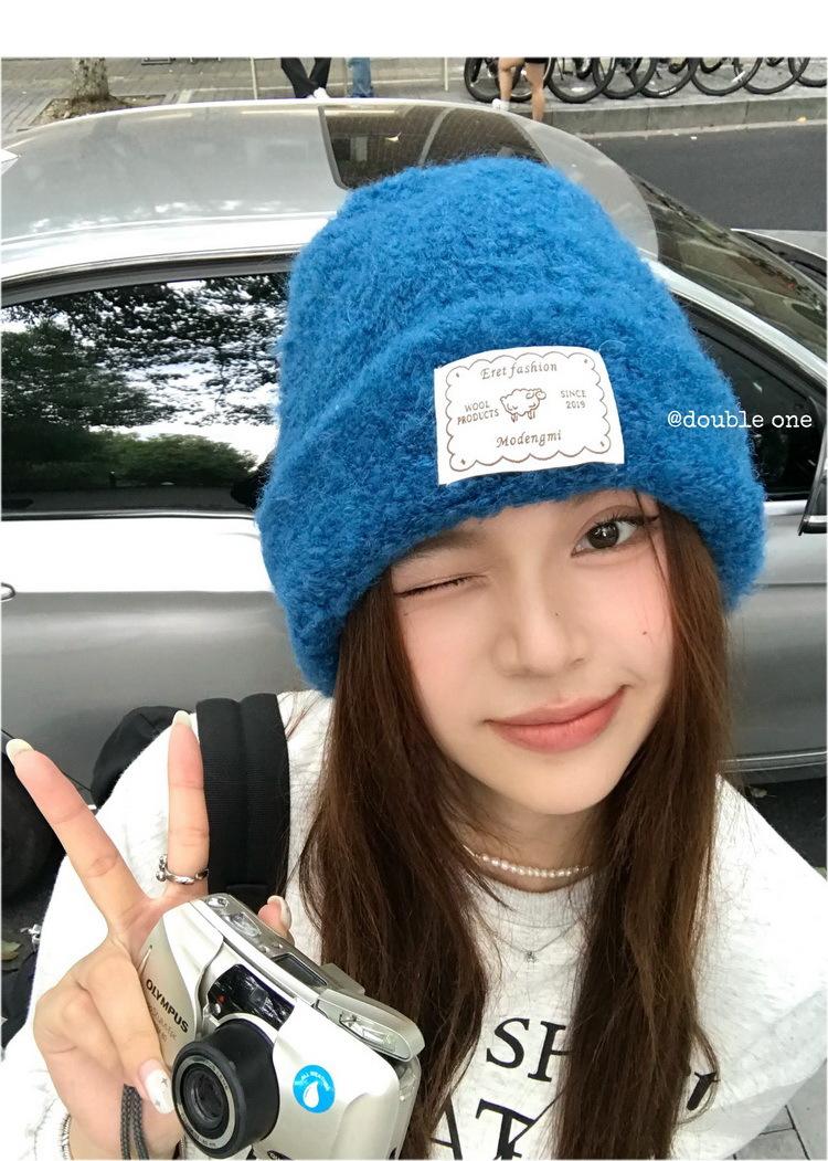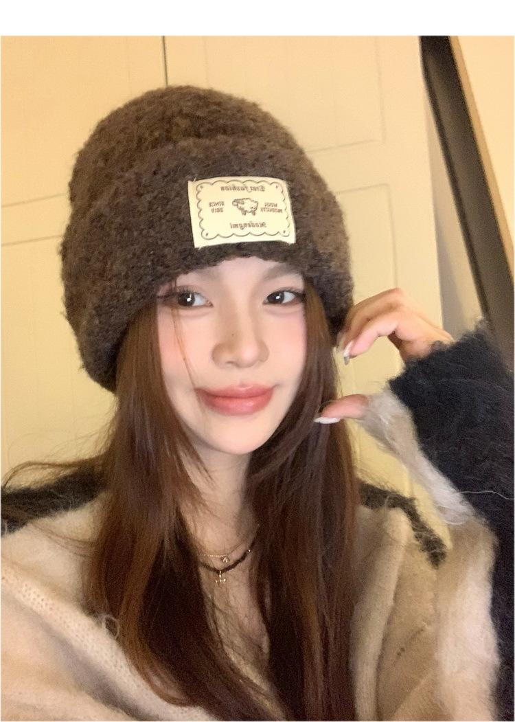 Gorro de lana de punto para mujer, estilo coreano 2024, con letras de moda, para cabeza grande, protección para las orejas pequeñas, gorro de punto frío