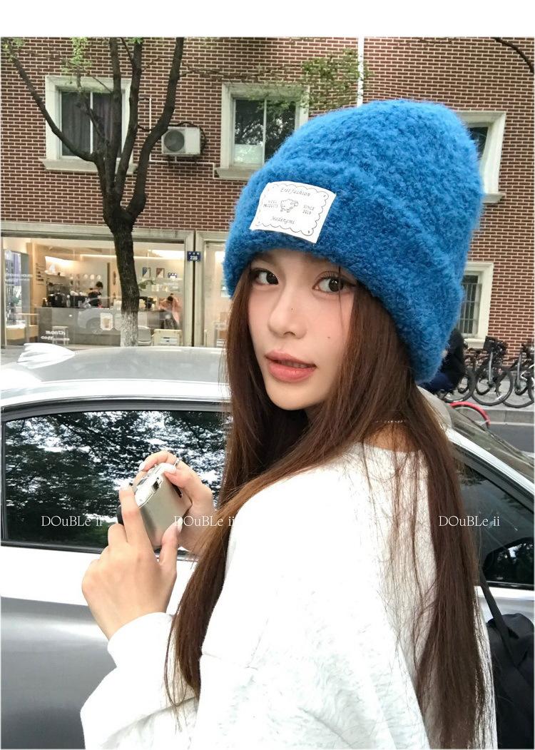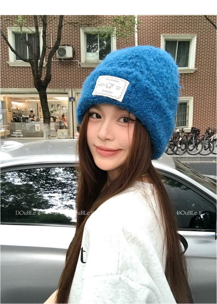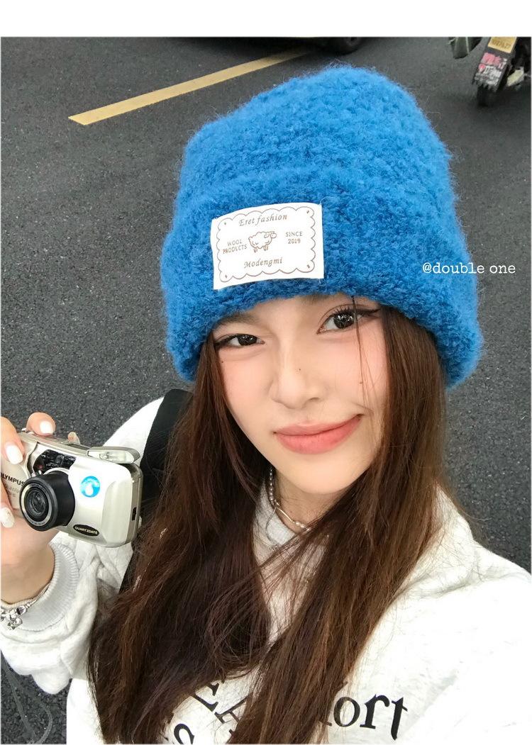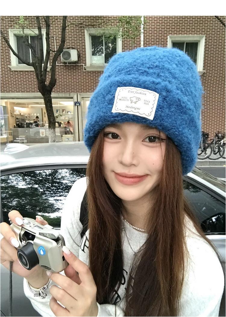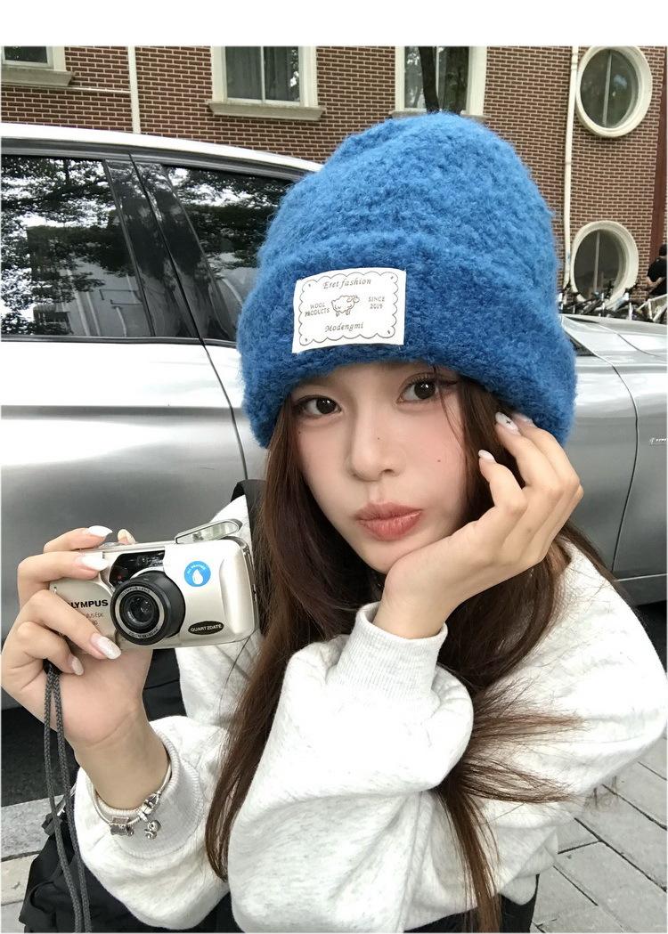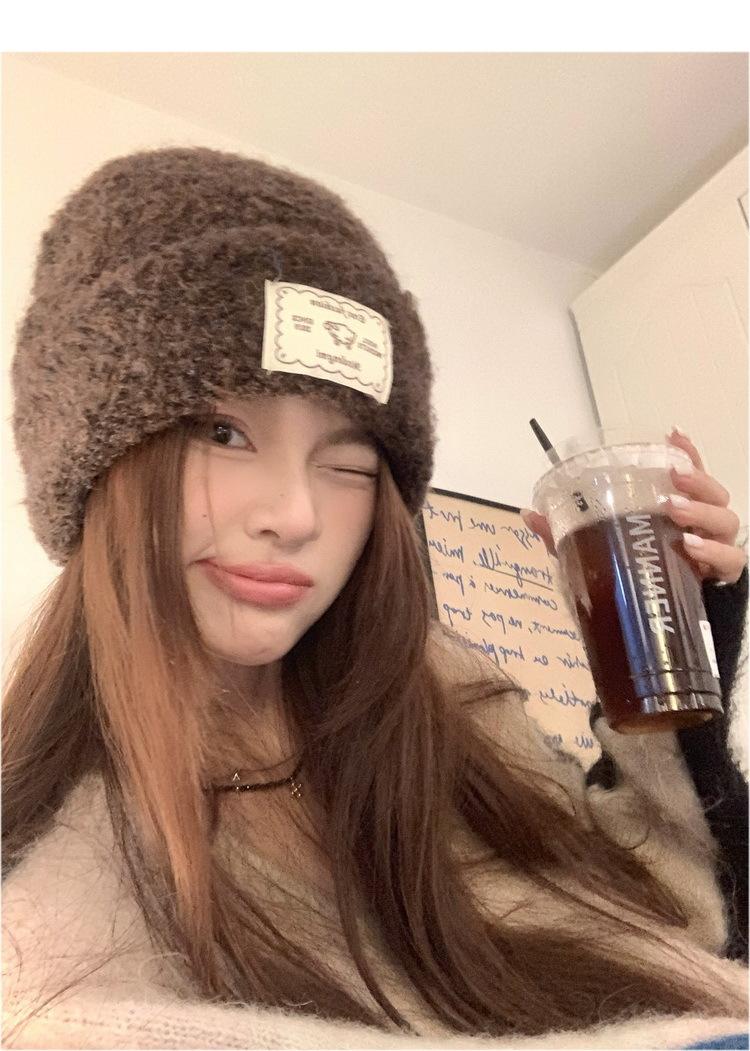Gorro de lana de punto para mujer, estilo coreano 2024, con letras de moda, para cabeza grande, protección para las orejas pequeñas, gorro de punto frío