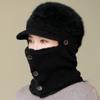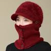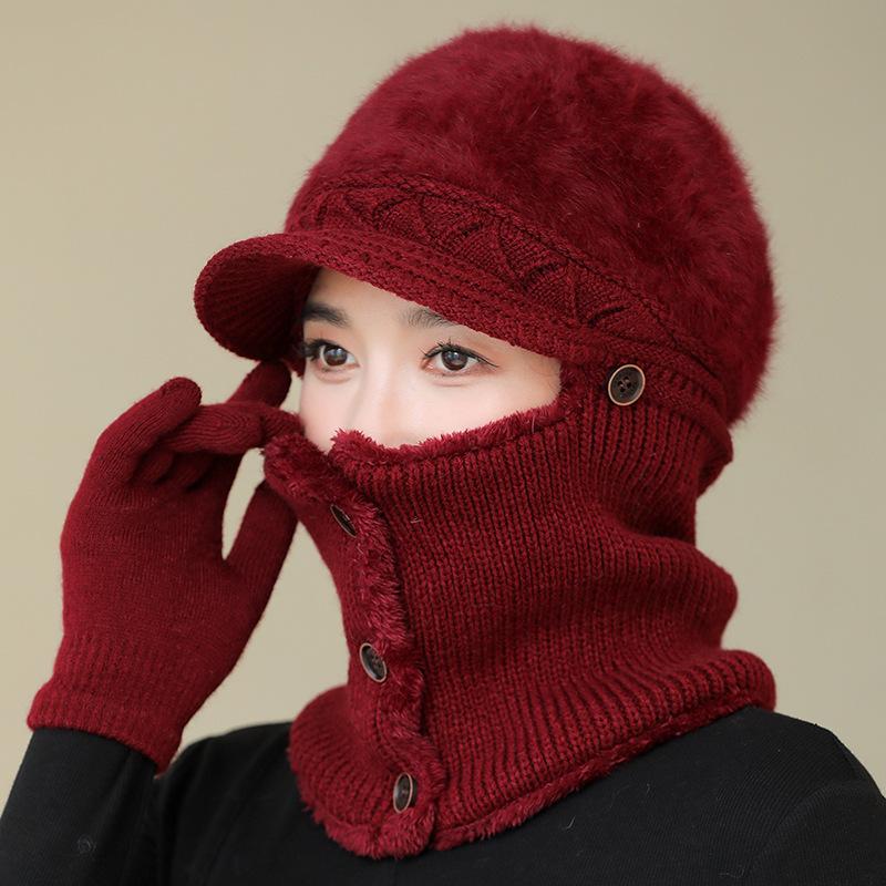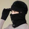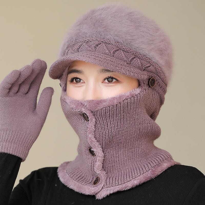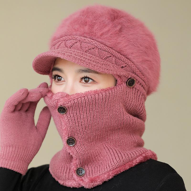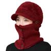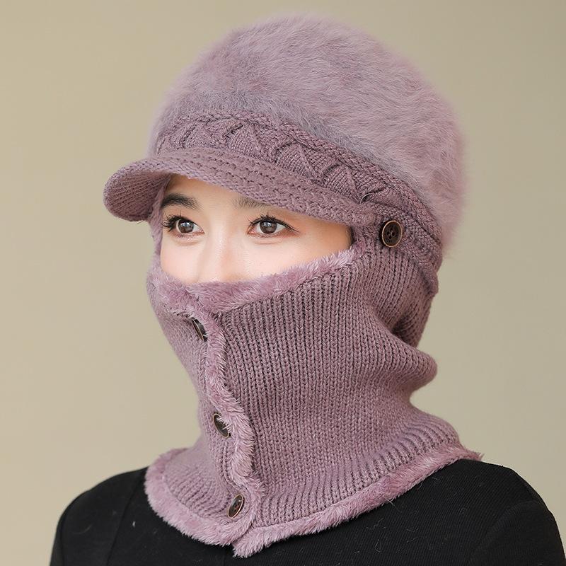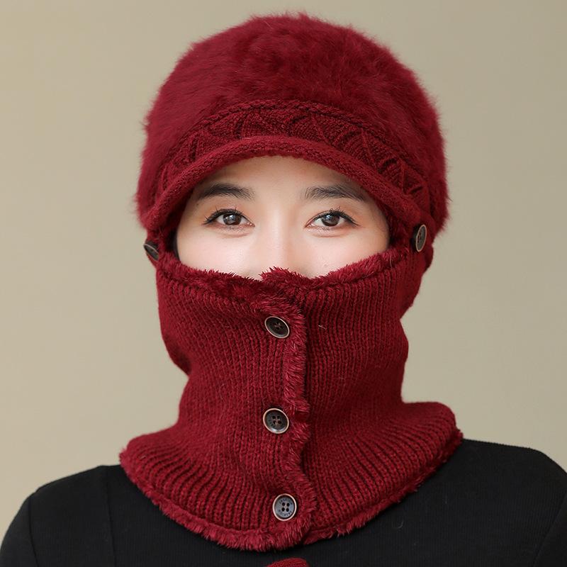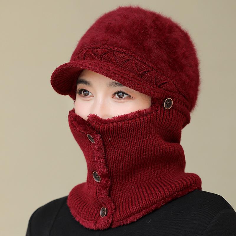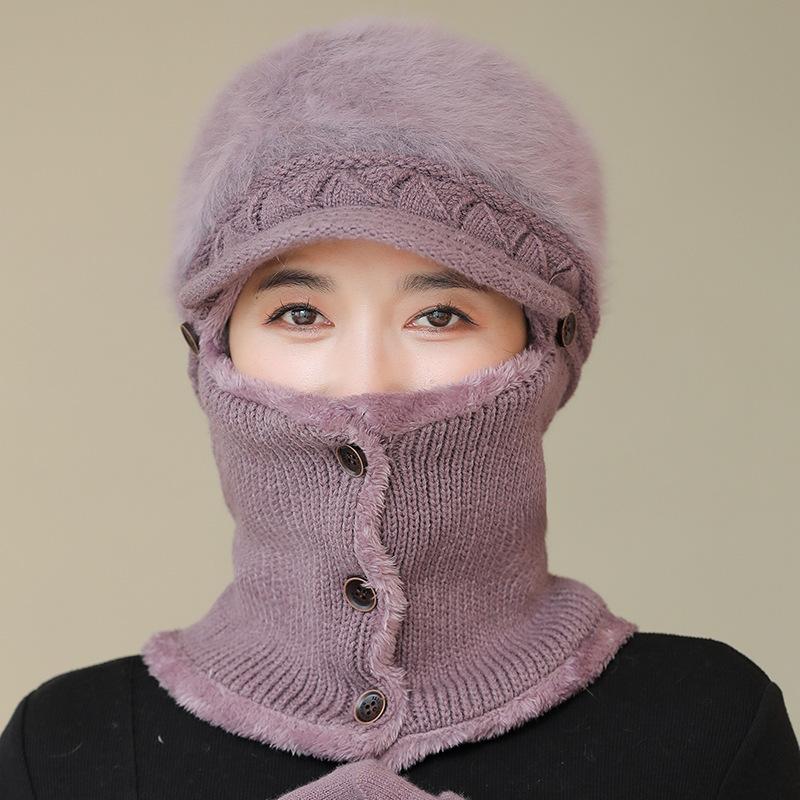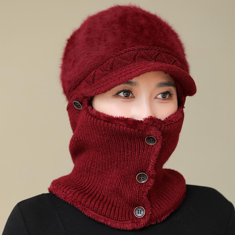 Gorro de Punto para Invierno para Montar al Aire Libre, Máscara para Orejas, Cuello, Gorro Integrado, Moda, Color Sólido, Botón, Lengua de Pato, Gorro de Lana para Mujer