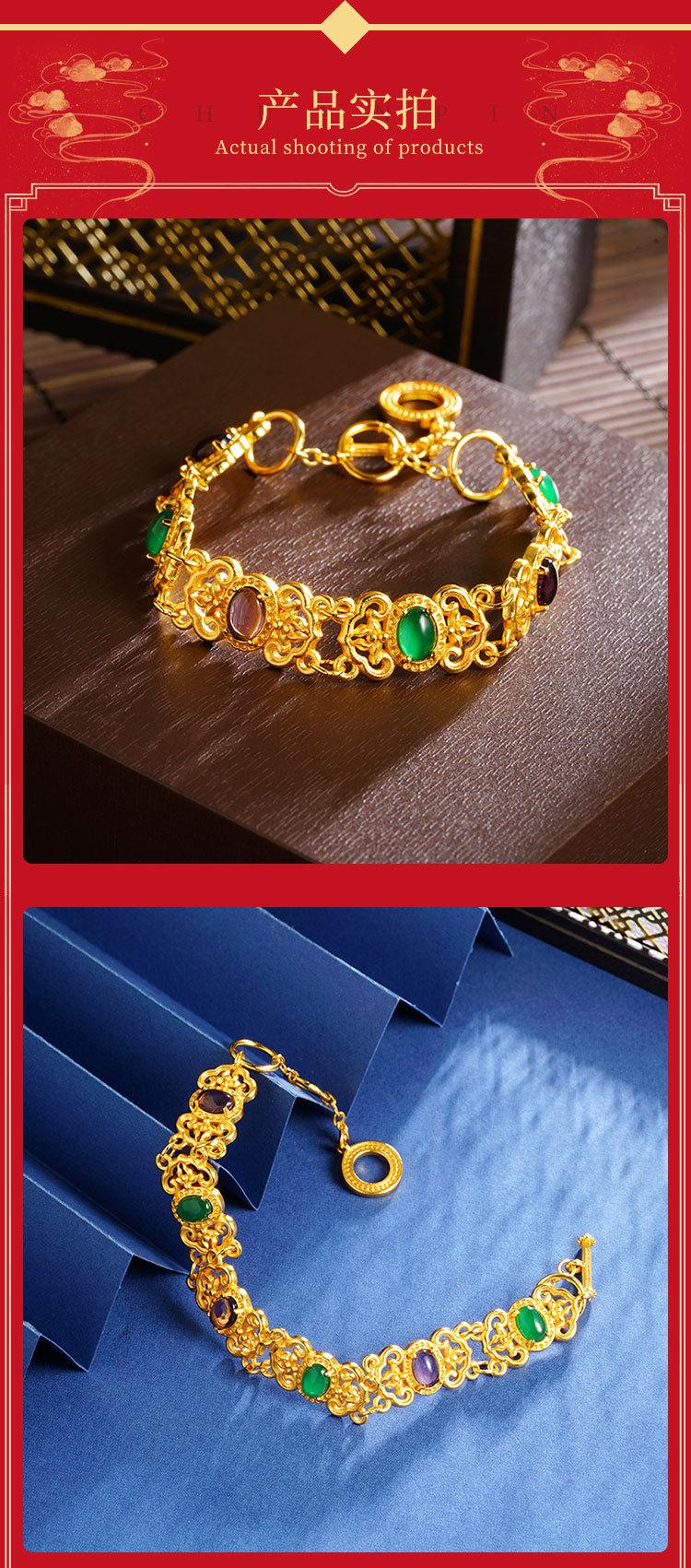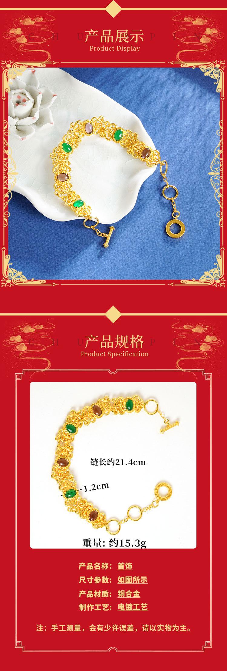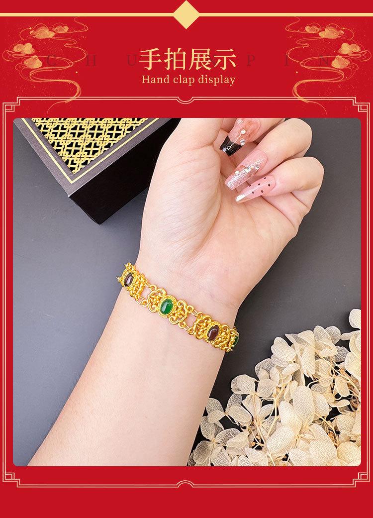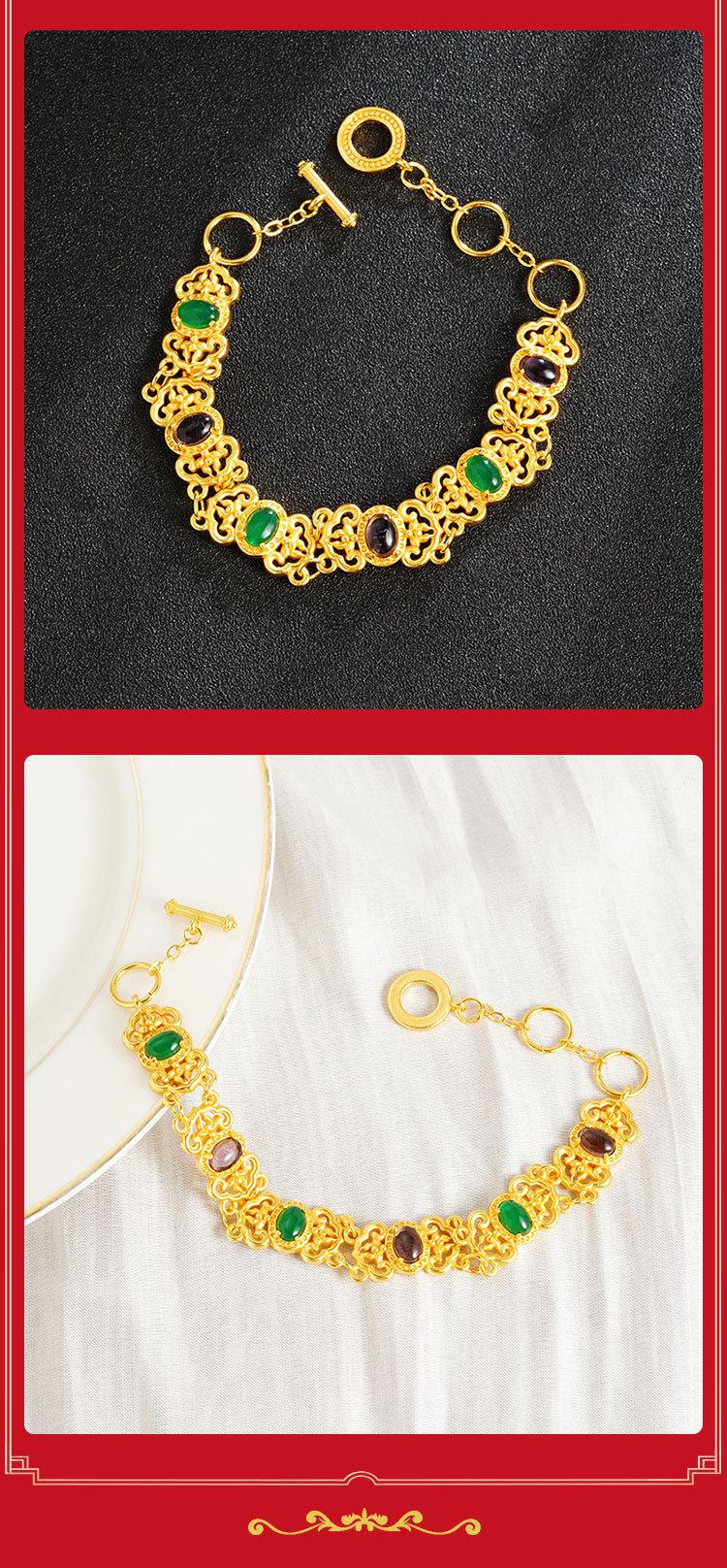 Nueva pulsera de oro y arena de estilo chino, estilo retro de corte, diseño de lujo ligero, sensación de larga duración, accesorios que no se decoloran, joyería al por mayor