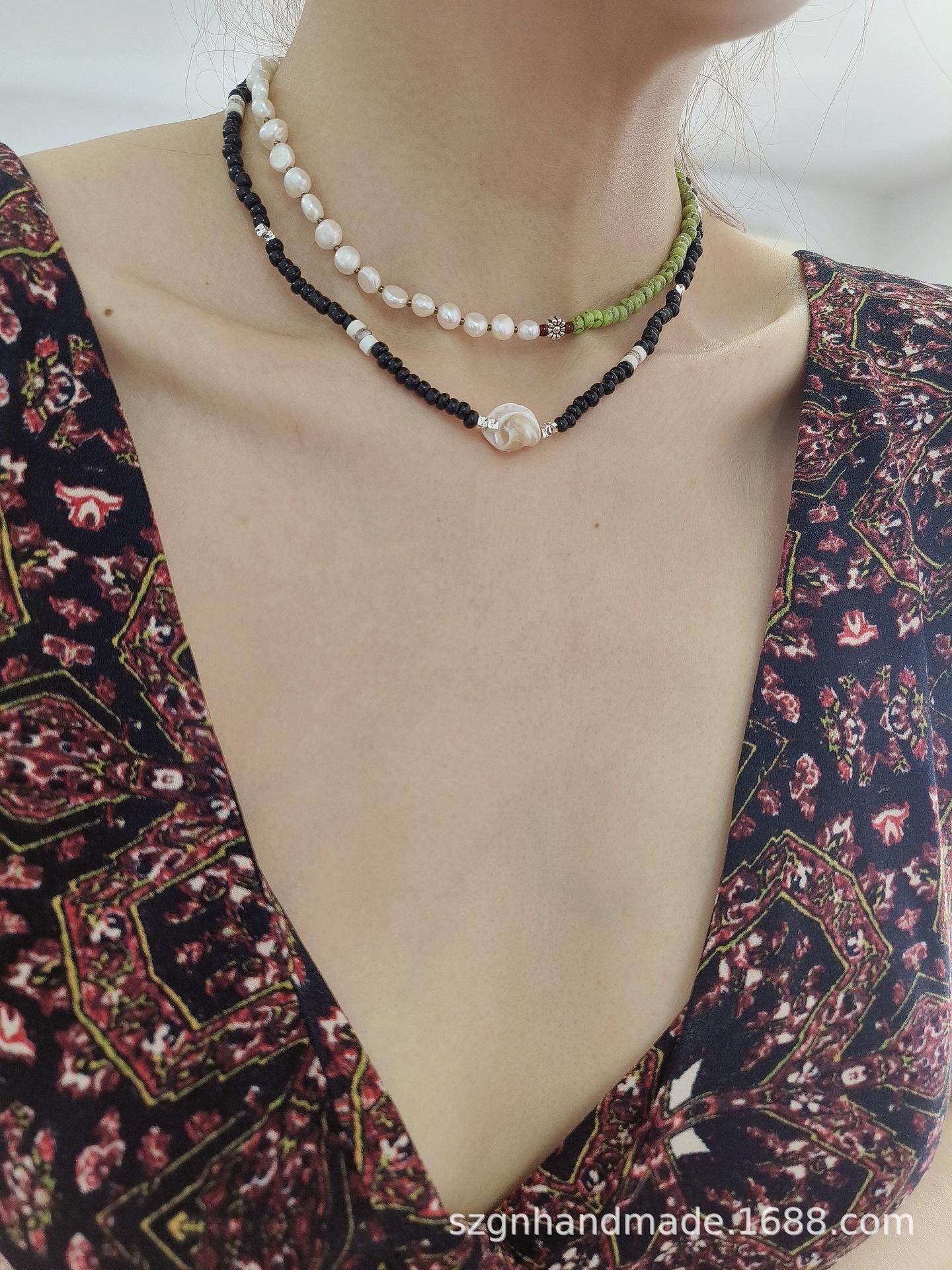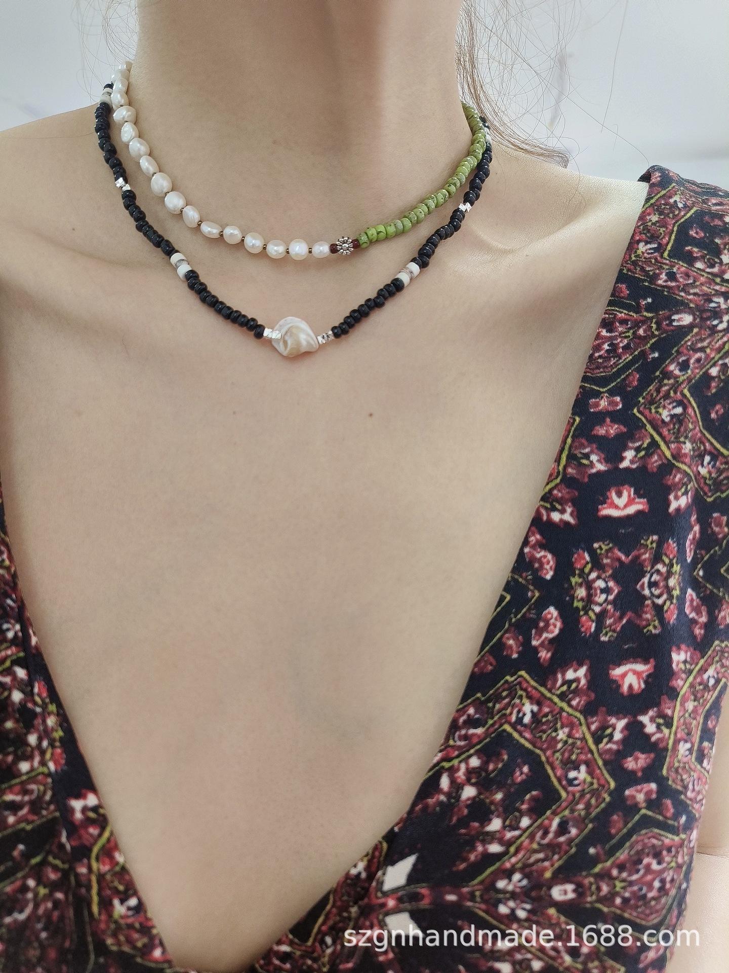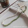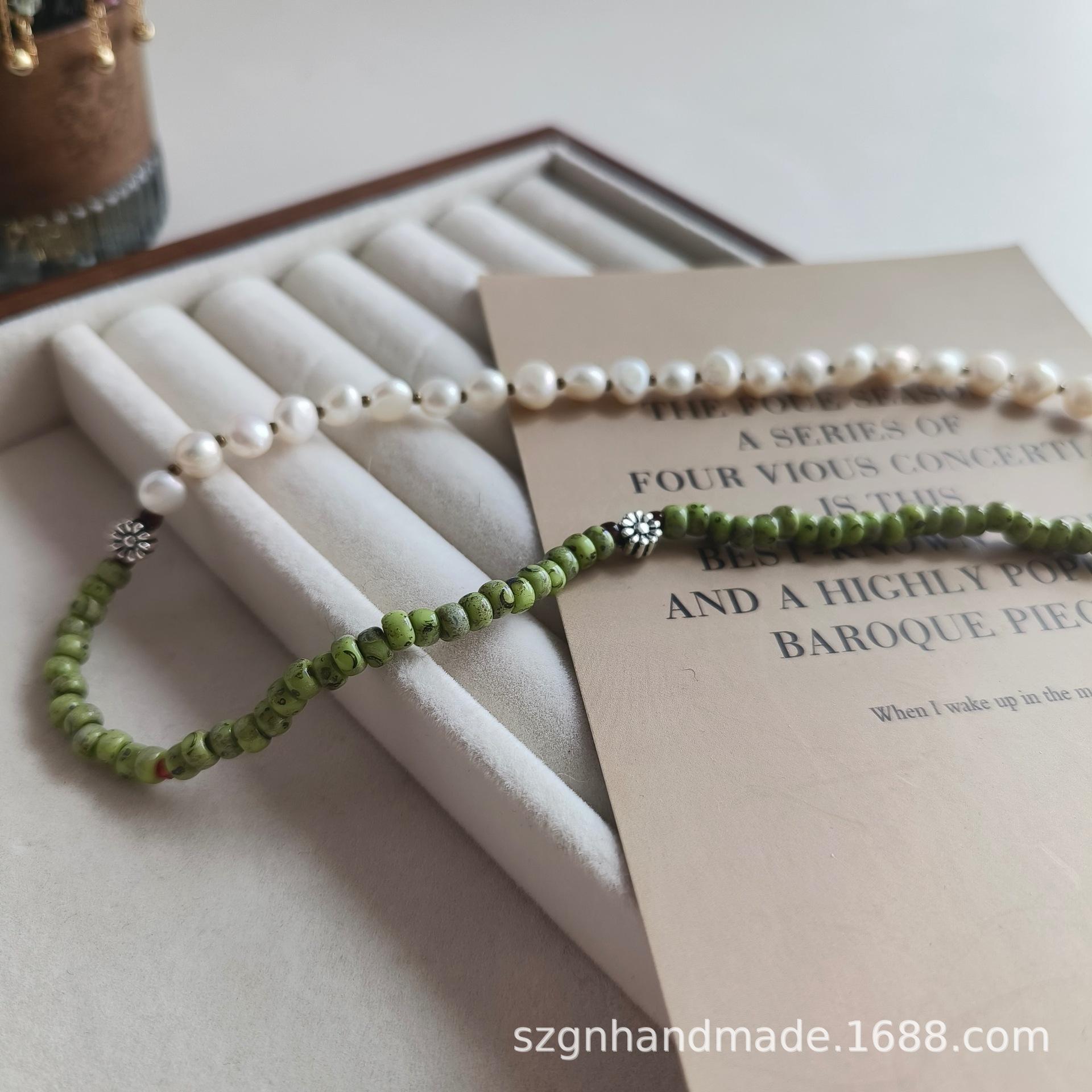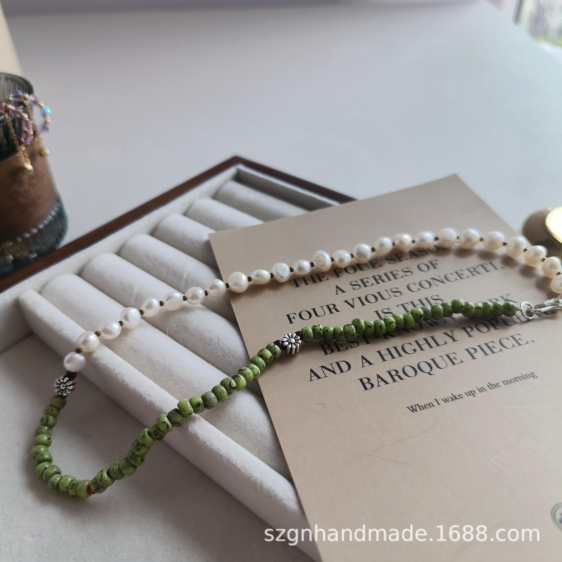 Collar de perlas barrocas naturales estilo margarita de plata 925 con cuentas antiguas verdes retro japonesas, diseño de nicho femenino estilo ins
