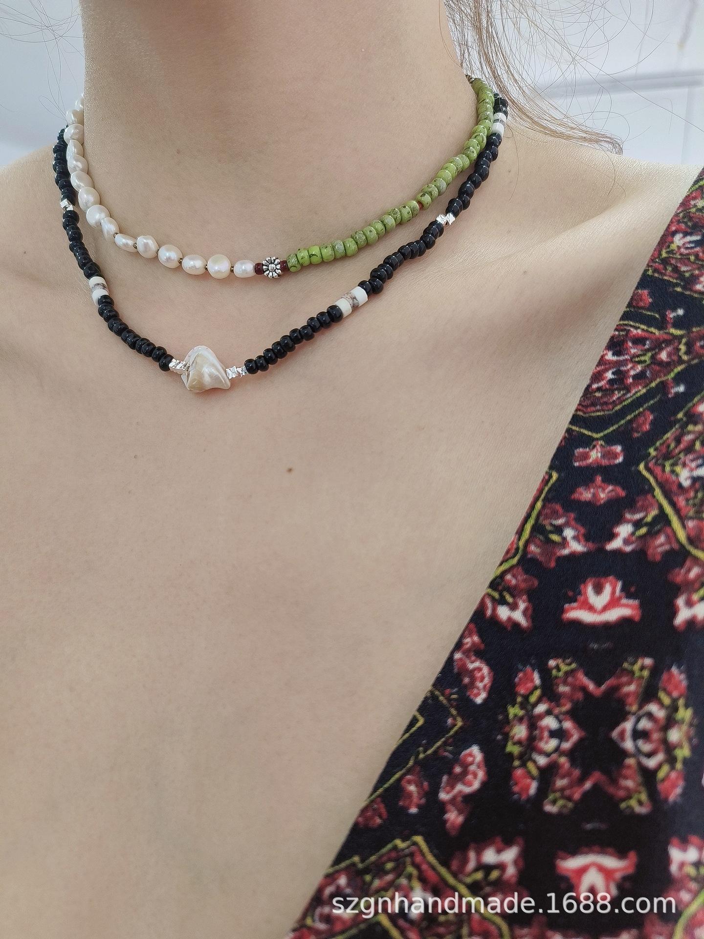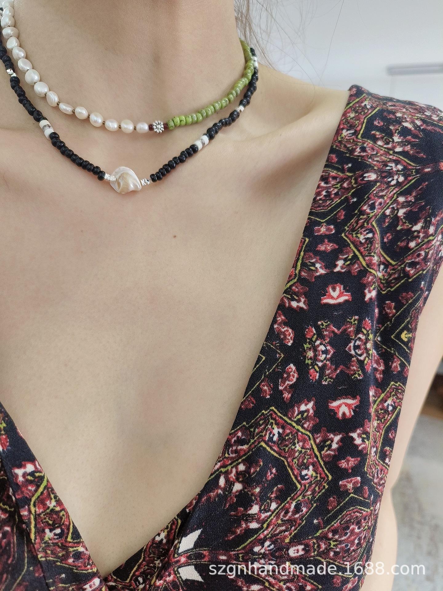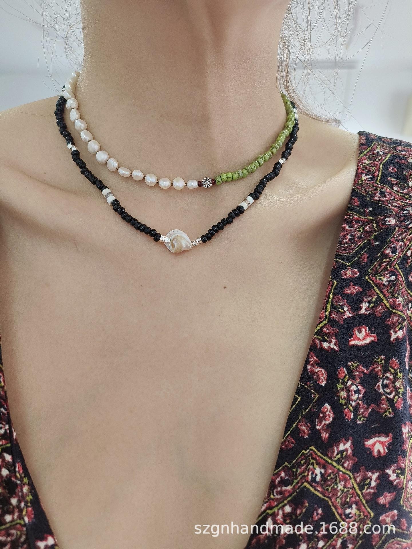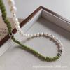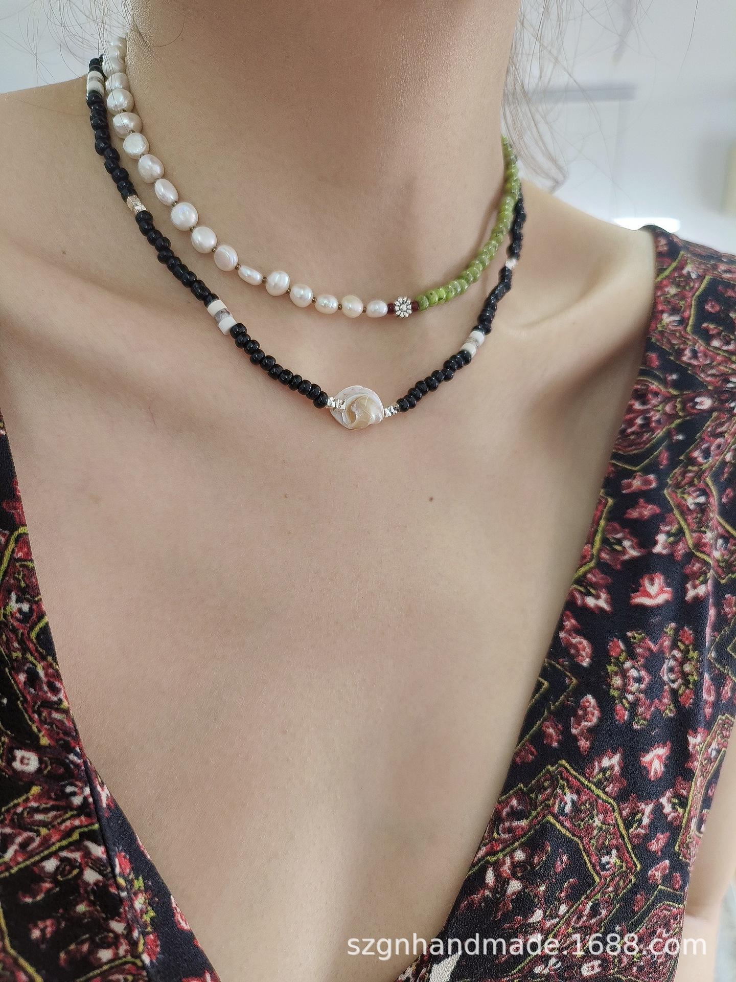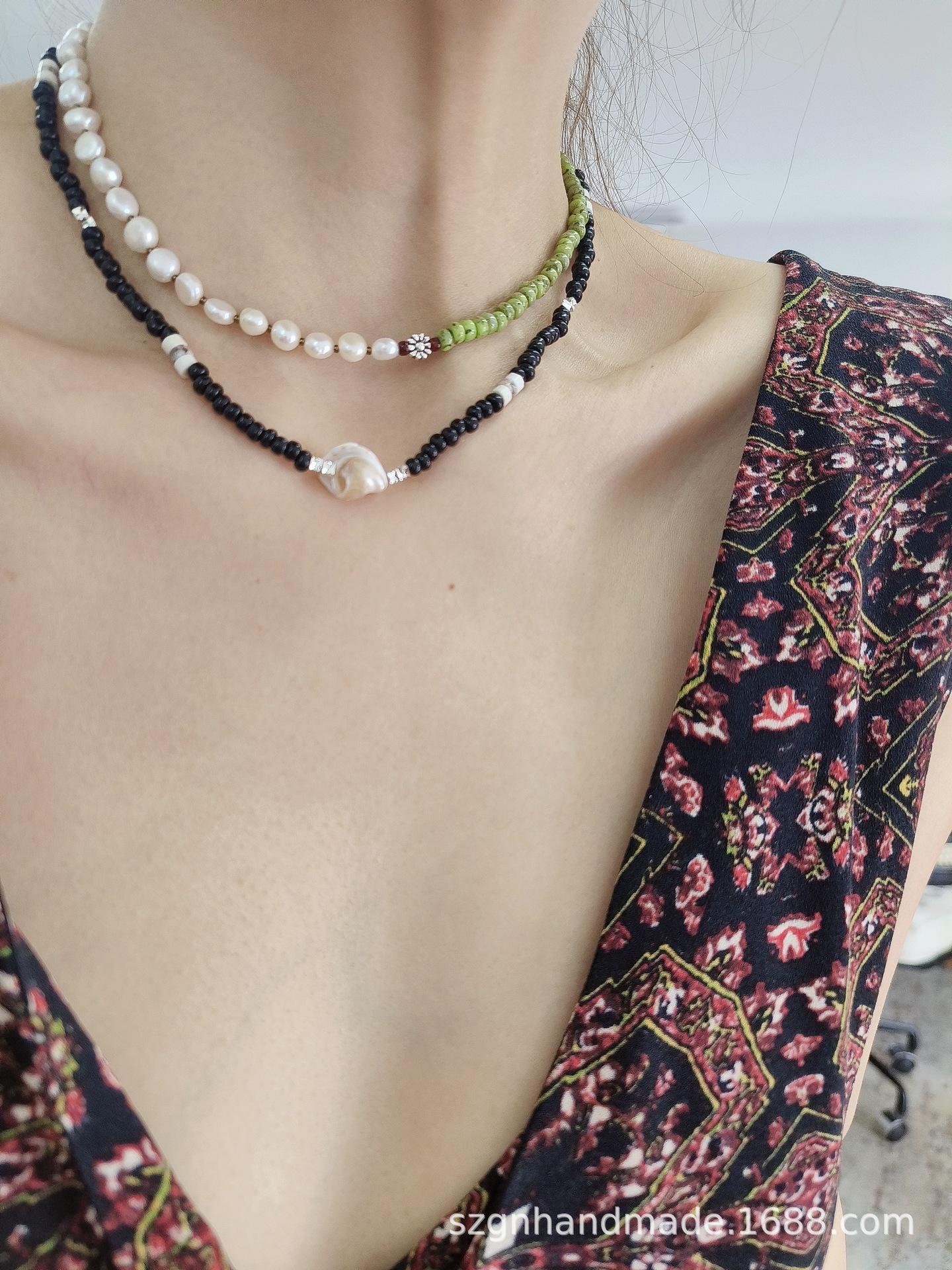 Collar de perlas barrocas naturales estilo margarita de plata 925 con cuentas antiguas verdes retro japonesas, diseño de nicho femenino estilo ins