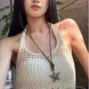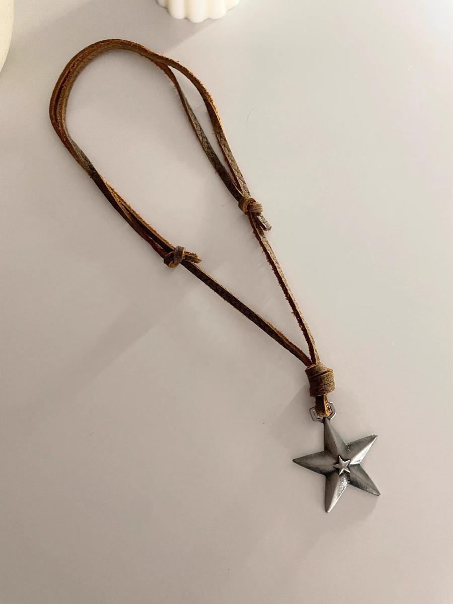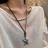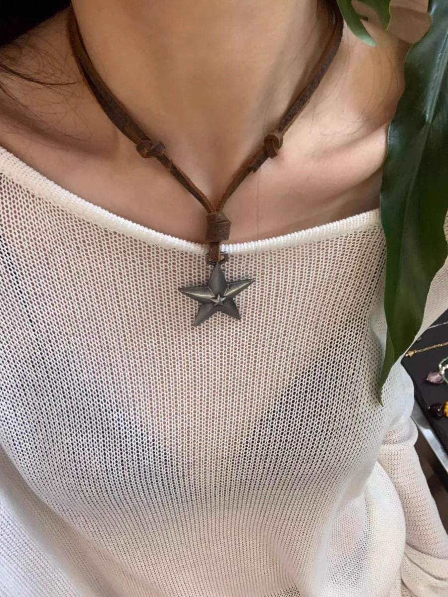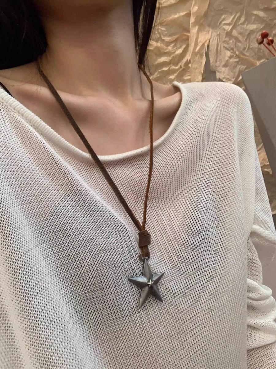 Collar Punk con Colgante de Estrella Personalizable Ajustable Aleación de Cuero Vacuno Plata Estrella de Cinco Puntas Collar Largo Cadena para Suéter