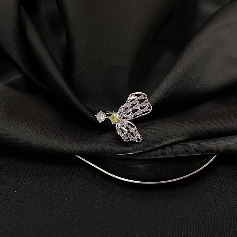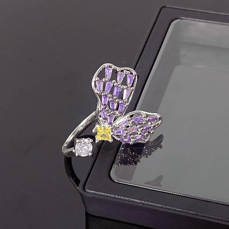 Anillo de Mariposa Púrpura de Lujo Ligero de Alta Gama con Circonita Micro-incrustada, Nicho Elegante, Moda Versátil, Anillo Abierto para el Dedo, Blanco