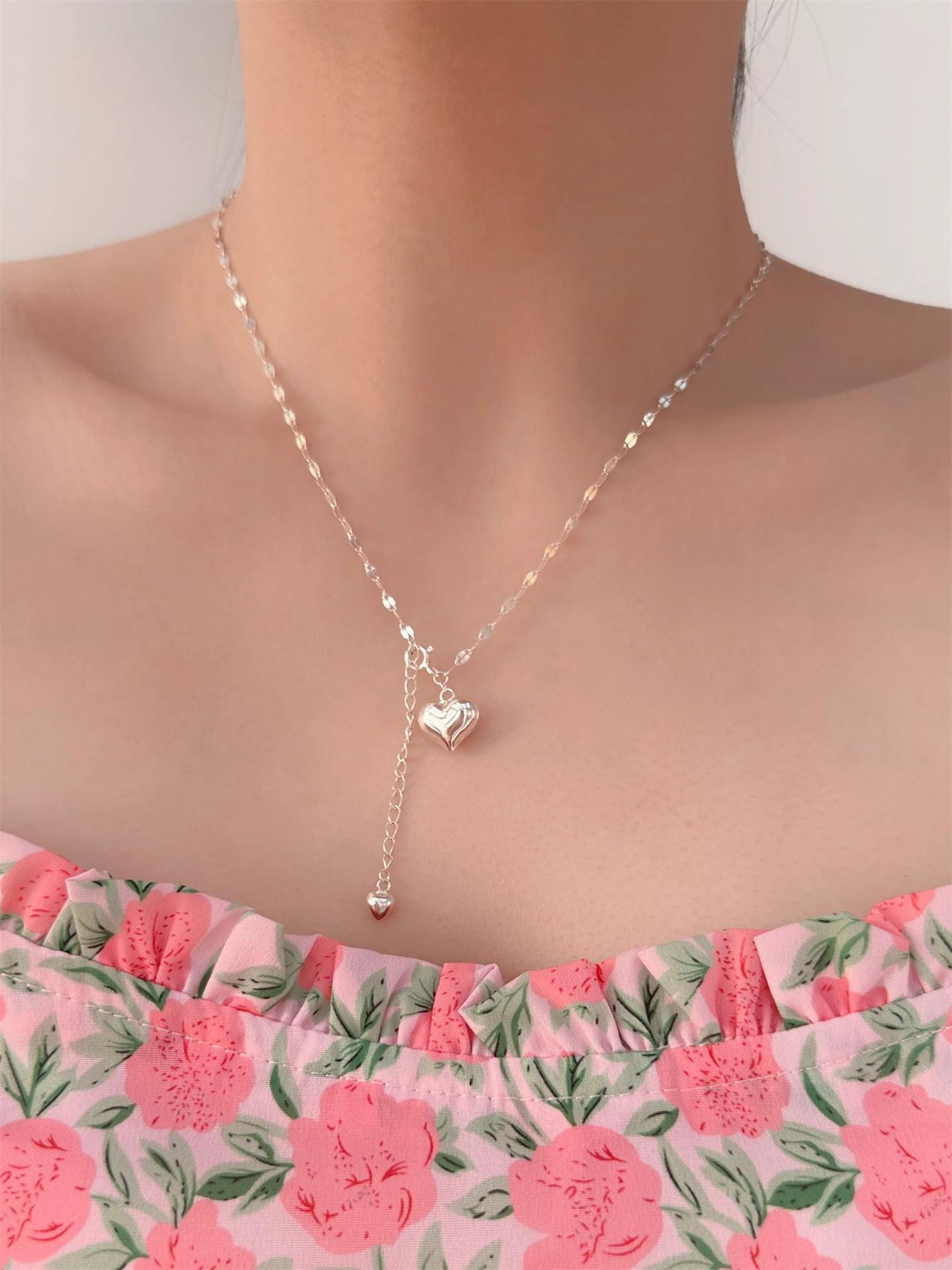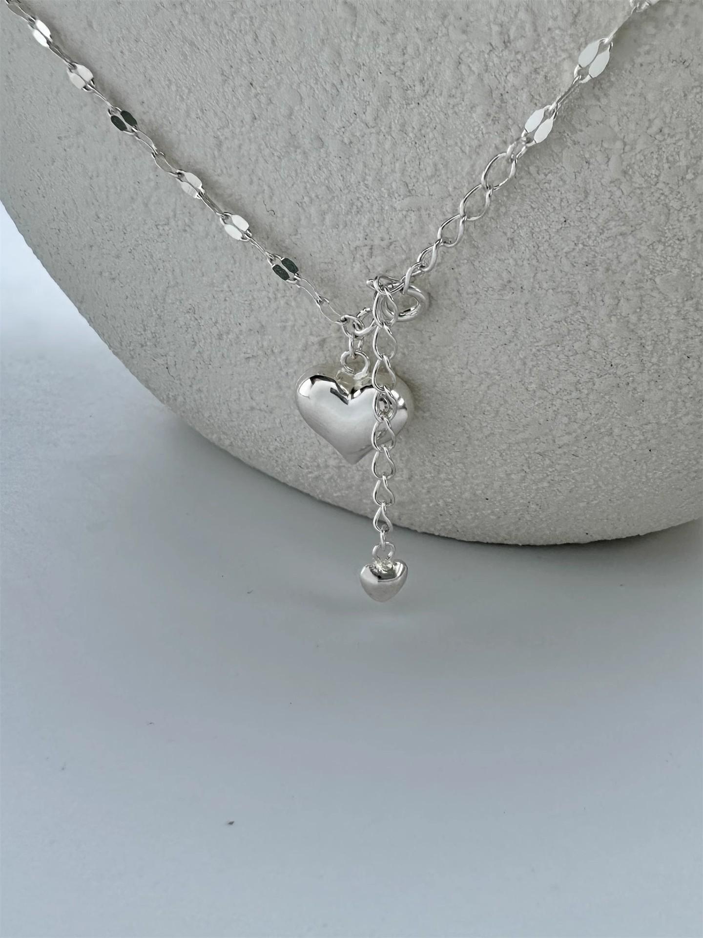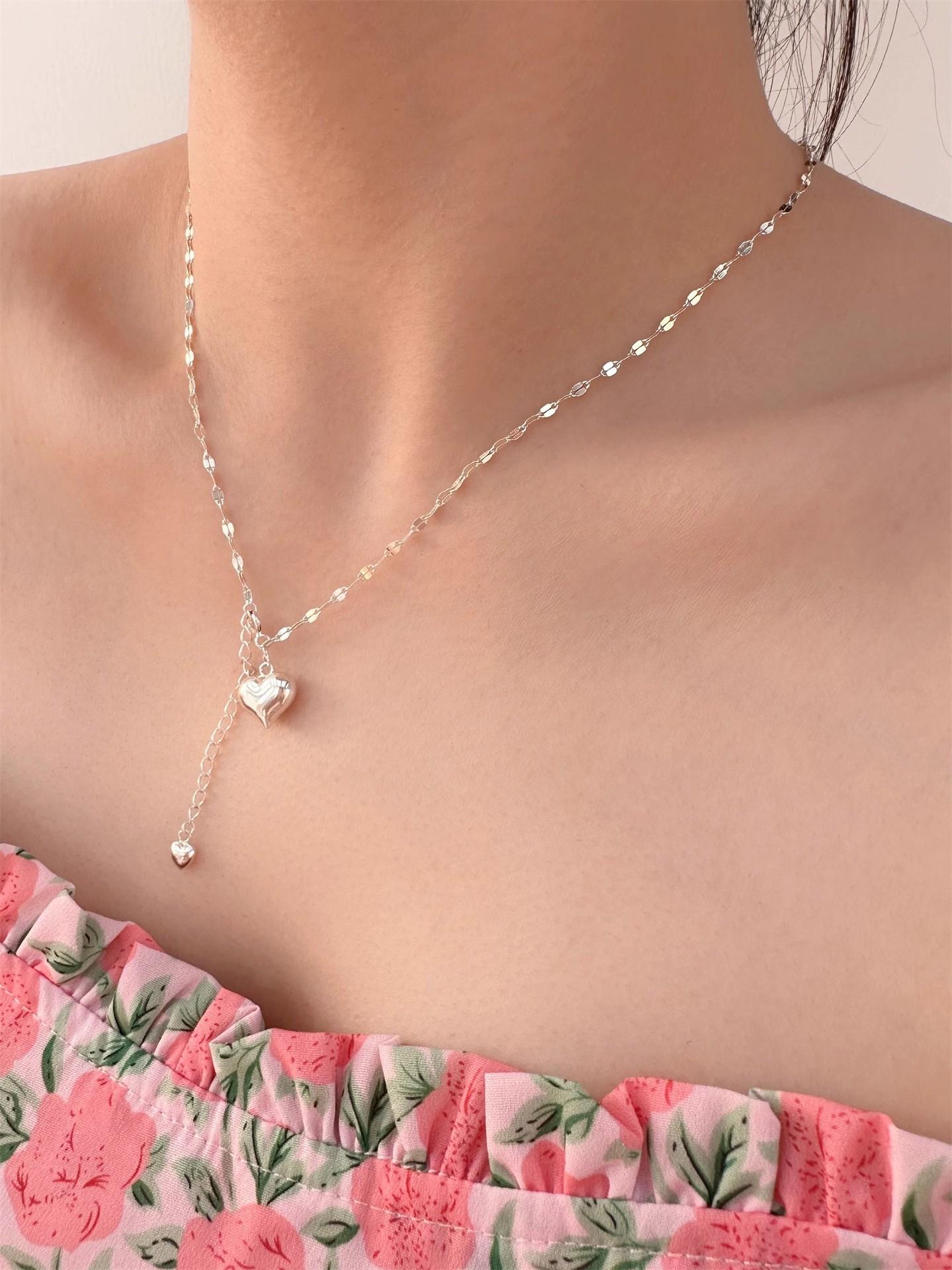 Nuevo collar doble pequeño de amor para mujer, ligero, de lujo, sencillo, con eslabones de agua de celebridades de Internet, cadena de clavícula de la suerte, tendencia de celebridades de Internet al por mayor