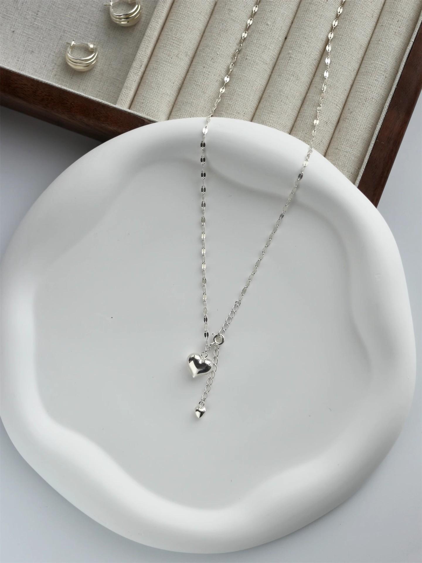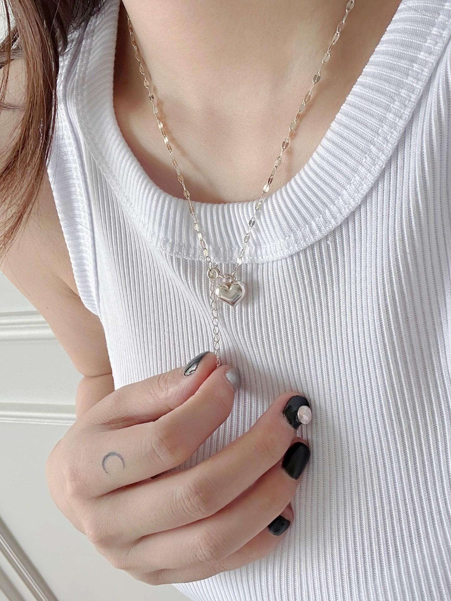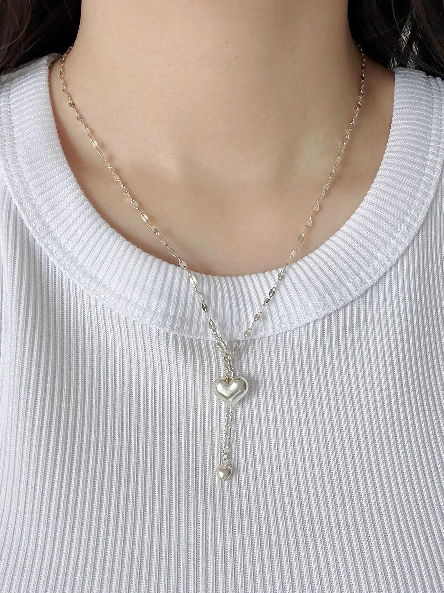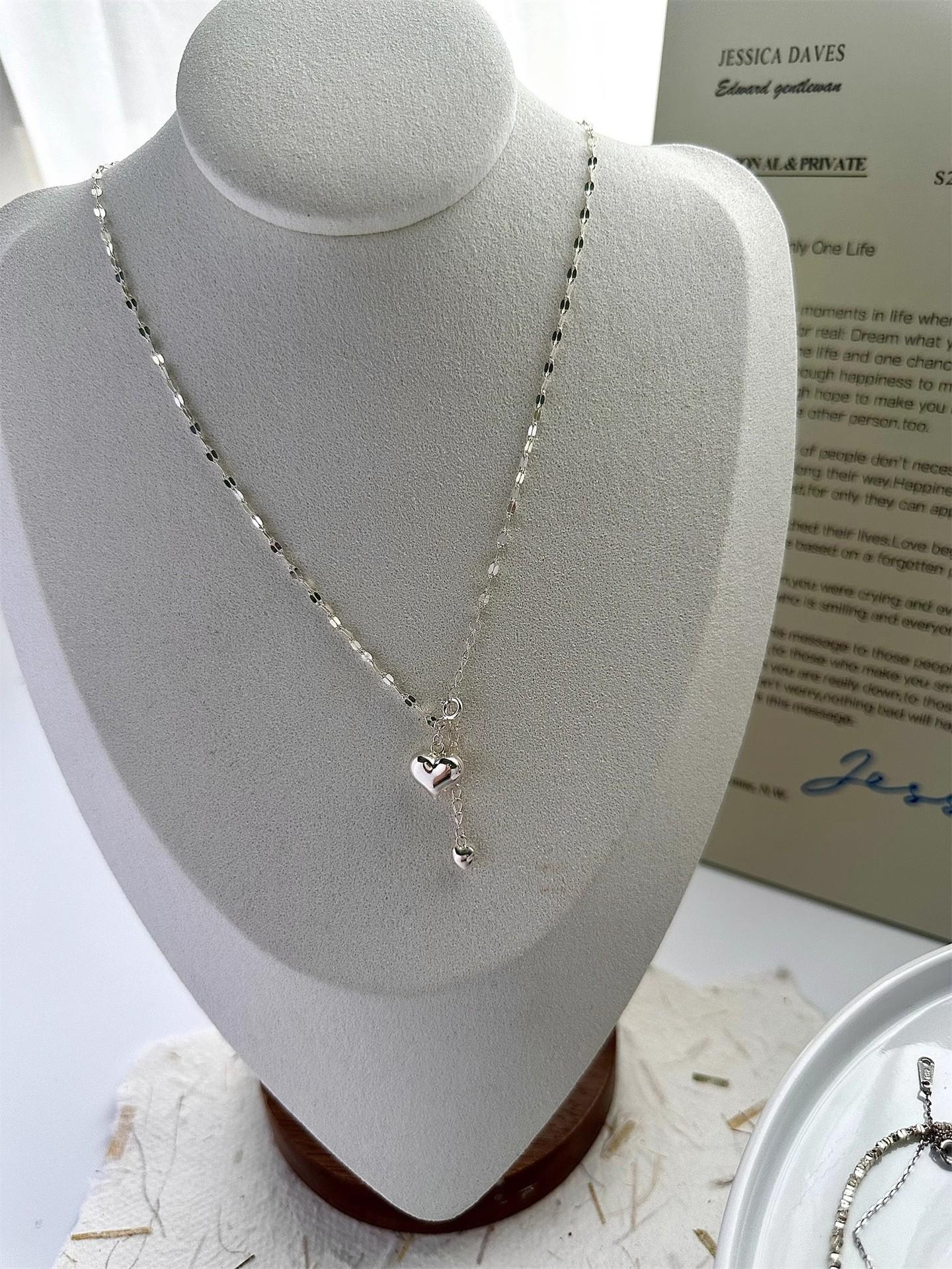 Nuevo collar doble pequeño de amor para mujer, ligero, de lujo, sencillo, con eslabones de agua de celebridades de Internet, cadena de clavícula de la suerte, tendencia de celebridades de Internet al por mayor