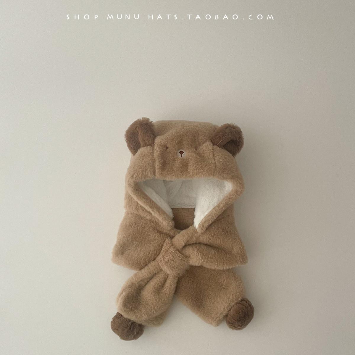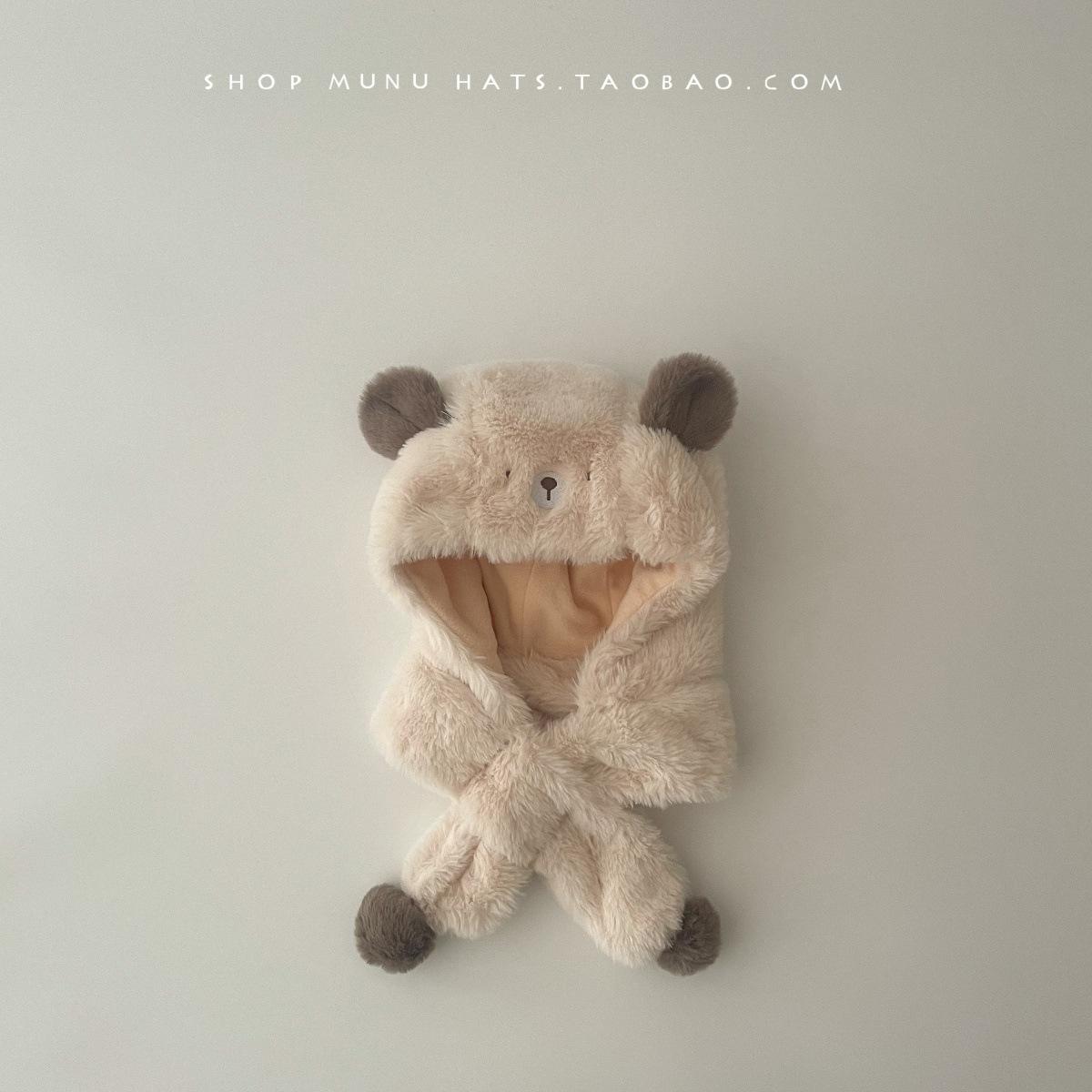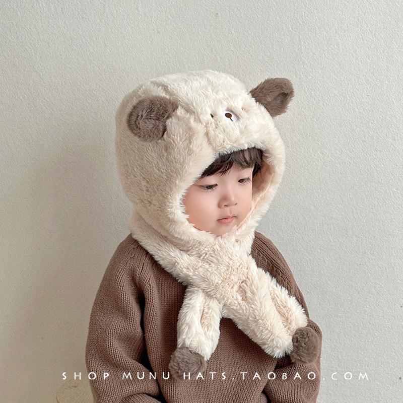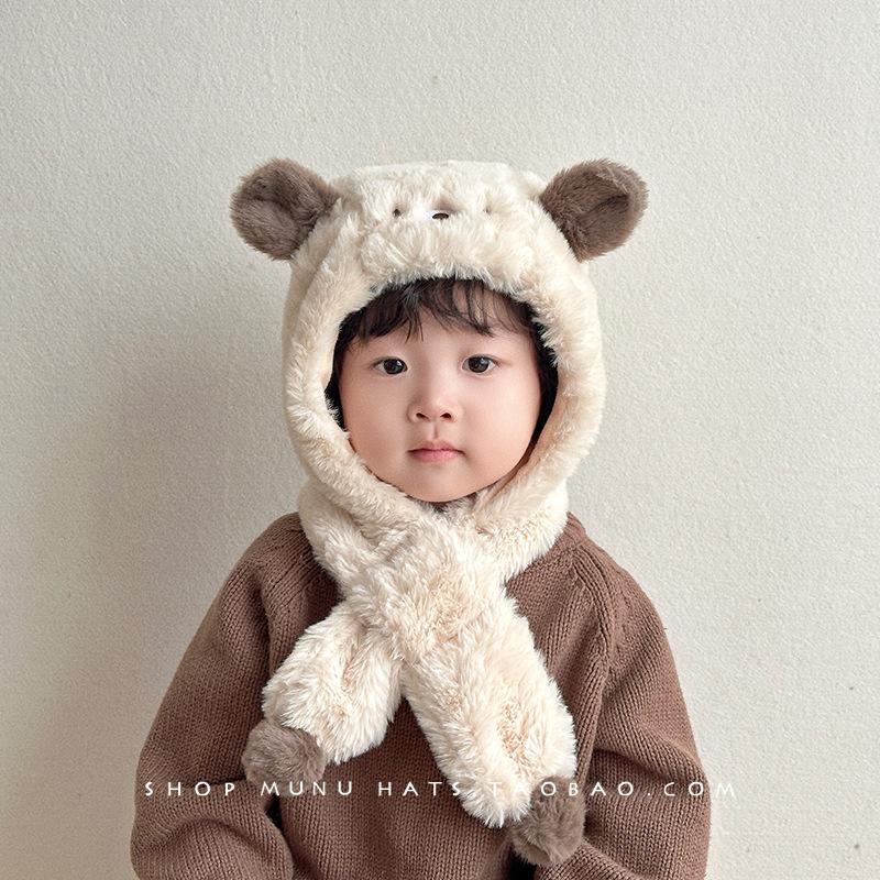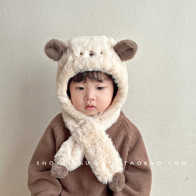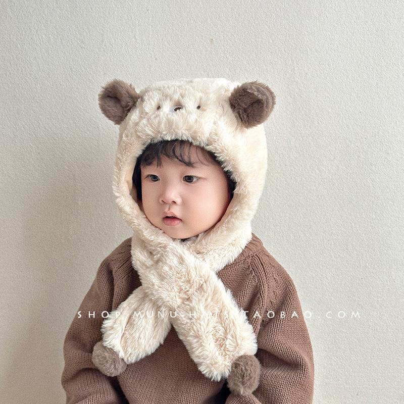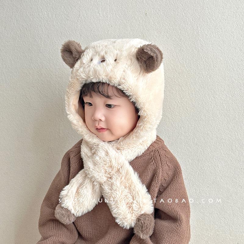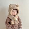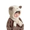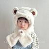 Gorro para niños, bufanda, dos piezas, gorro de felpa de invierno con orejas, forro polar para bebé, grueso, cálido, resistente al viento, coreano