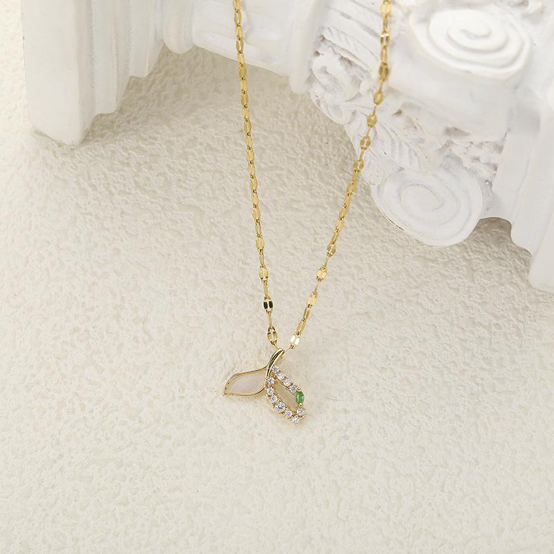 Collar de cola de pez de cadena nueva transfronteriza entre Europa y Estados Unidos, moda femenina, diseño de nicho de alto sentido, collar de circón esmeralda al por mayor