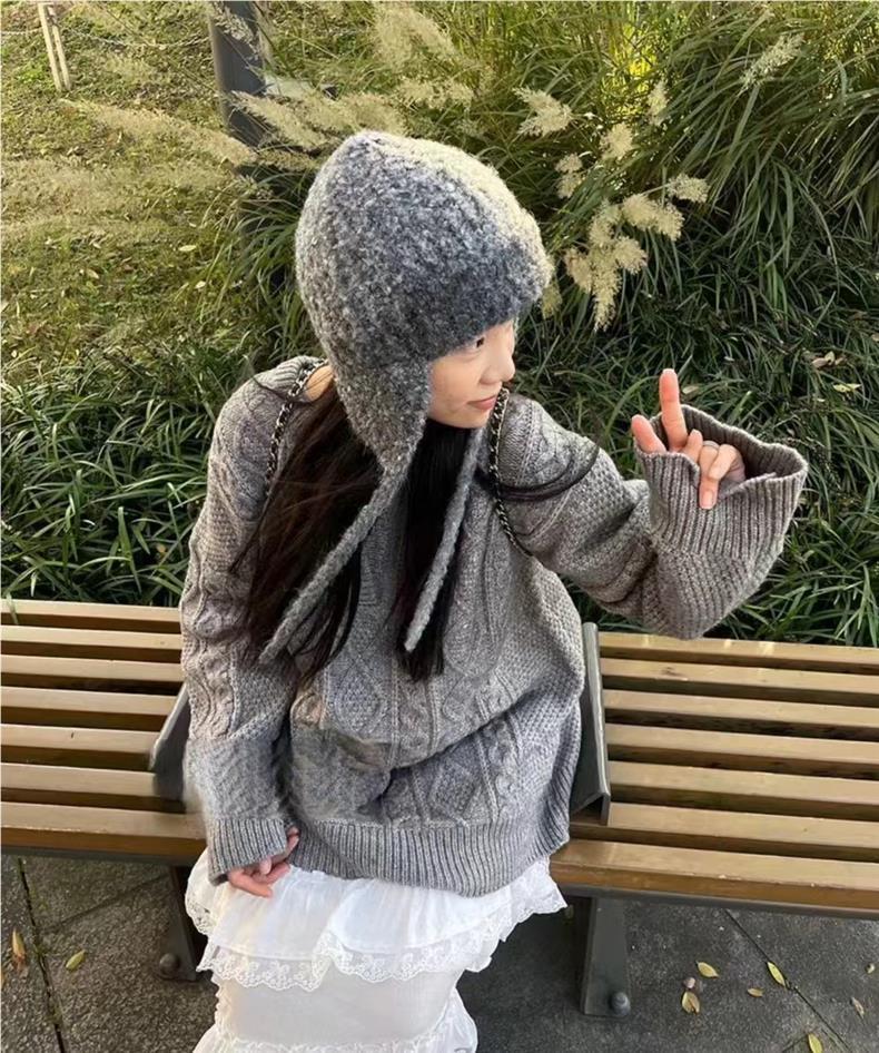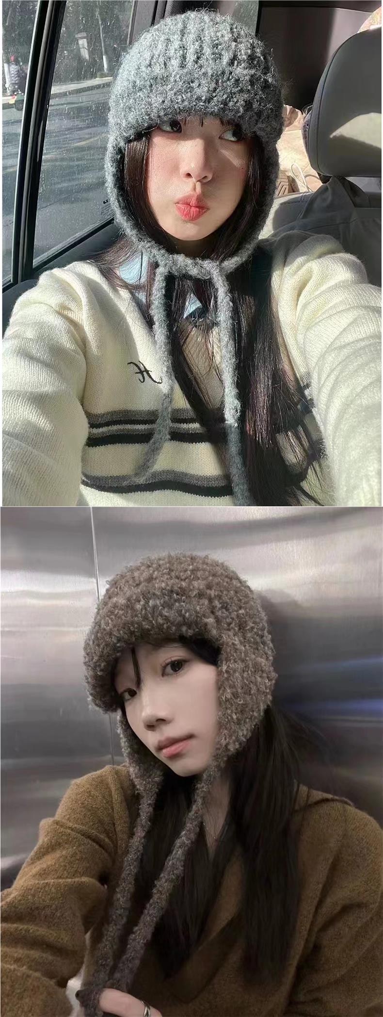 Gorro de invierno para mujer, de moda, con degradado de lana, tejido, gorro de lana, cálido, con protección para las orejas, gorro Lei Feng de invierno.