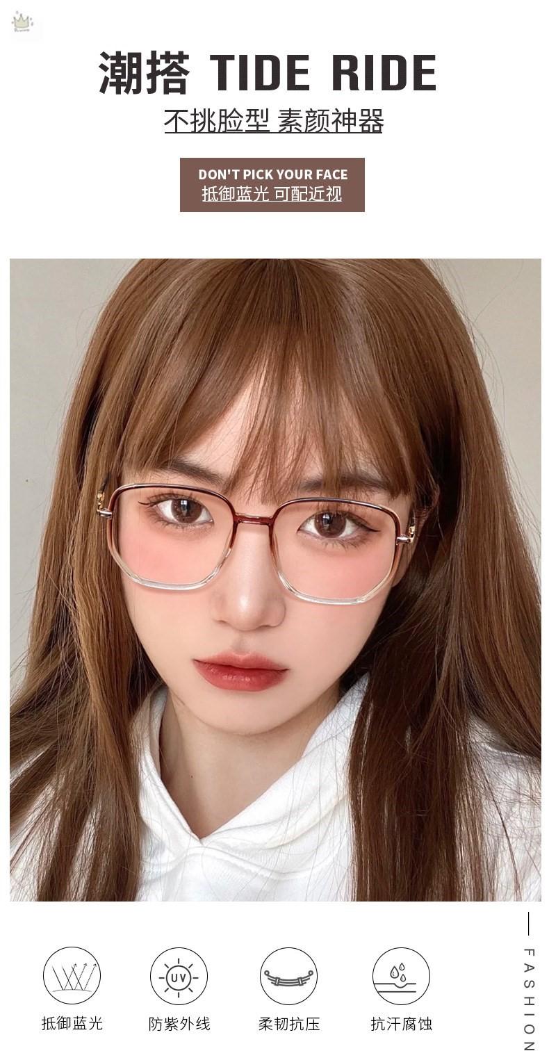56 Anteojos de Montura Grande Transparentes Antiluz Azul para Miopía para Mujer Estilo Coreano Moderno de Montura Grande Sencilla Adelgazantes 30102 Danyang