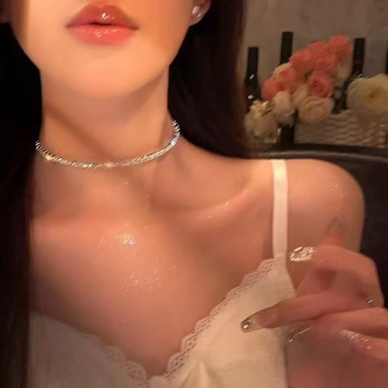 Collar de diamantes brillantes de moda europea y americana con cadena de clavícula de nicho, collar apilado de celebridades de Internet, gargantilla, joyería transfronteriza