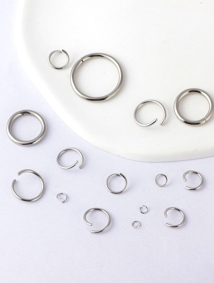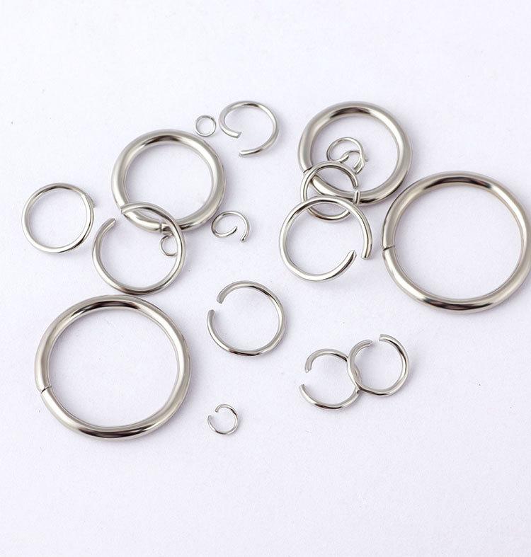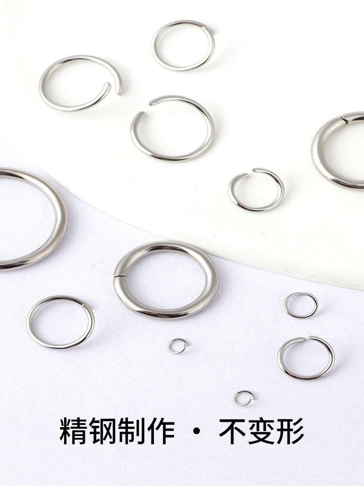 Anillo abierto de acero inoxidable, anillo de metal, pulsera artesanal, collar, material de titanio, conexión de acero, pequeño anillo redondo, hebilla, accesorios de anillo