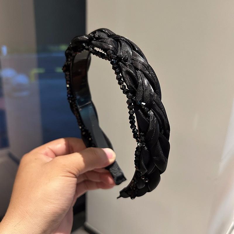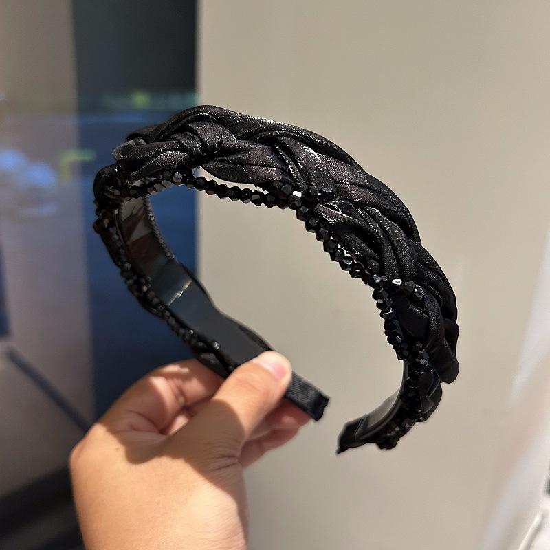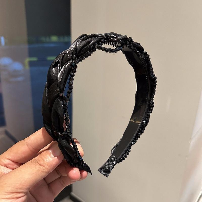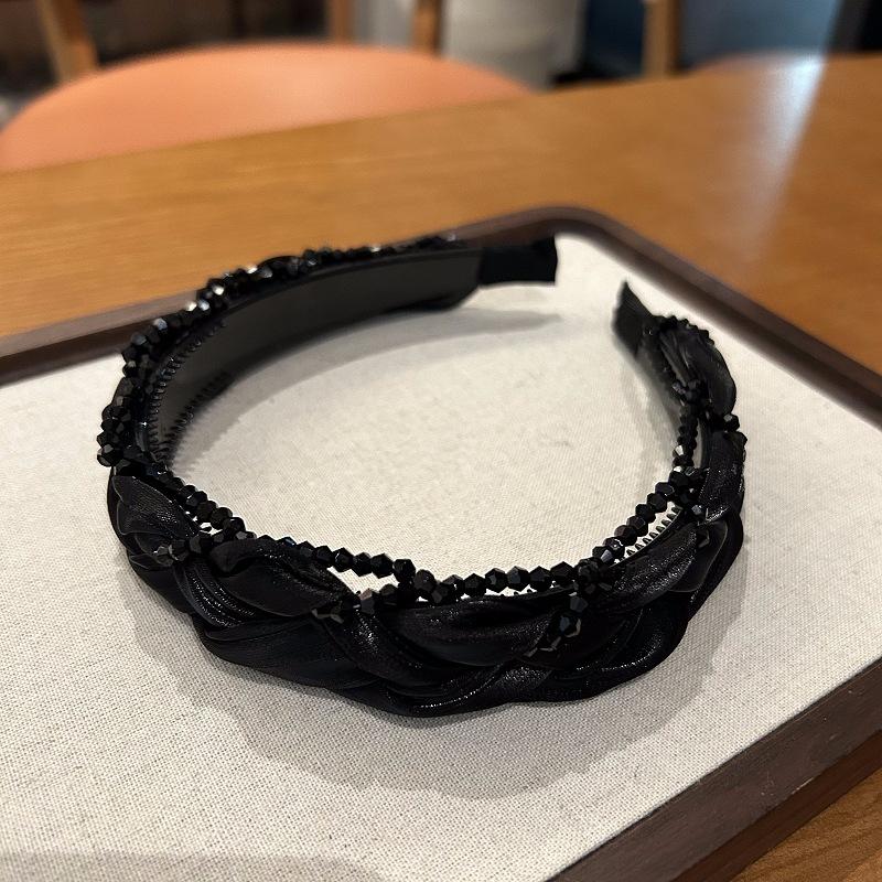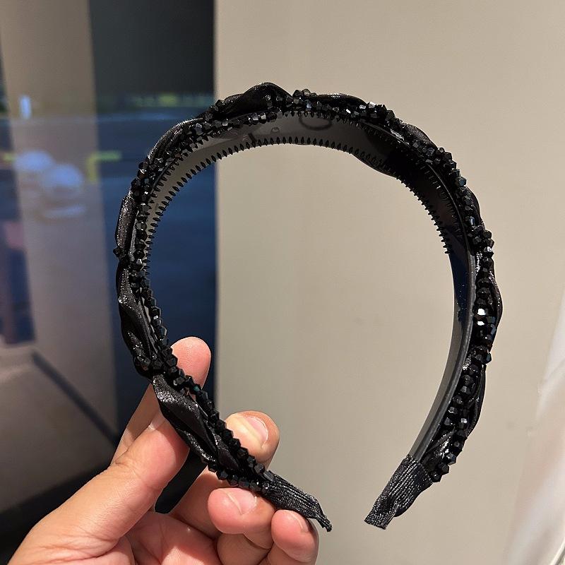 Diadema de Tira de Pedrería Negra Elegante Combinable Diadema para Lavar la Cara Lujo Ligero Accesorios para el Cabello de Alta Gama Tocado para Mujer