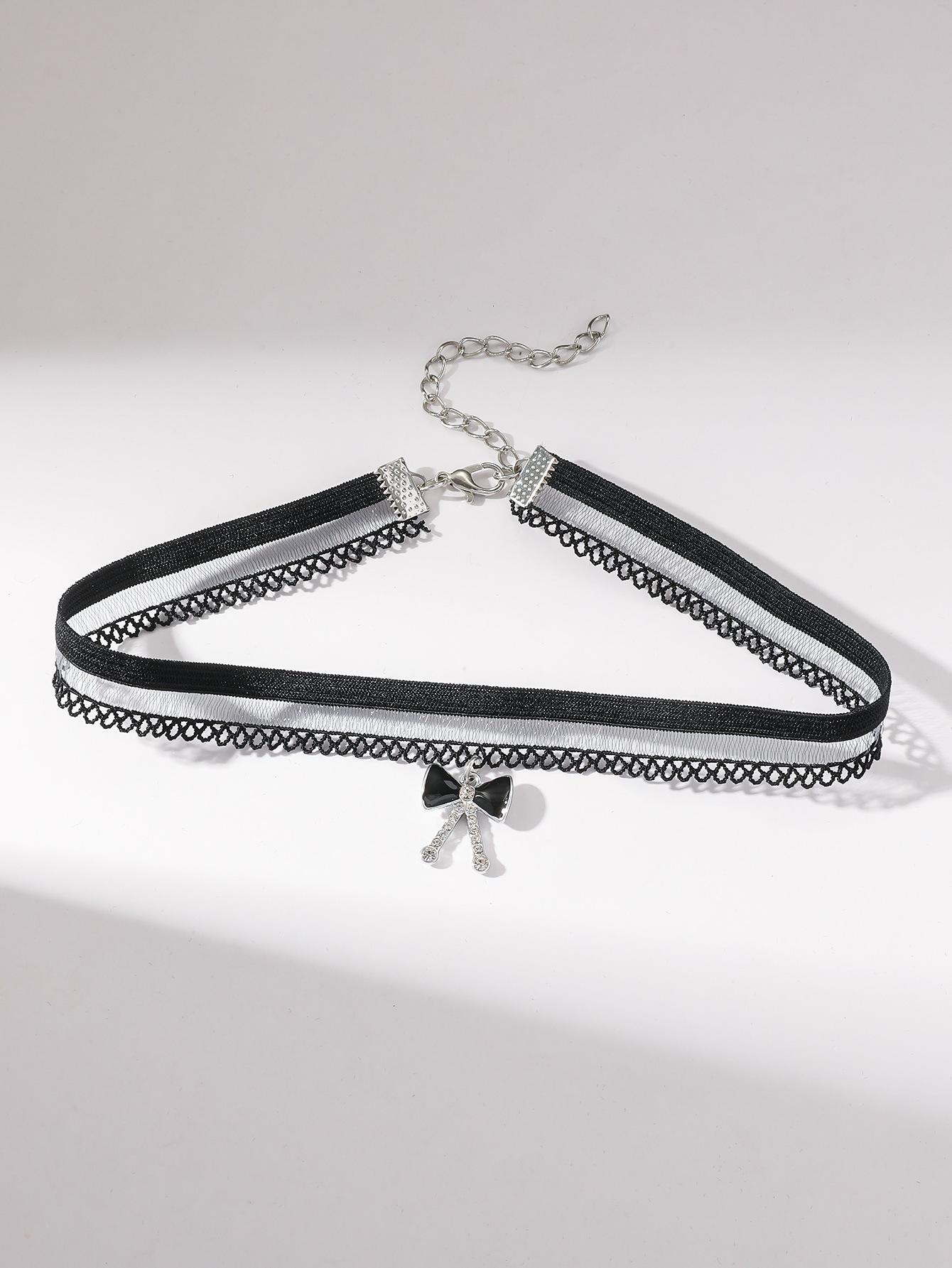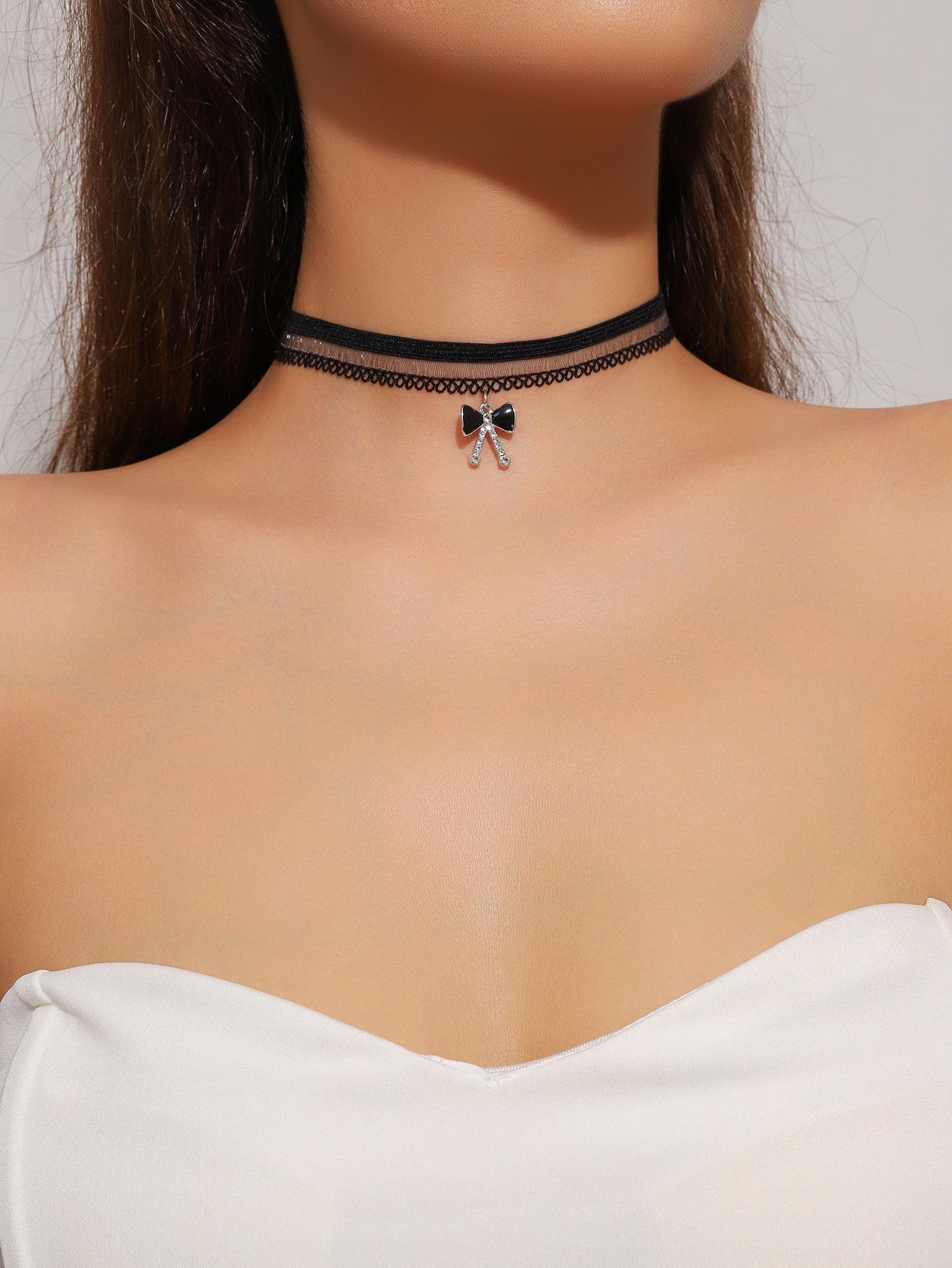 Collar de lazo de encaje sencillo transfronterizo europeo y americano para mujer, estilo oscuro, cadena de clavícula, collar de moda, joyería de cadena