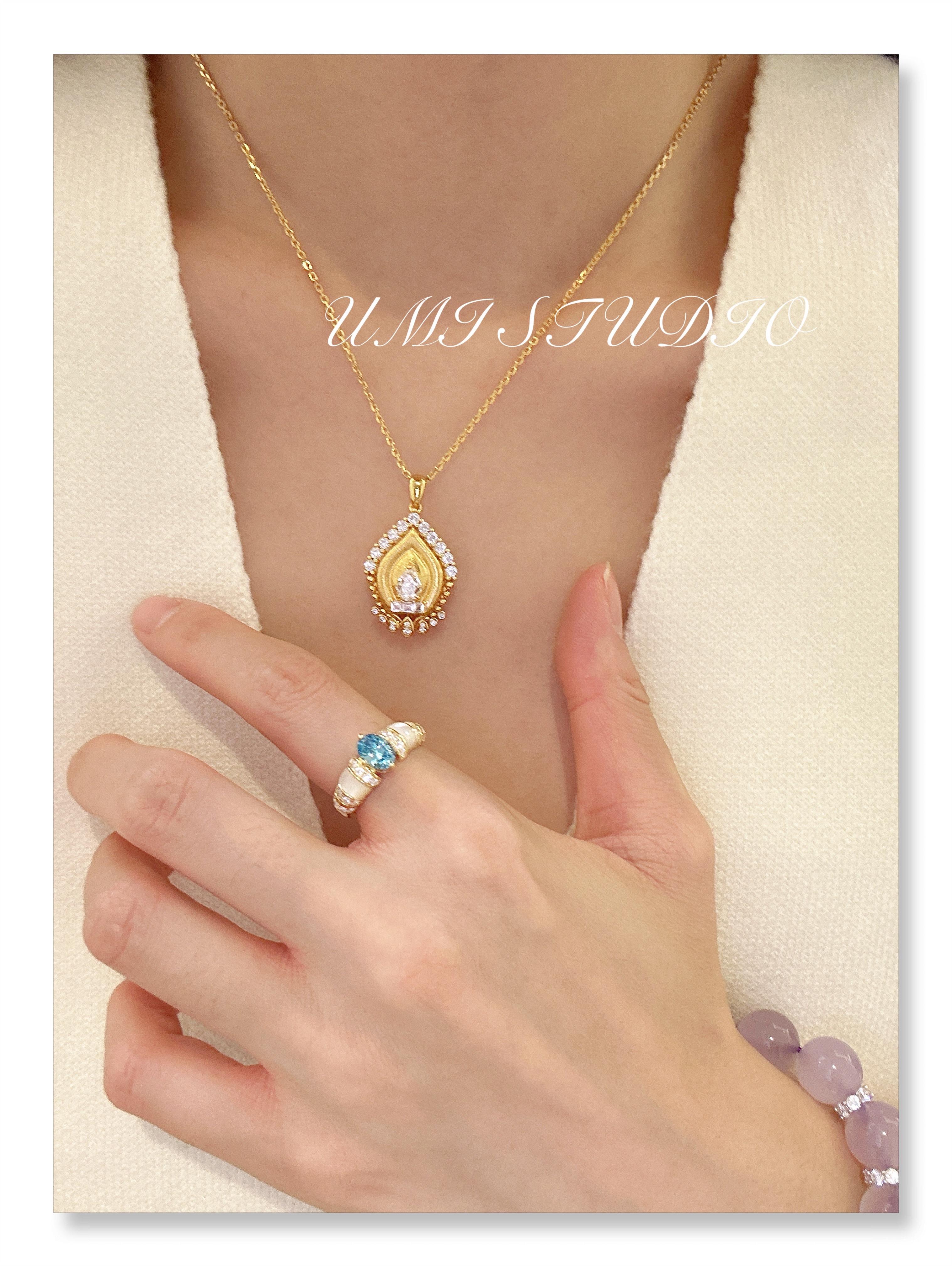 Collar vintage de torre de oro cepillado con cadena de clavícula chapada en oro de 18 quilates, estilo francés elegante, 2023