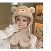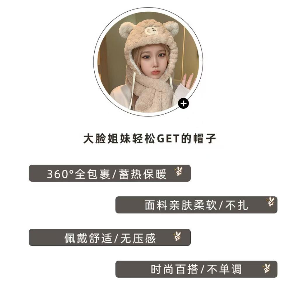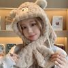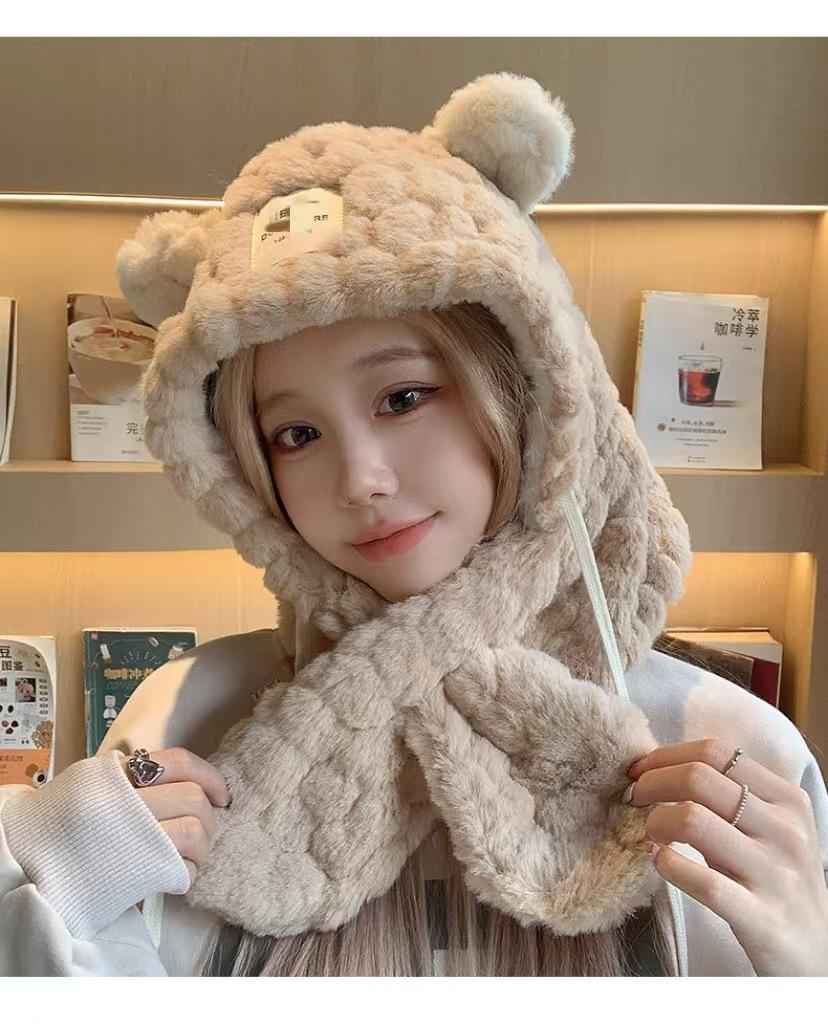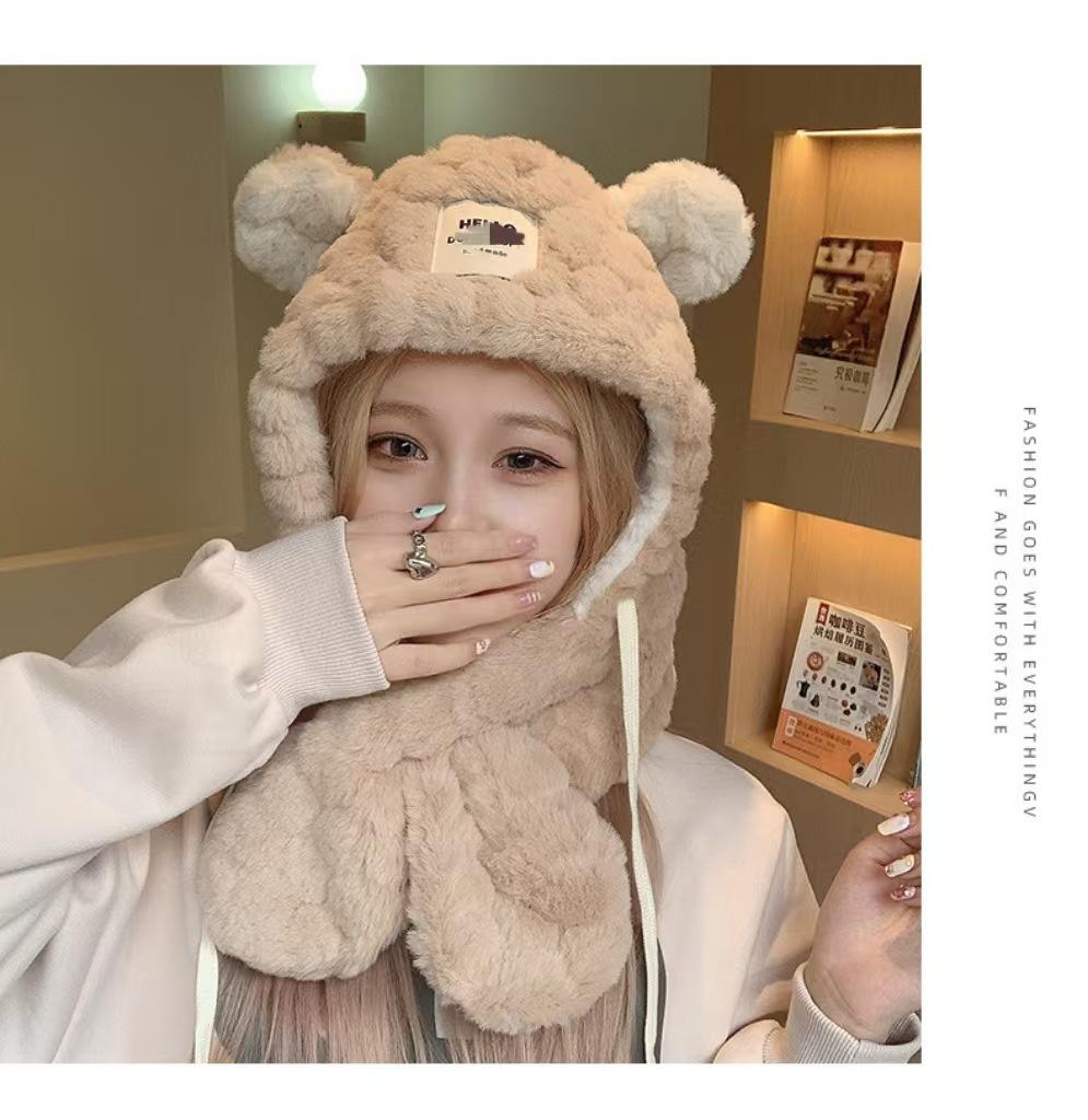 Gorro de peluche con orejas de oso para mujer, de invierno, grueso, con forro polar, bufanda, de una pieza, cálido, para ciclismo, Lei Feng