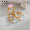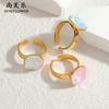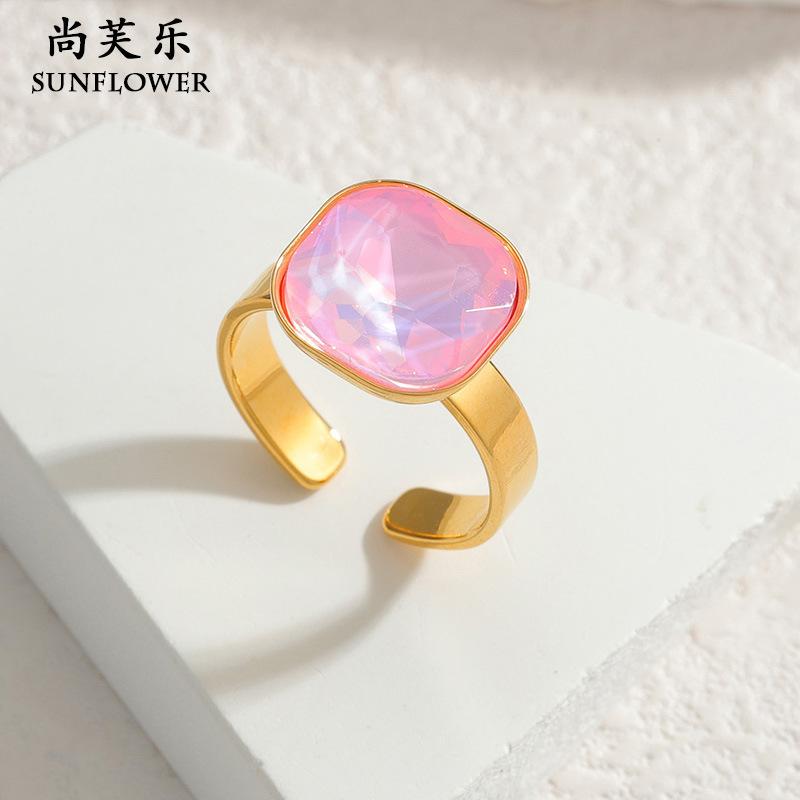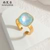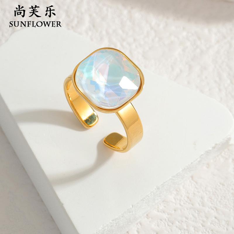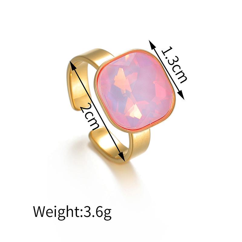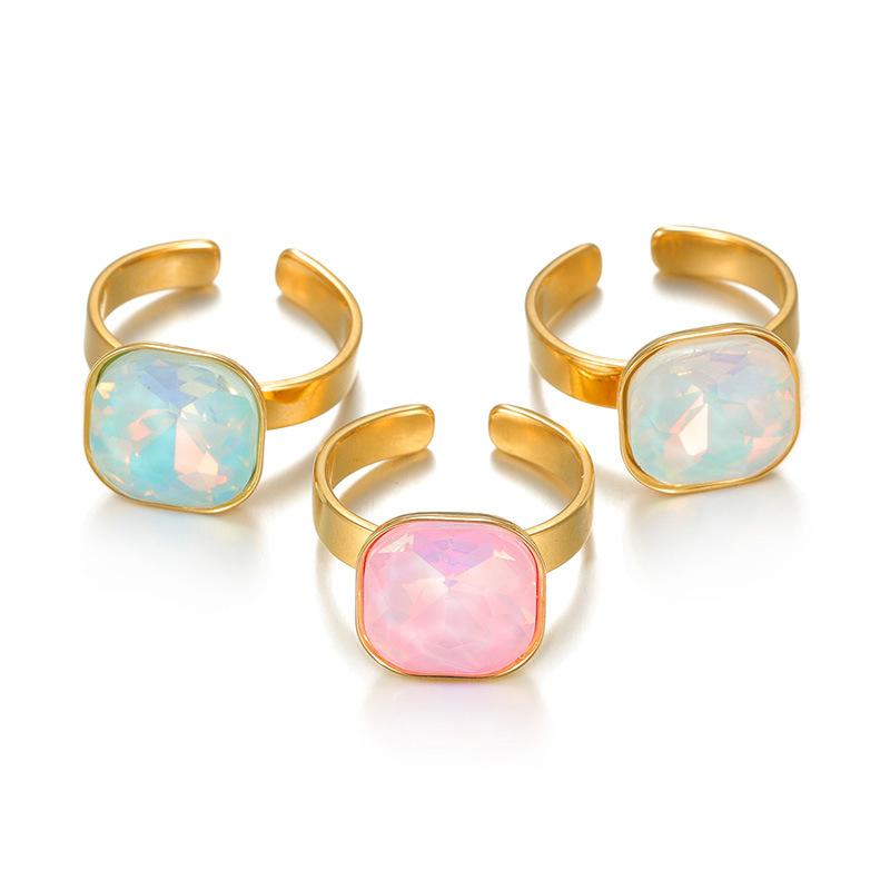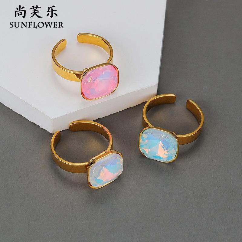 Anillo abierto de acero inoxidable con piedras preciosas de colores cuadrados geométricos de Niche Ins, joyería de metal fino europeo y americano de alta calidad.