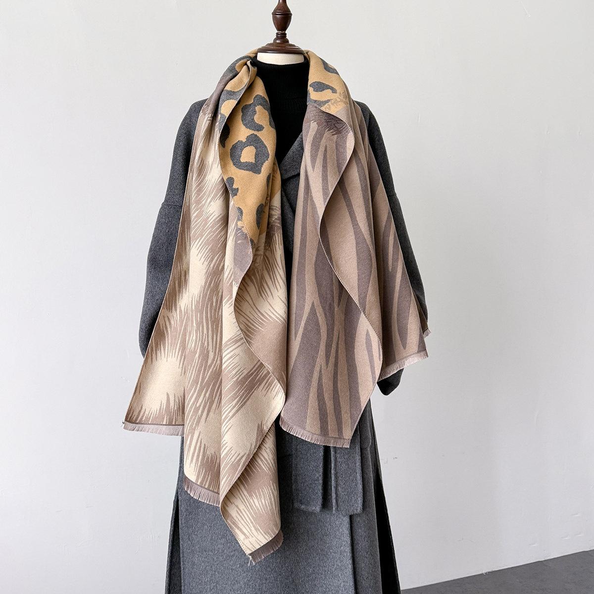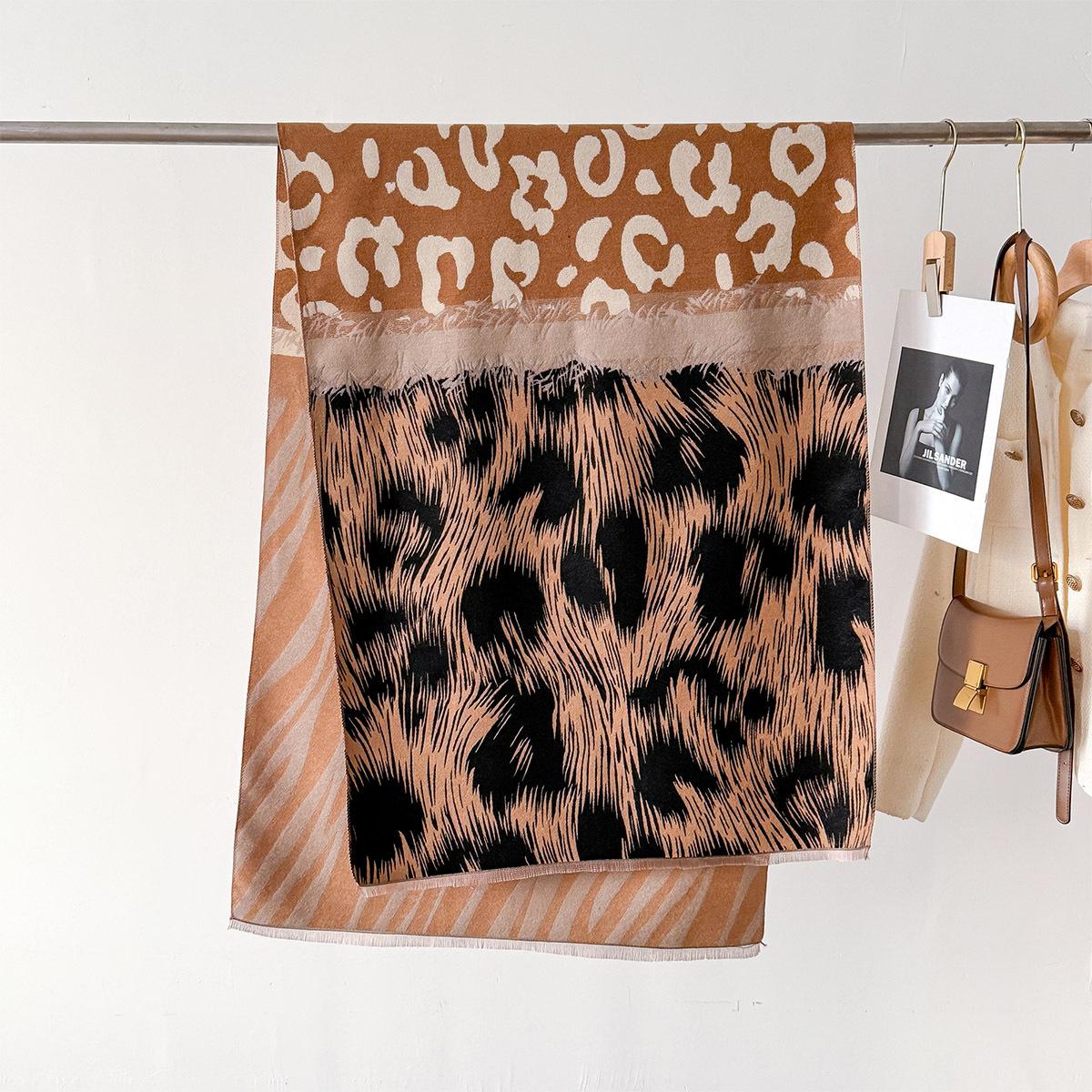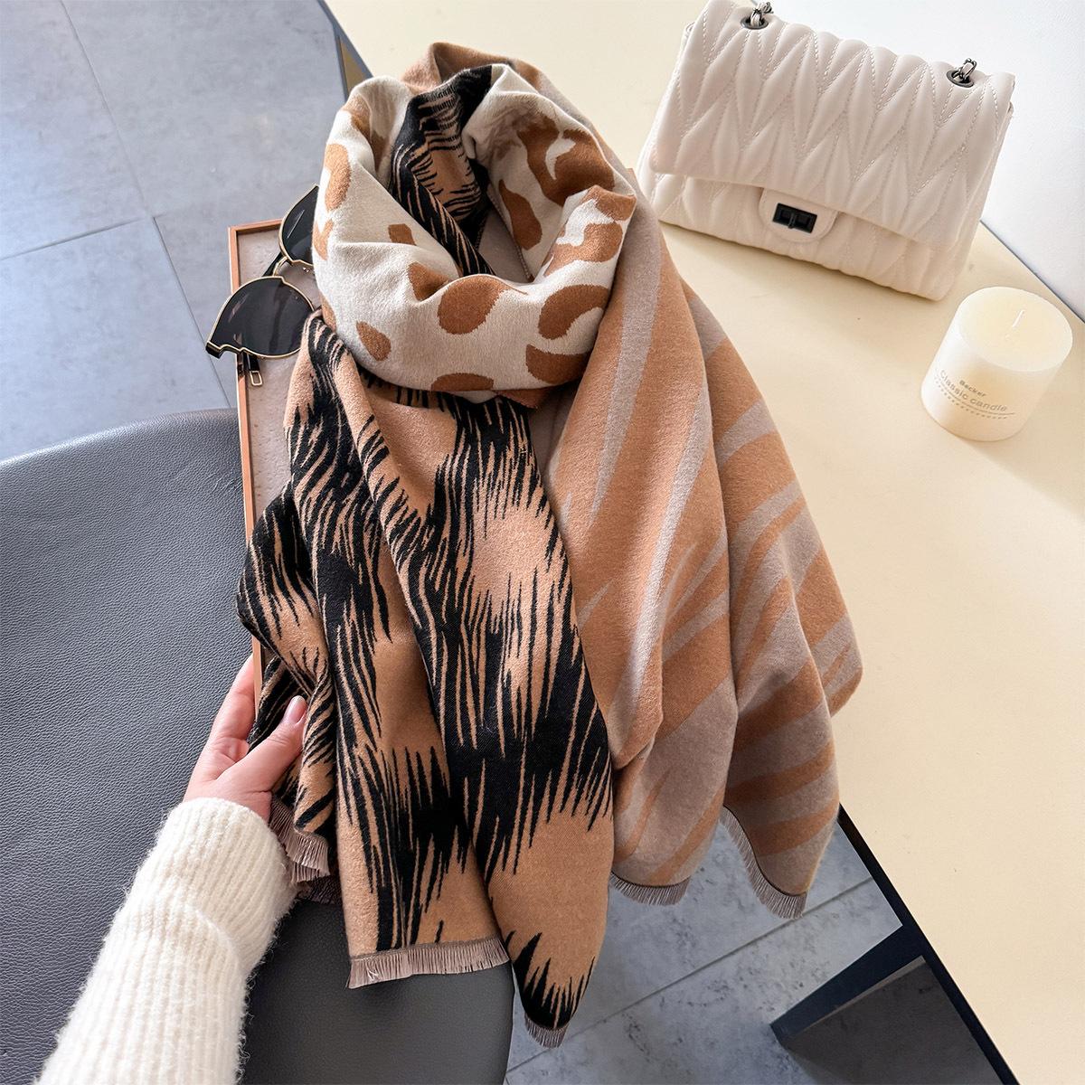 Bufanda para Mujer Otoño e Invierno Estilo Coreano Combinable Doble Cara Cachemira Gruesa Cálida Bufanda Estampado de Leopardo Larga Doble Propósito Chal Grande