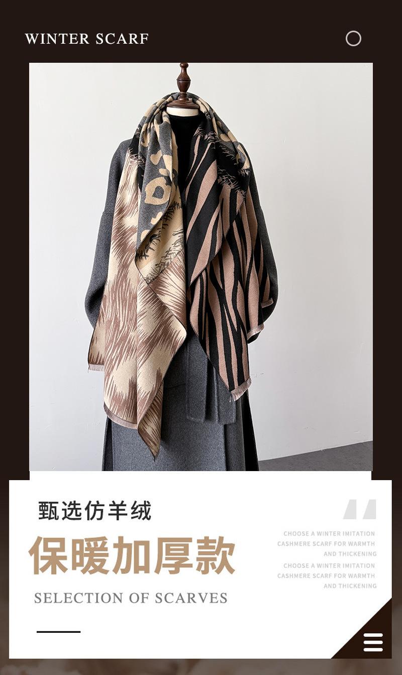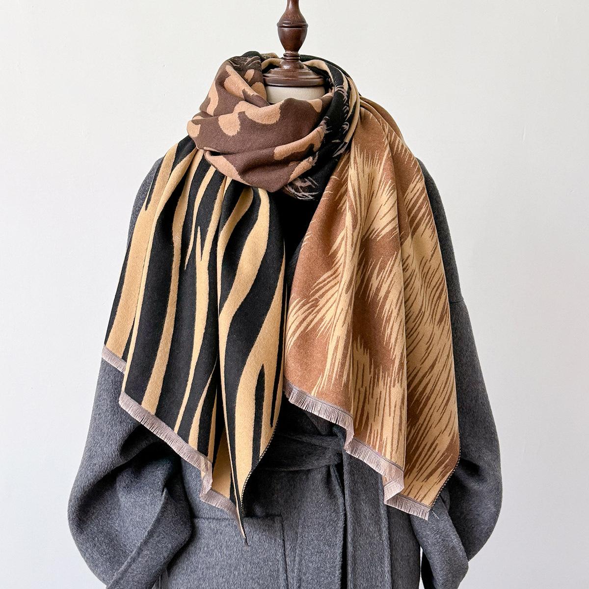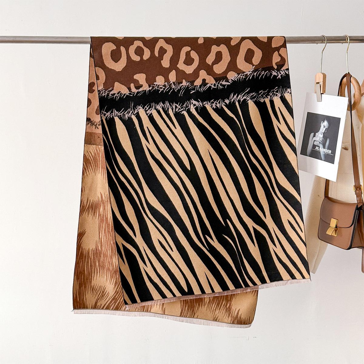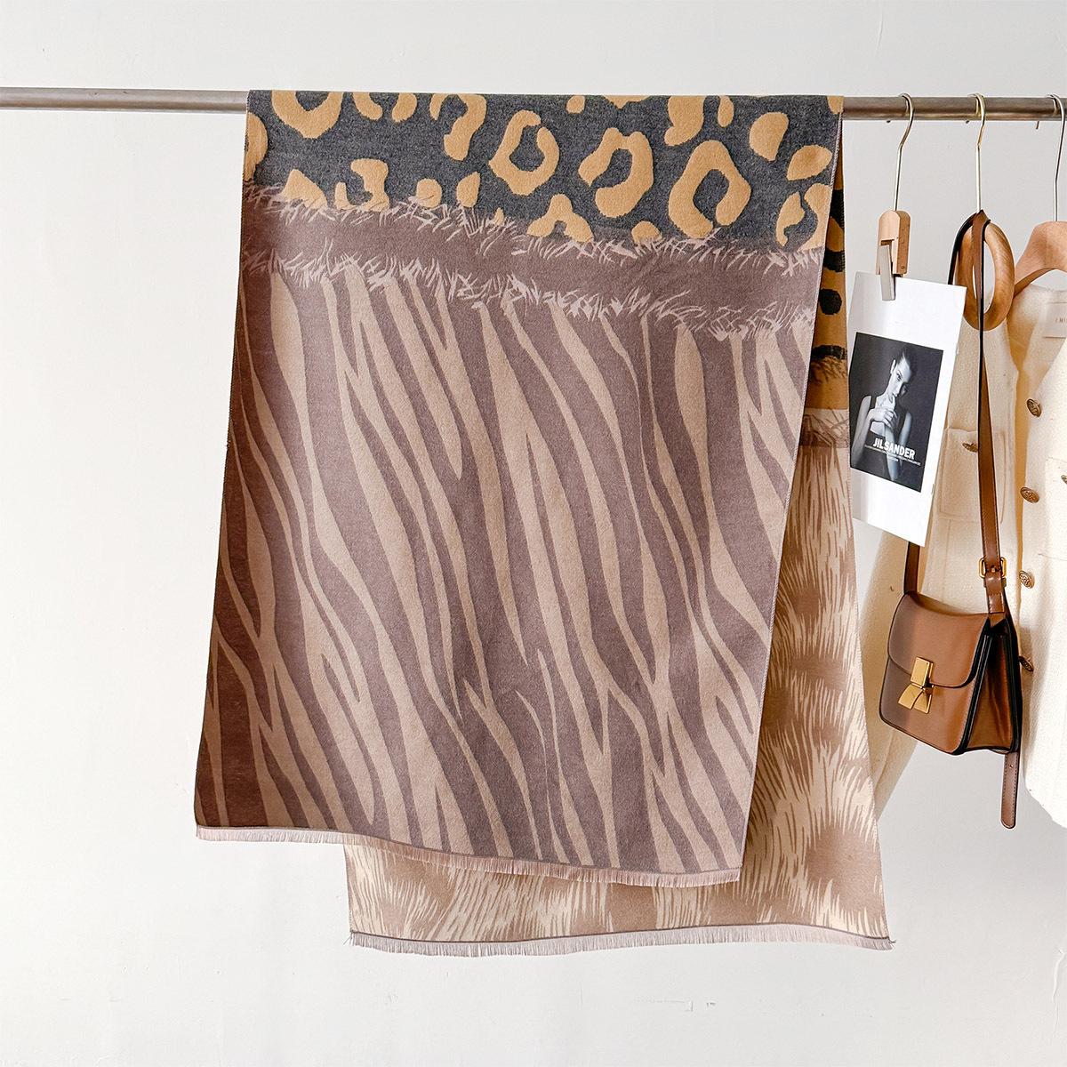 Bufanda para Mujer Otoño e Invierno Estilo Coreano Combinable Doble Cara Cachemira Gruesa Cálida Bufanda Estampado de Leopardo Larga Doble Propósito Chal Grande
