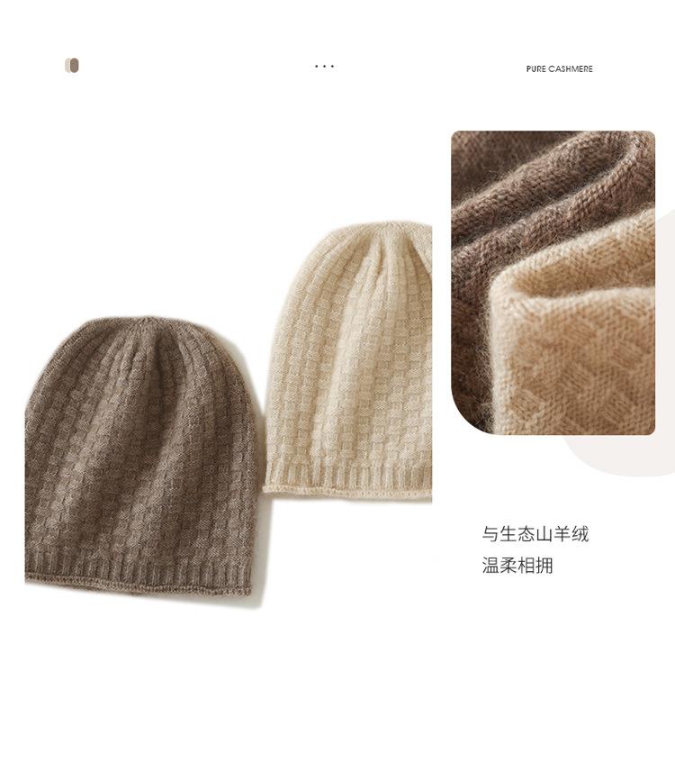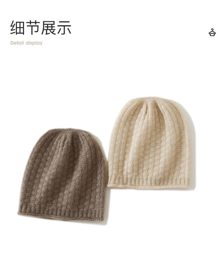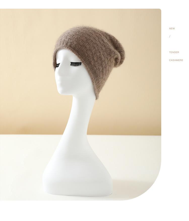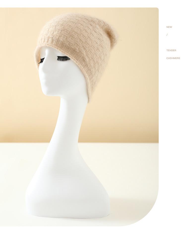 Cachemira 2025 Primavera Nuevo para Mujer de Alta Gama Color Sólido Tejido de Cable Grueso Cálido Moda Gorro de Punto con Protección para las Orejas