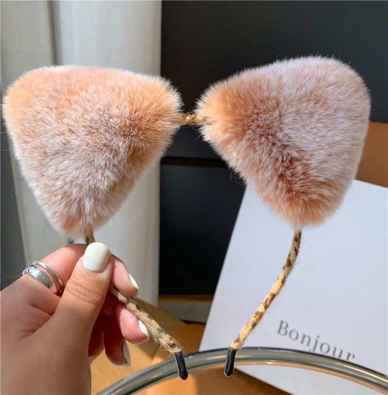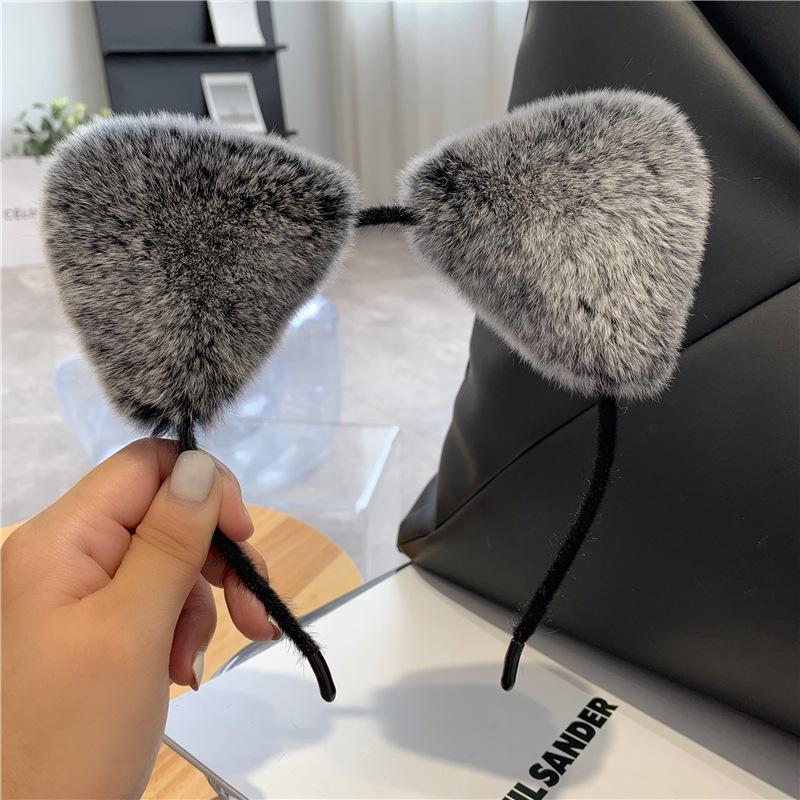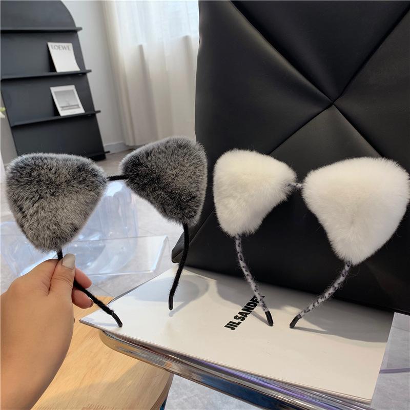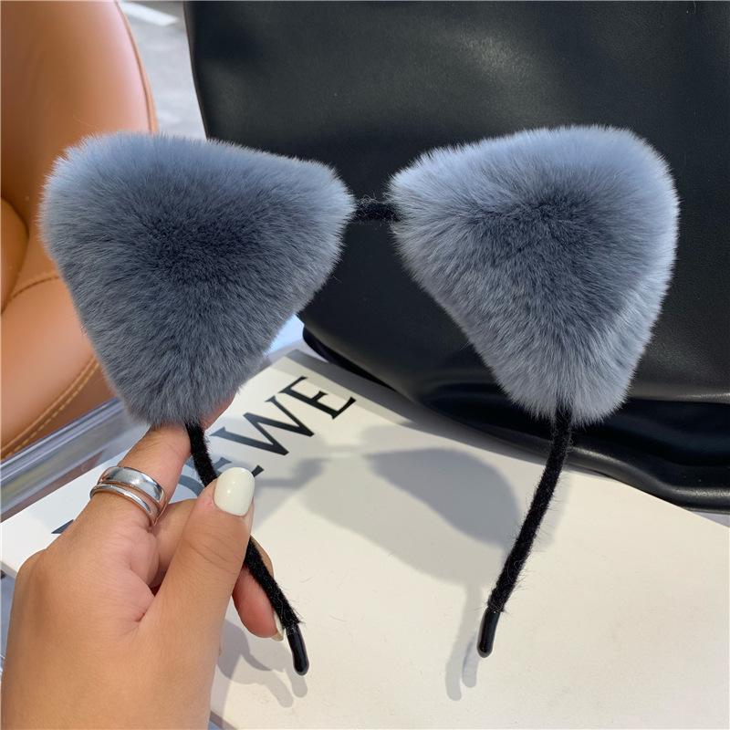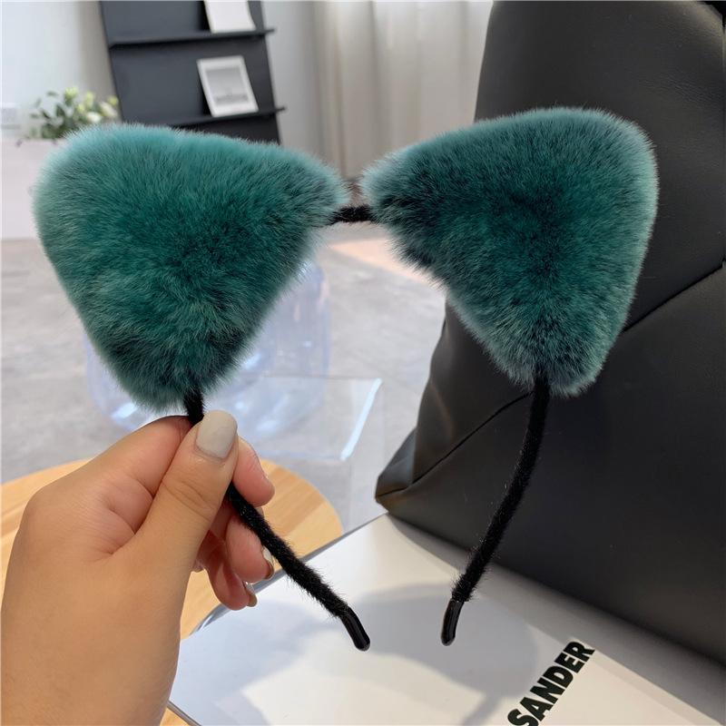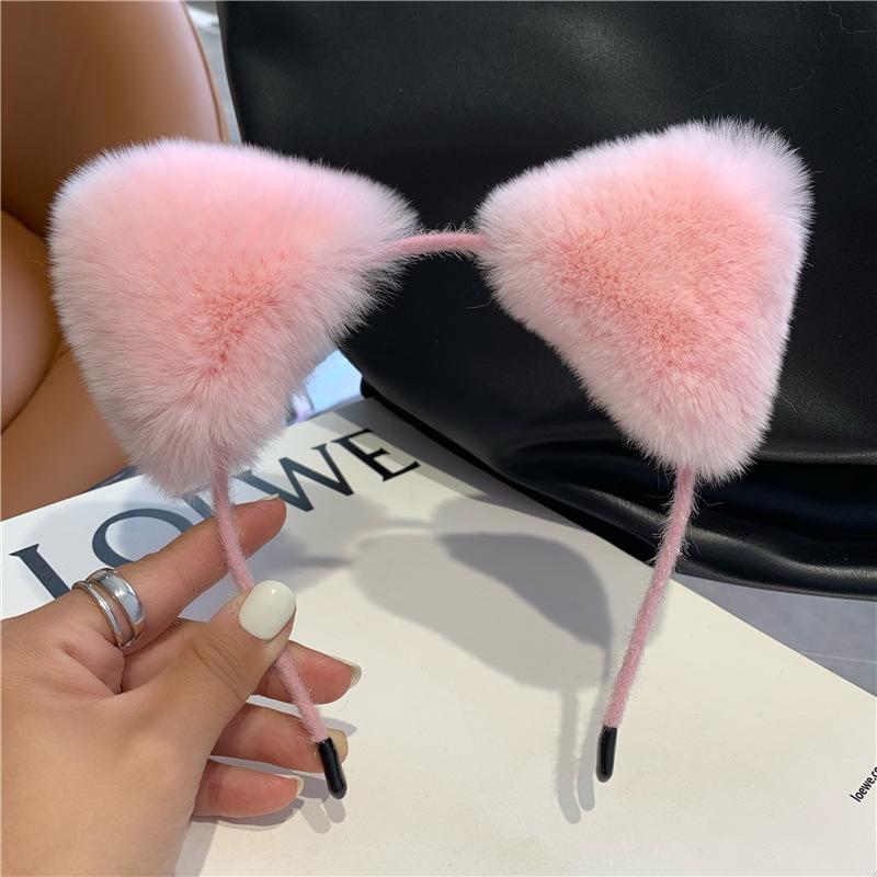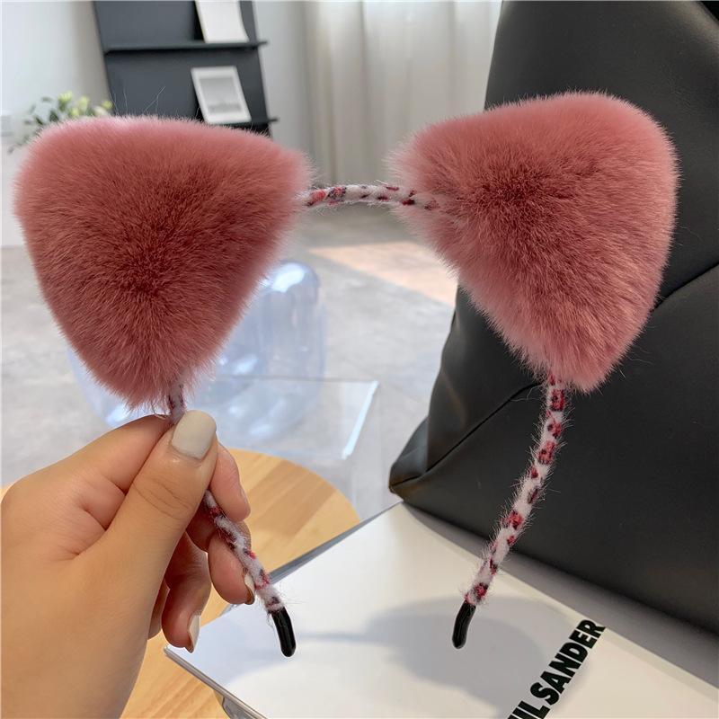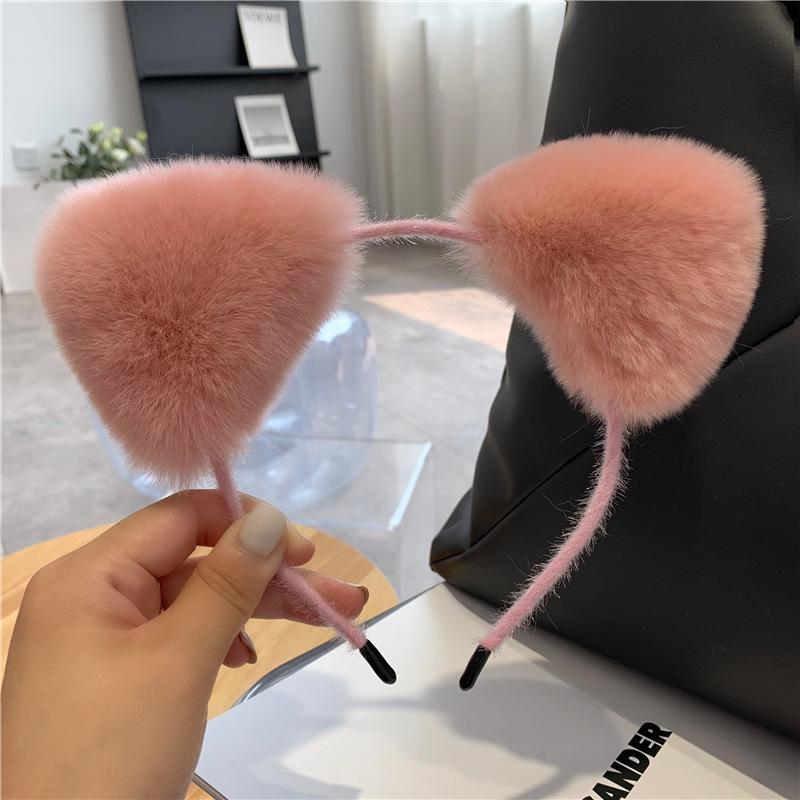 Diadema con orejas de gato y conejo Rex real para mujer, accesorio para el cabello con forma de aro para el pelo, de peluche, para celebridades de Internet