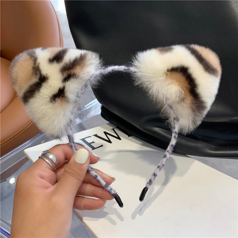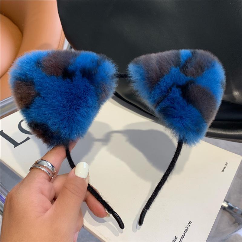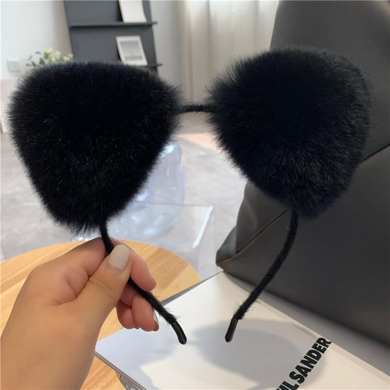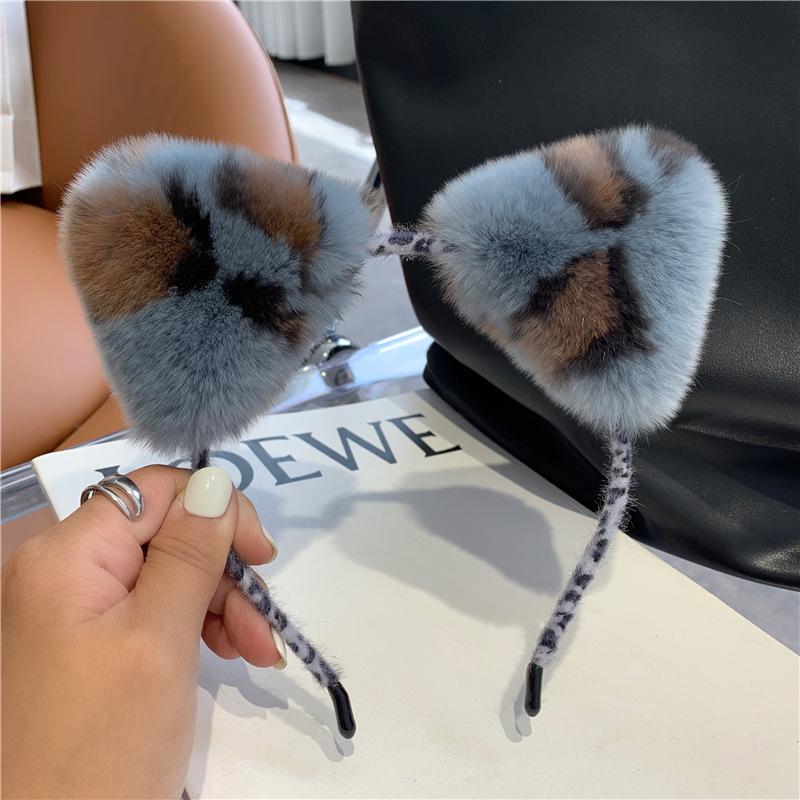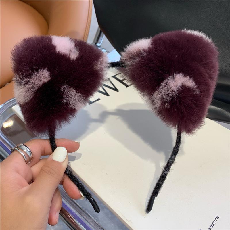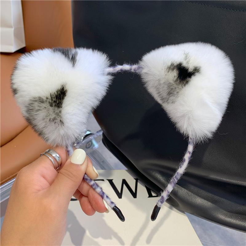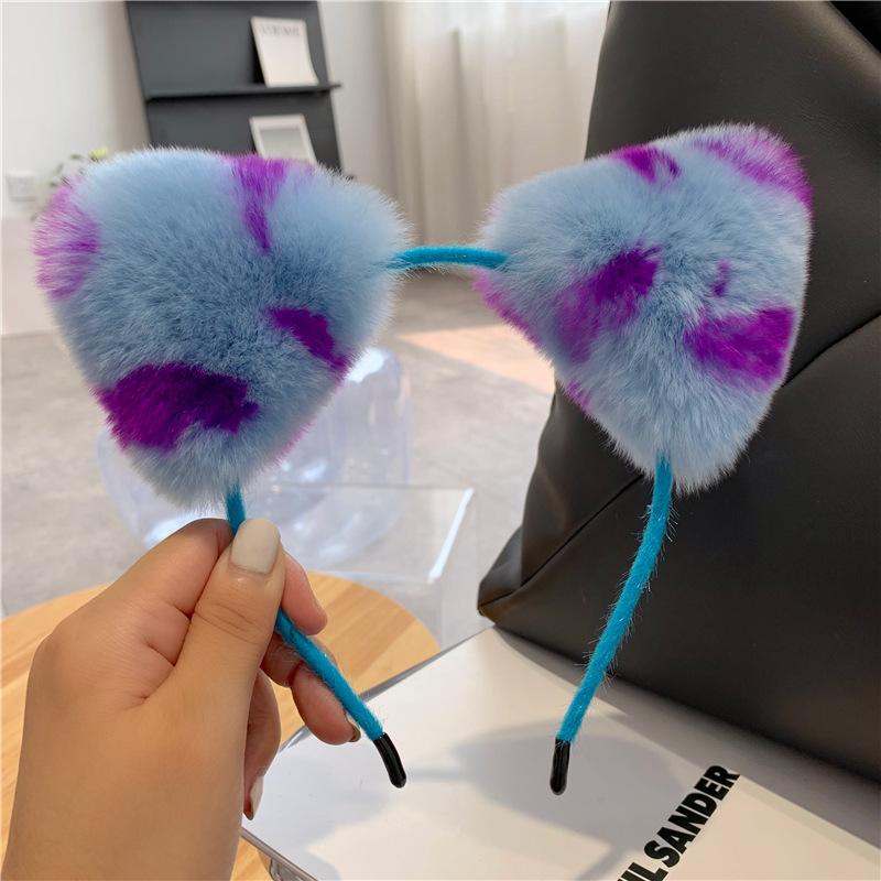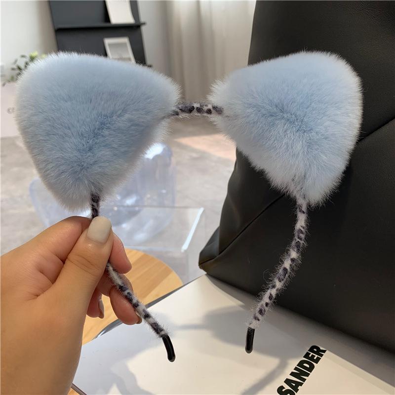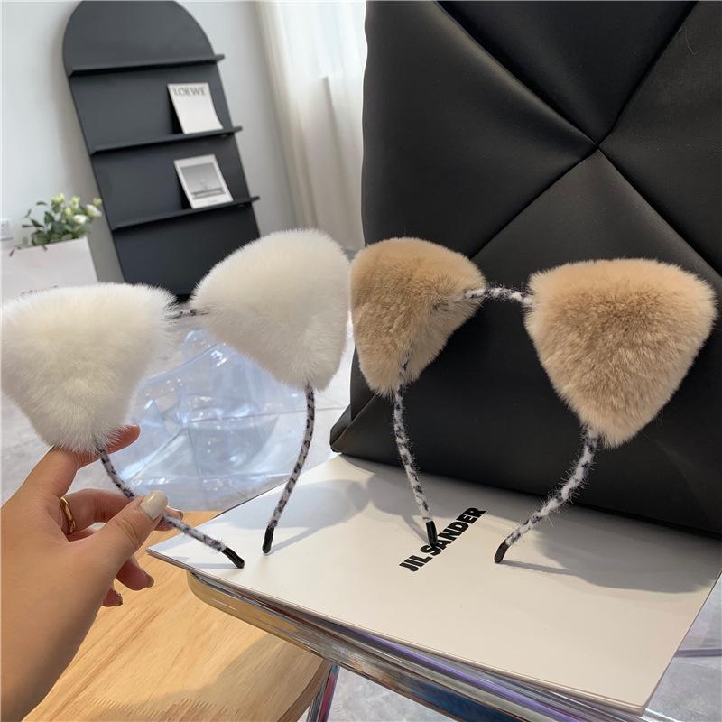 Diadema con orejas de gato y conejo Rex real para mujer, accesorio para el cabello con forma de aro para el pelo, de peluche, para celebridades de Internet