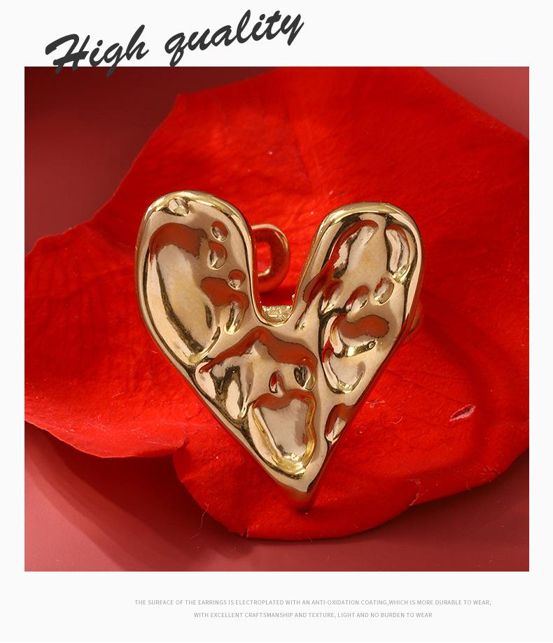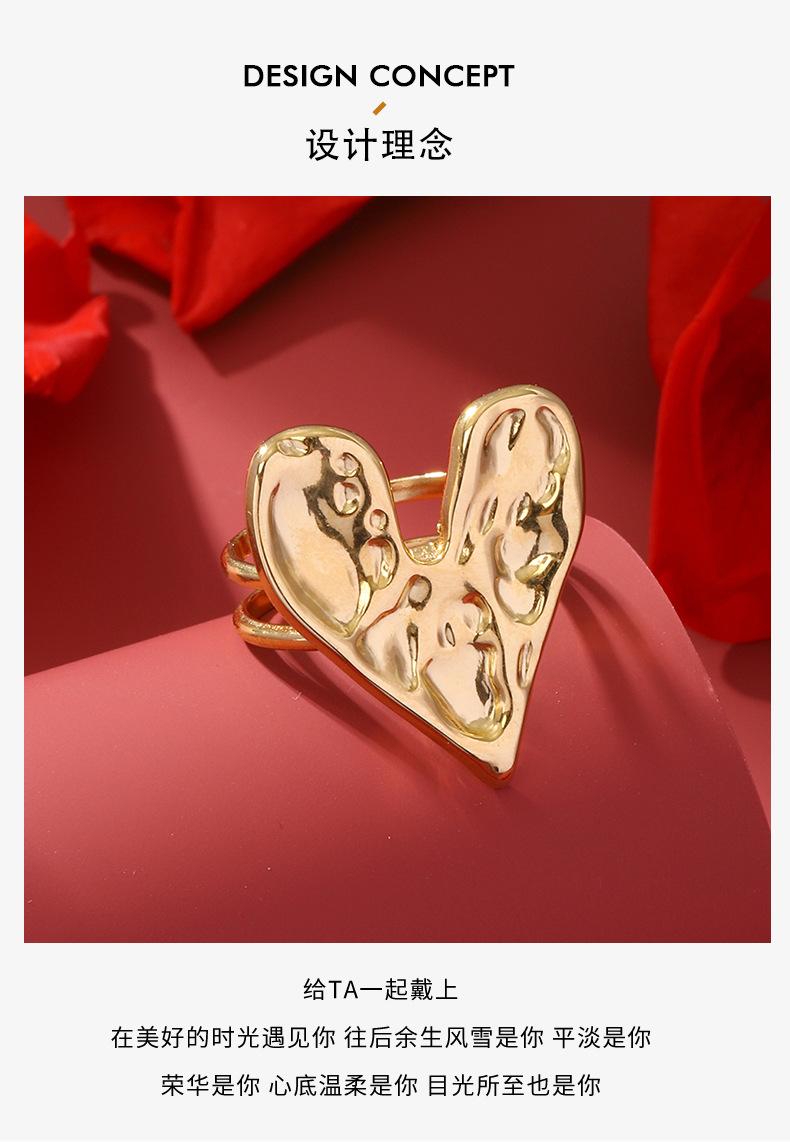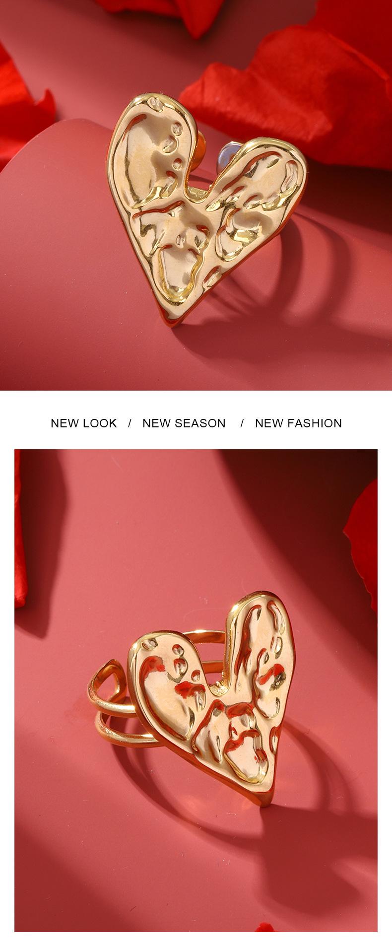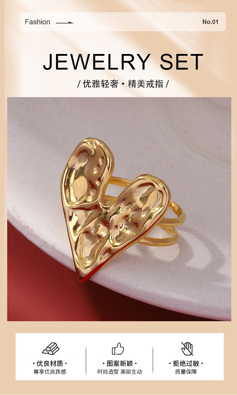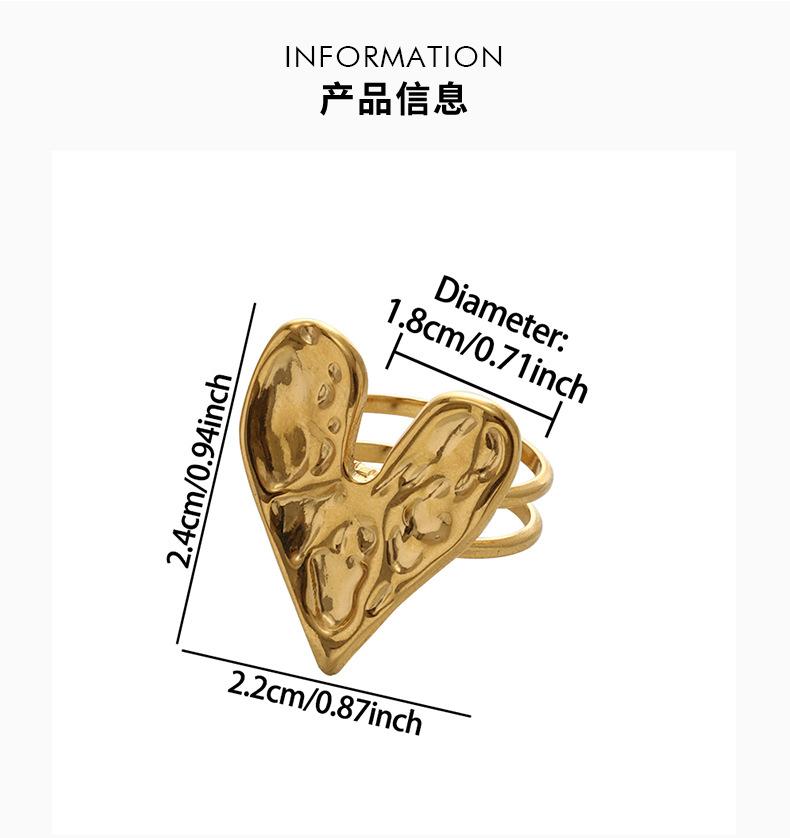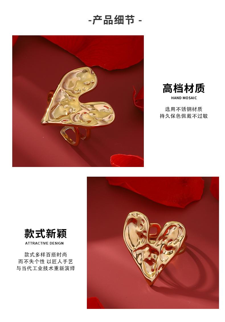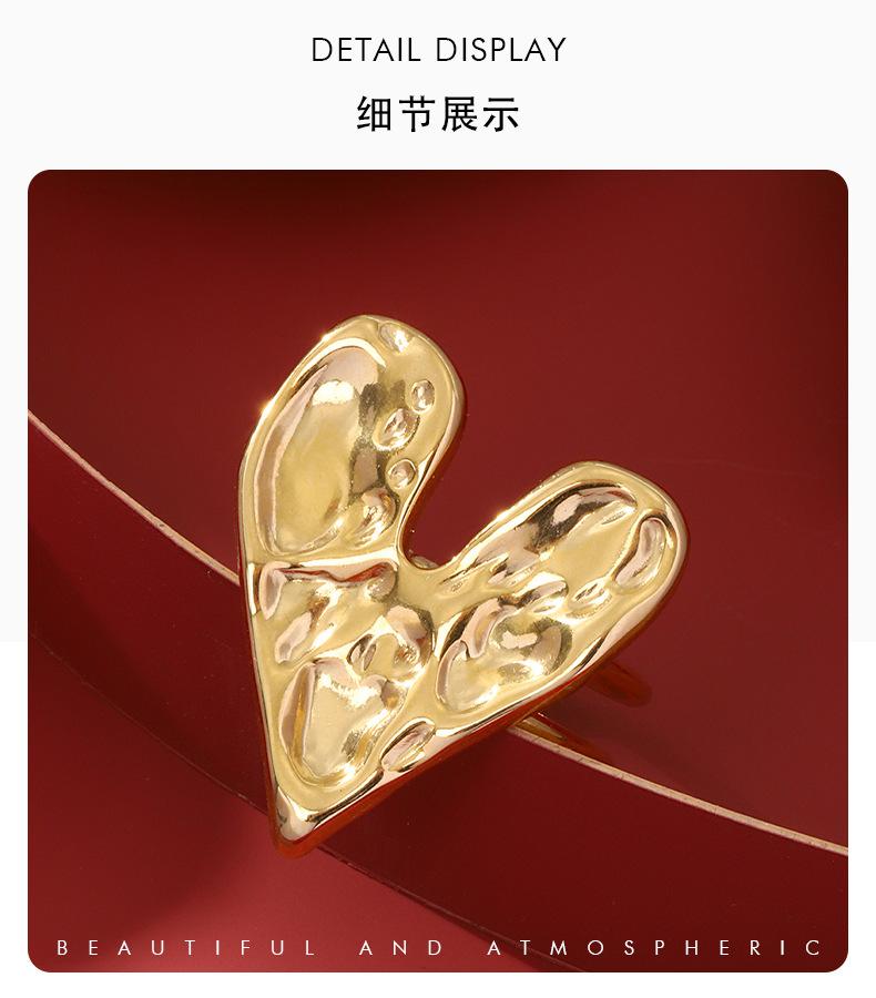 Anillo de acero inoxidable con forma de corazón, de lujo, estilo retro, ligero y transfronterizo, de estilo europeo y americano, elegante y de alta calidad, con apertura sin color.