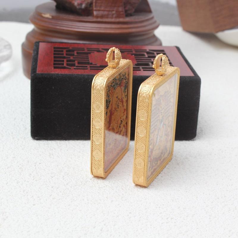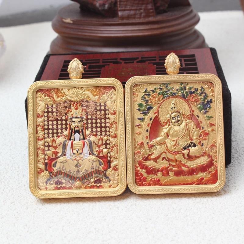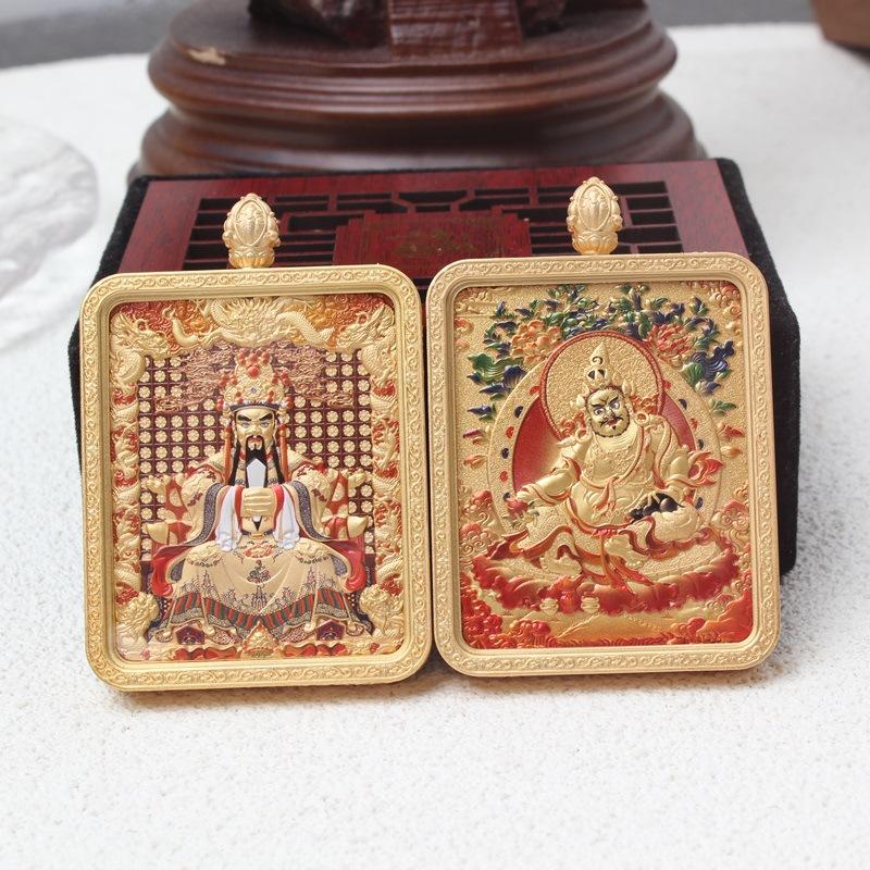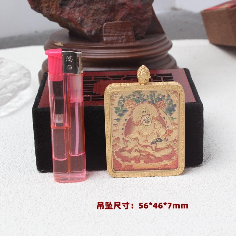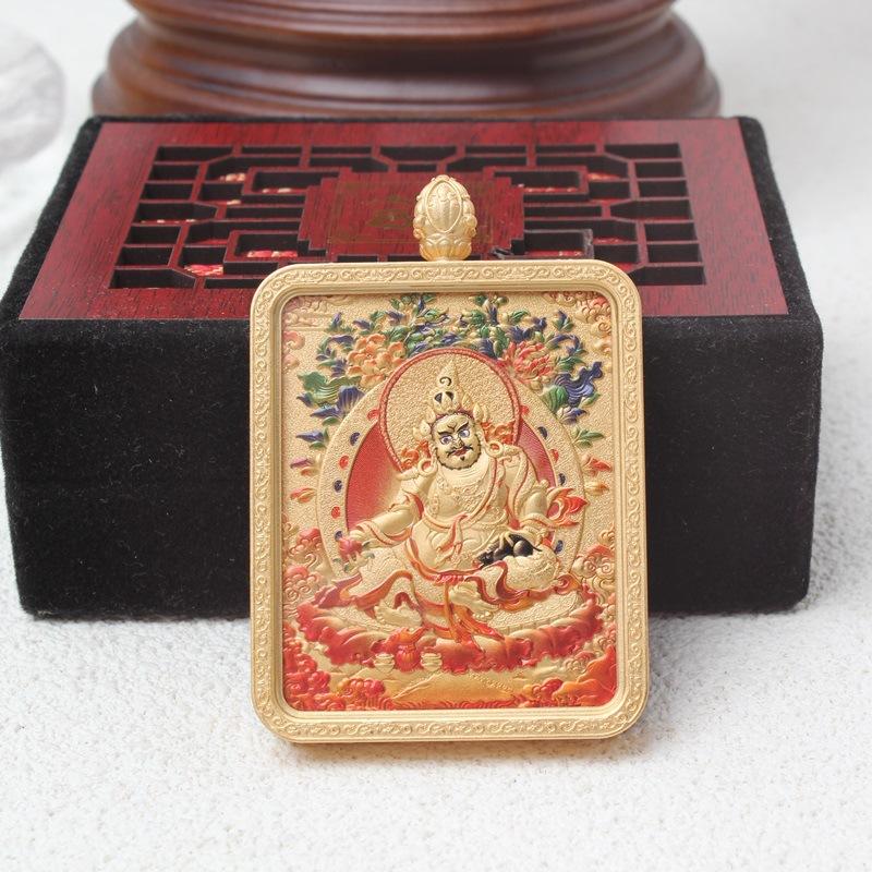 Colgante Thangka de latón tridimensional de doble cara bañado en oro de Seiko Wuye Huang Caishen, collar con cadena de lana