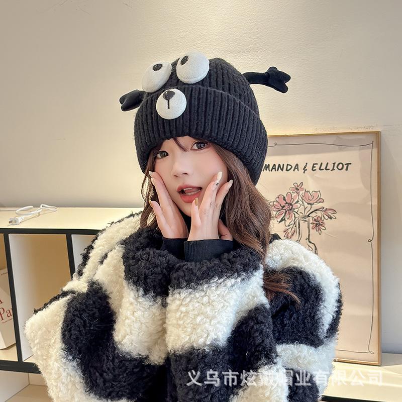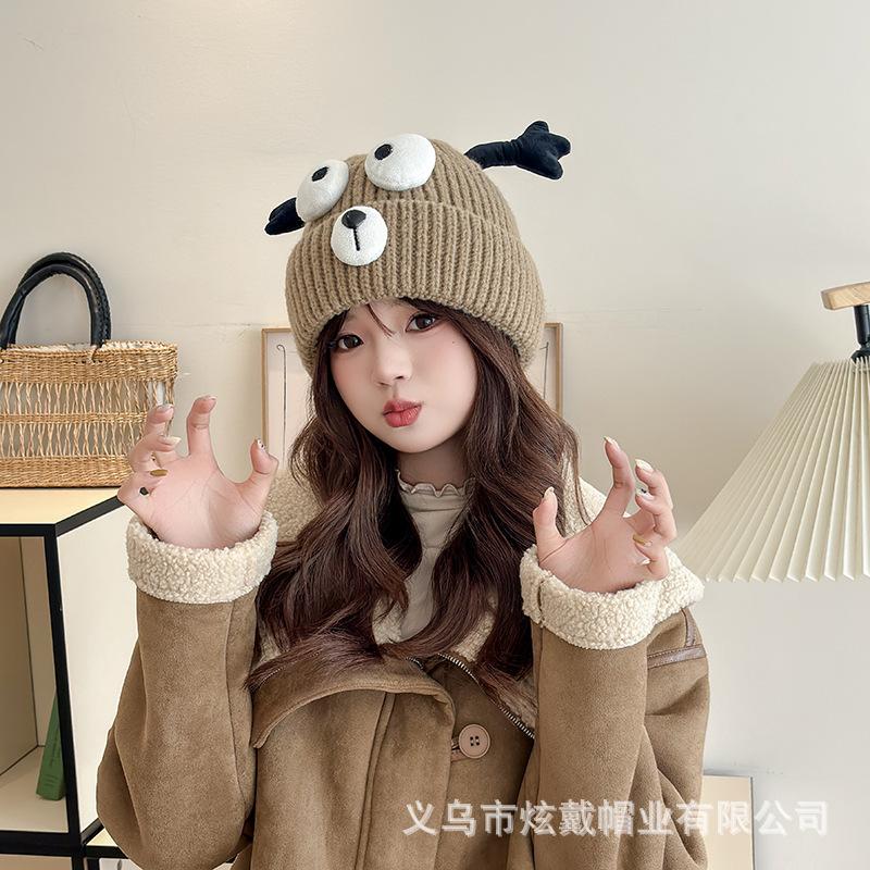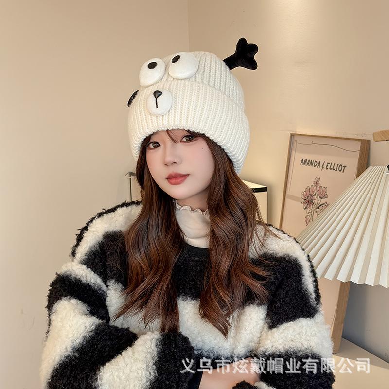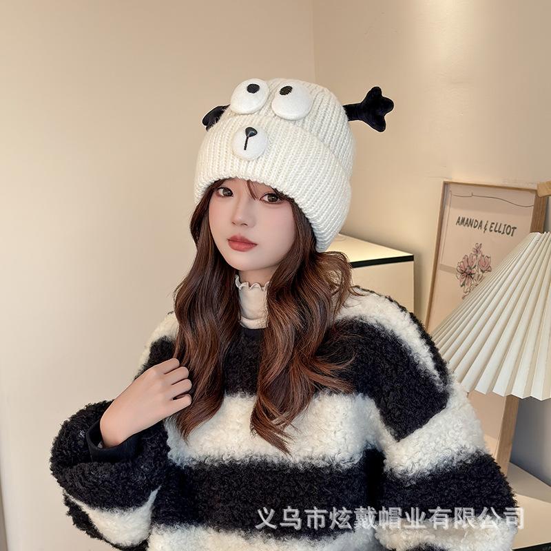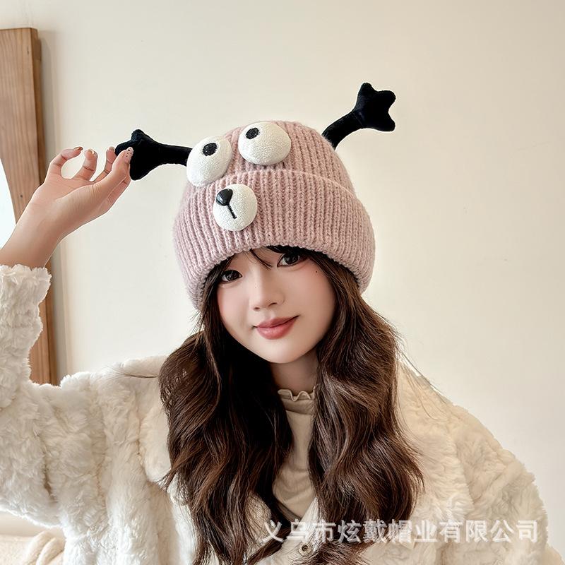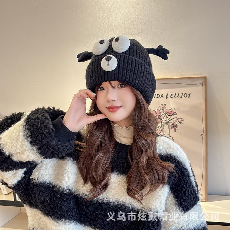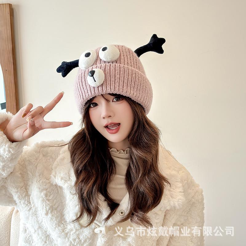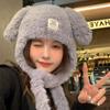 Gorro de otoño e invierno para mujer, de felpa, tejido coreano, cálido, con protección para las orejas, grueso y de lana.