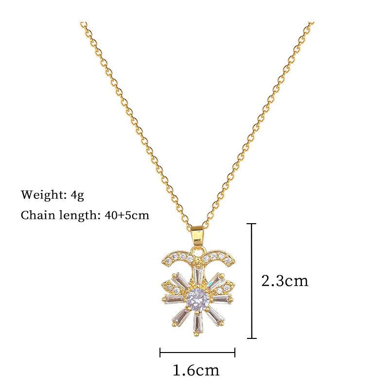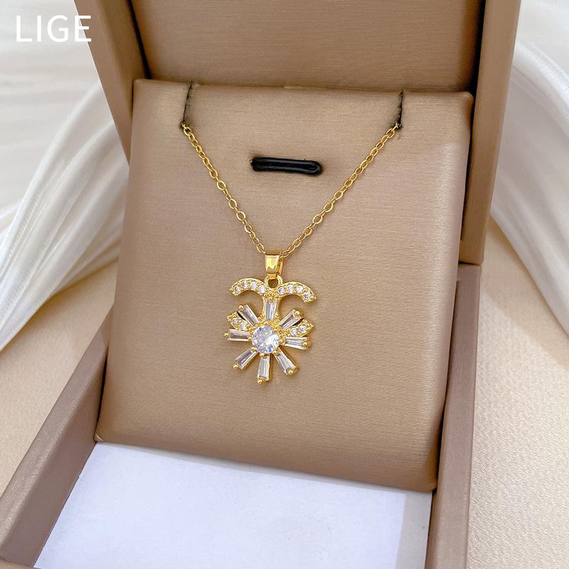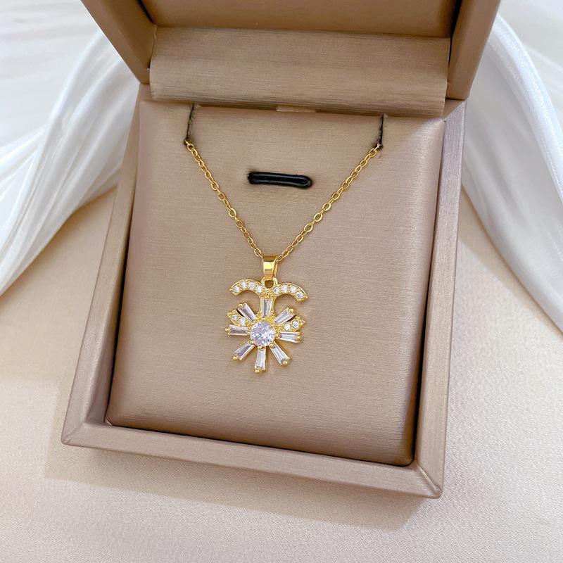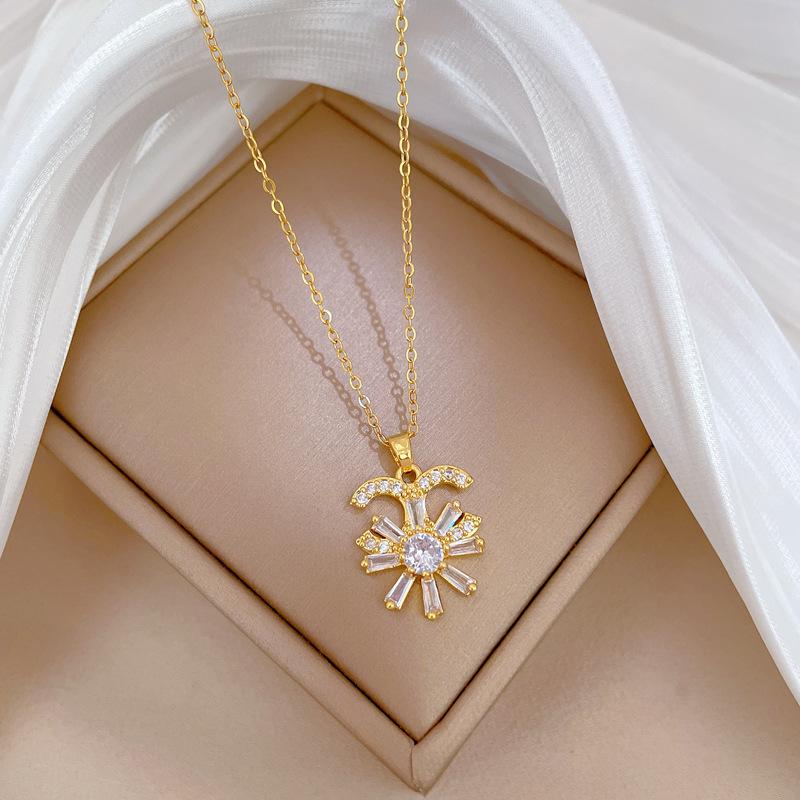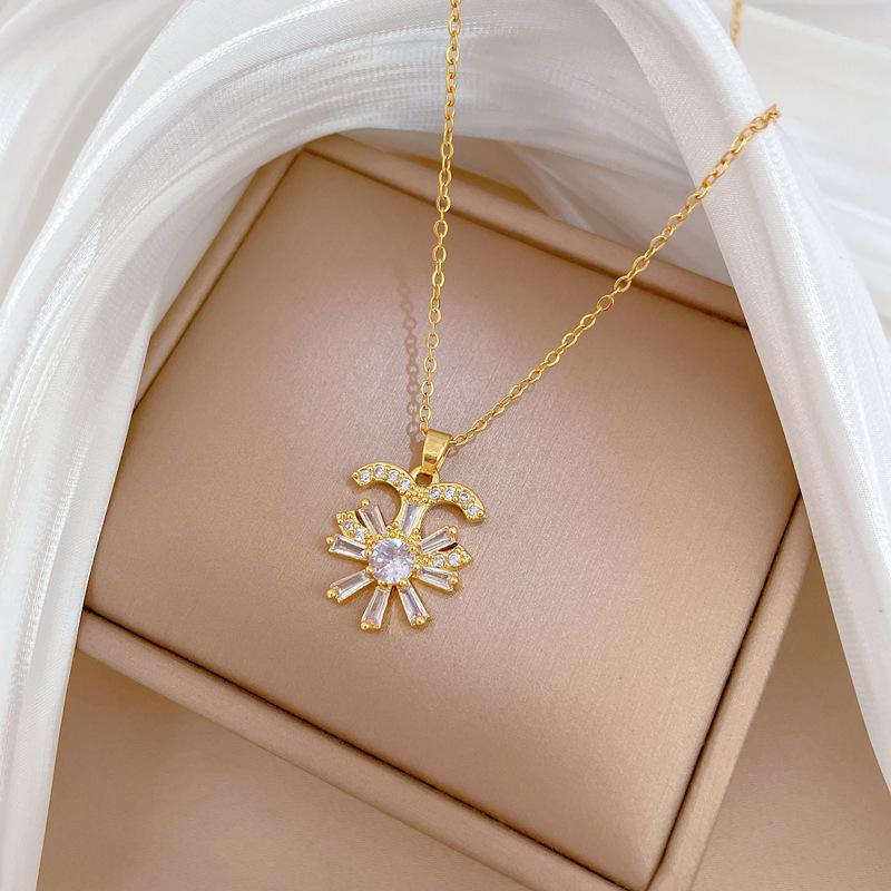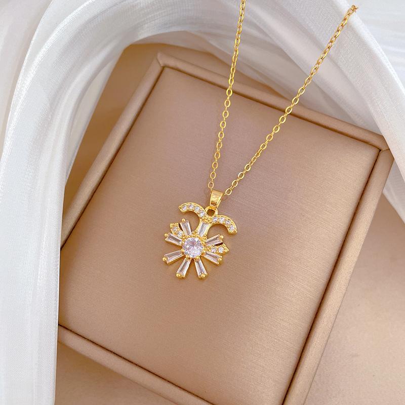 [Acero de titanio] Collar elegante y lujoso con flor de media luna y diamantes para mujer, cadena de clavícula a juego, cadena de acero de titanio.