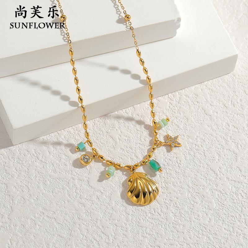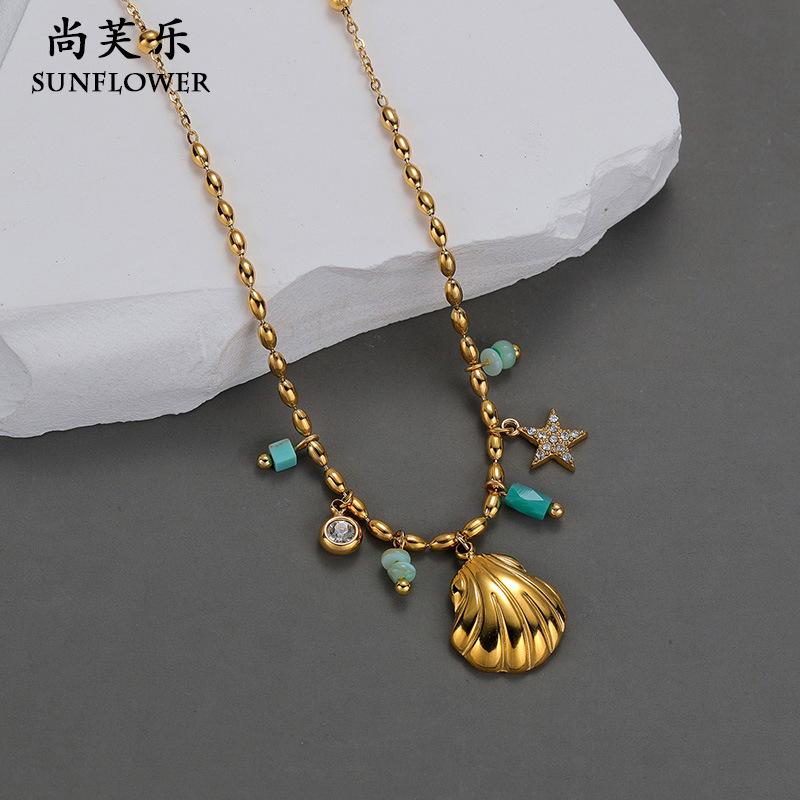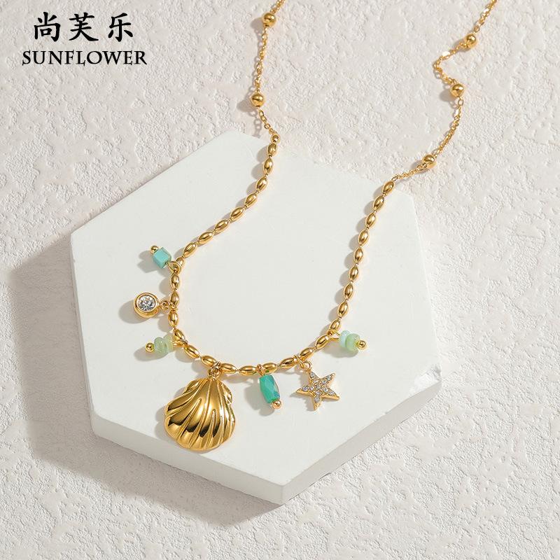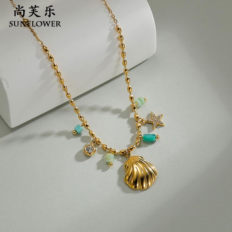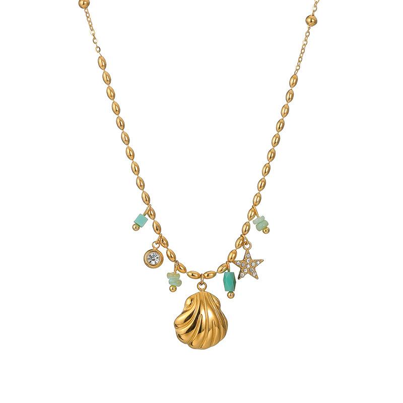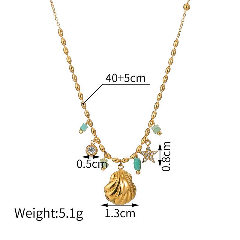Nuevo collar de estrella de cinco puntas con incrustaciones de concha de acero inoxidable de estilo retro, diseño de nicho de lujo ligero, exquisita cadena de clavícula al por mayor