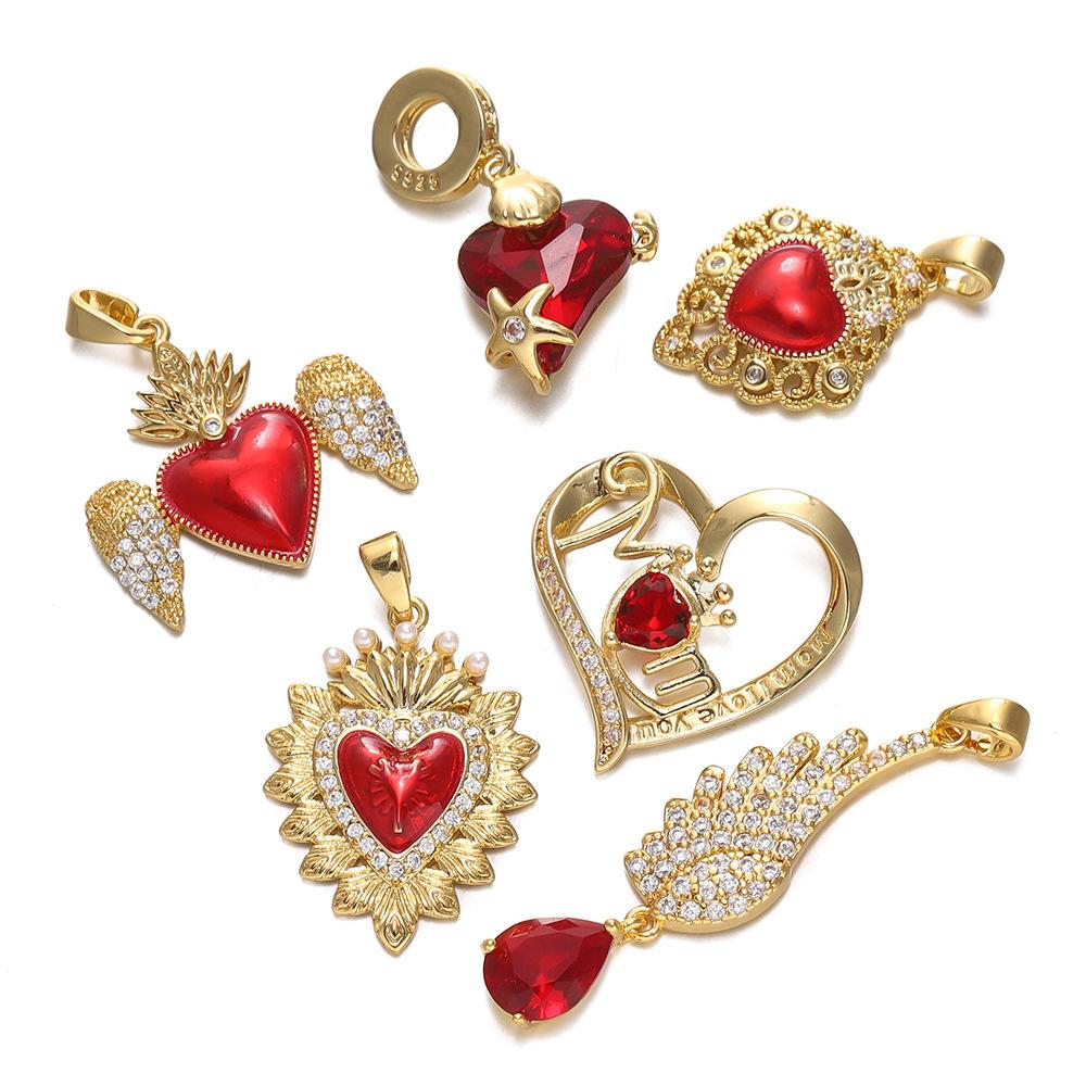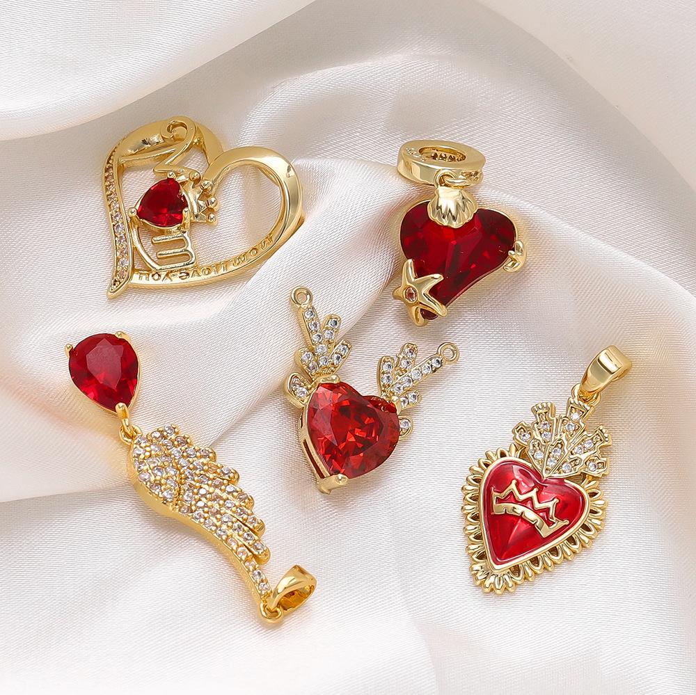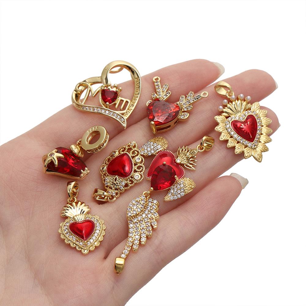 Accesorios de joyería DIY color oro cobre 18K chapado alas de circonita colgante de amor moda colgante de collar Joker