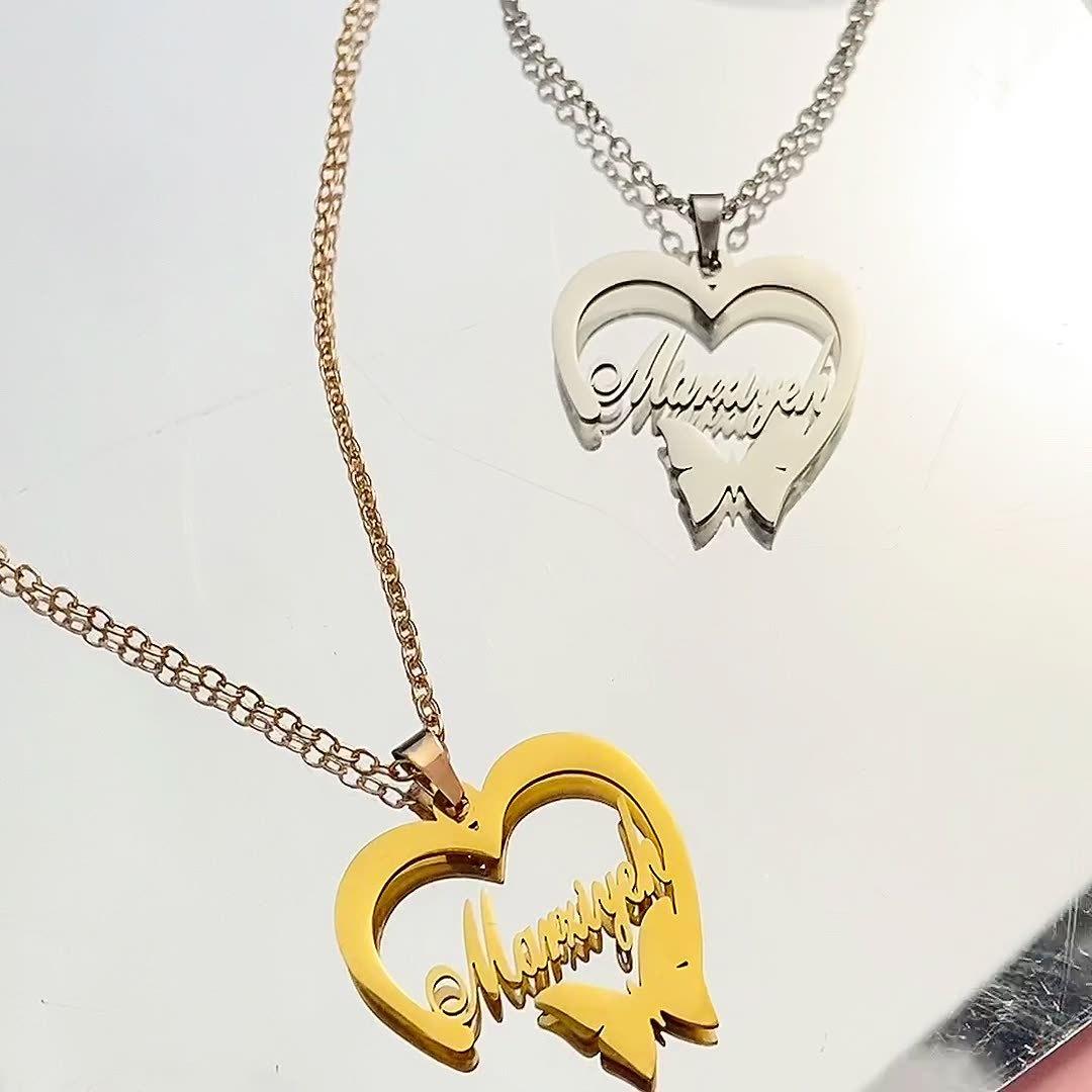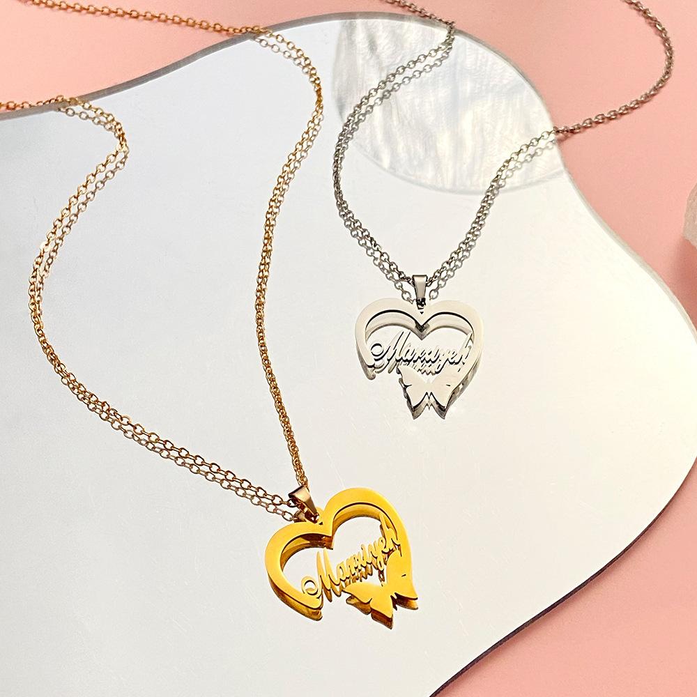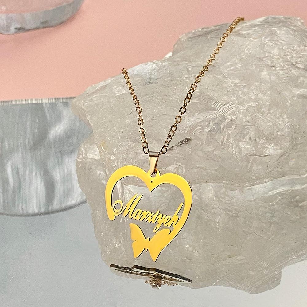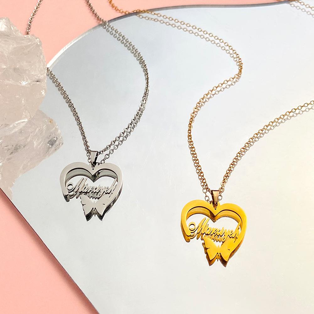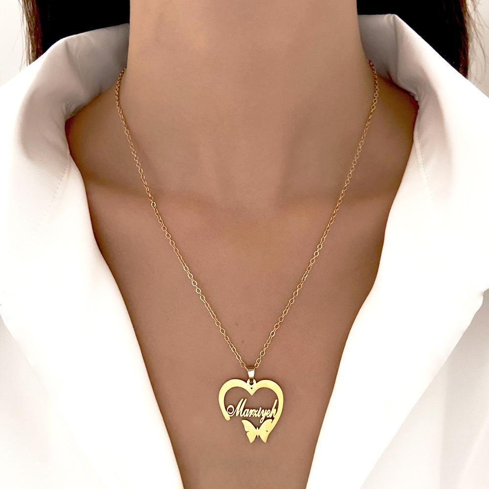 Collar con colgante de acero inoxidable con forma de mariposa y letras huecas de Amazon Explosions para mujer, collar sencillo.