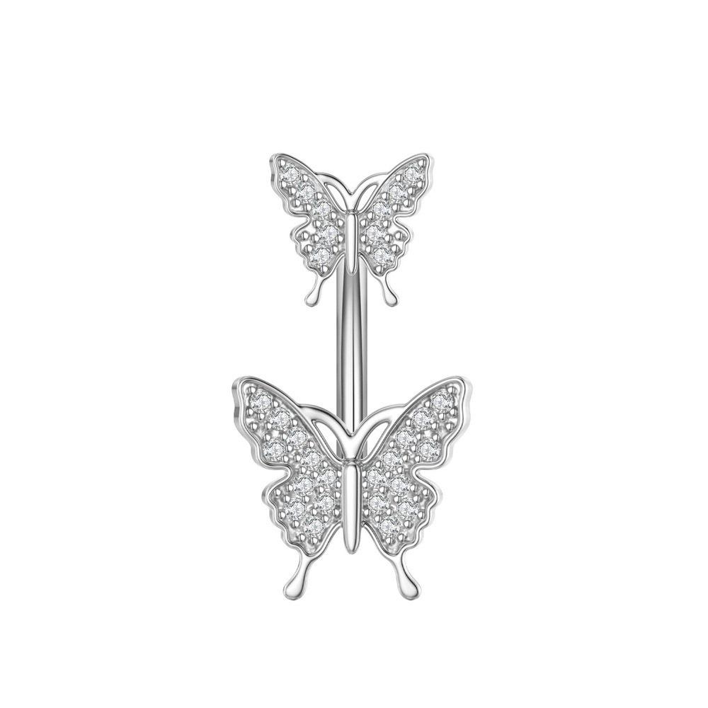 Acero inoxidable 316 transfronterizo con incrustaciones de circonita personalidad europea y americana hebilla para el ombligo doble mariposa clavo para el ombligo joyería para piercing del cuerpo humano