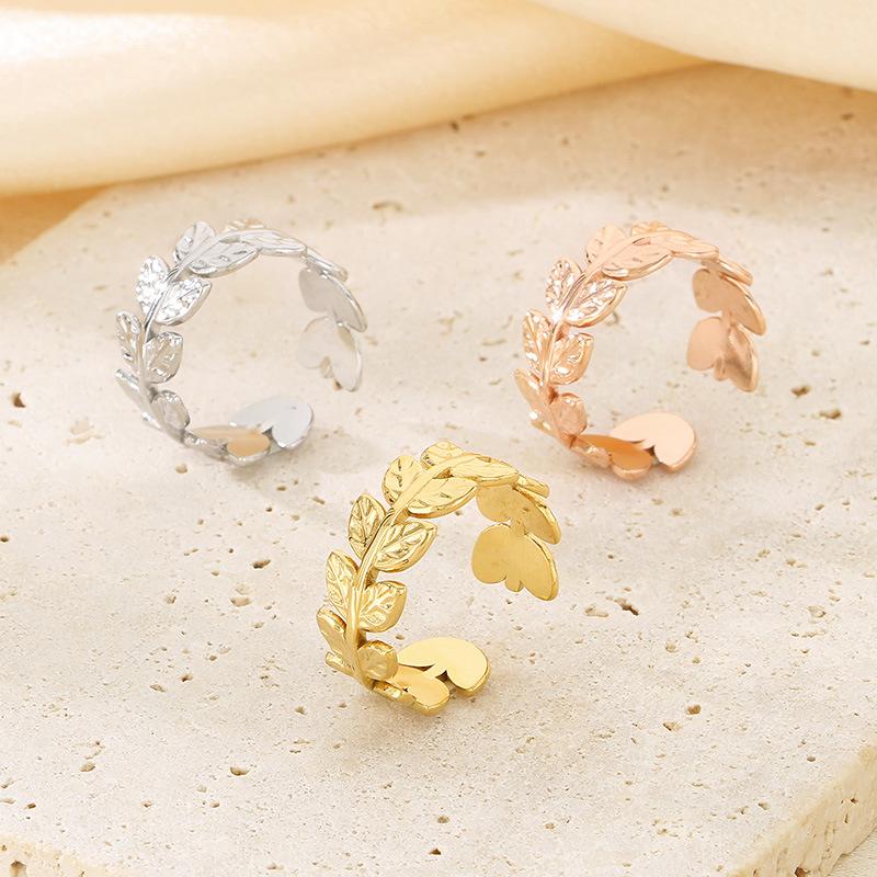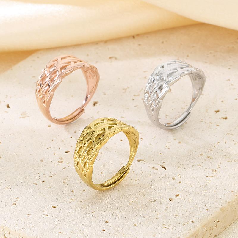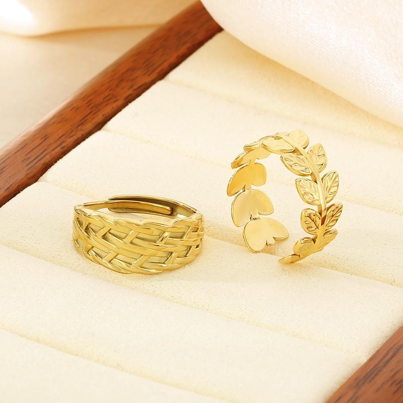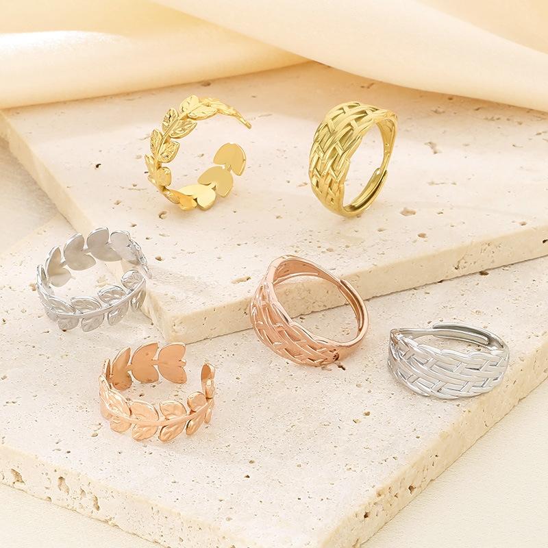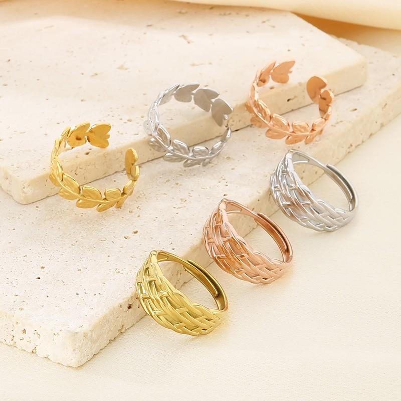 Compra Anillo abierto de acero inoxidable tejido cruzado exagerado estilo ins europeo y americano, nicho, hojas irregulares, textura al por mayor en Joom.pro