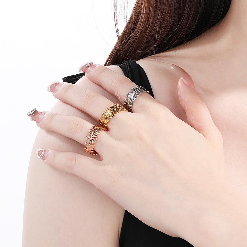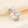 Anillo abierto de acero inoxidable tejido cruzado exagerado estilo ins europeo y americano, nicho, hojas irregulares, textura