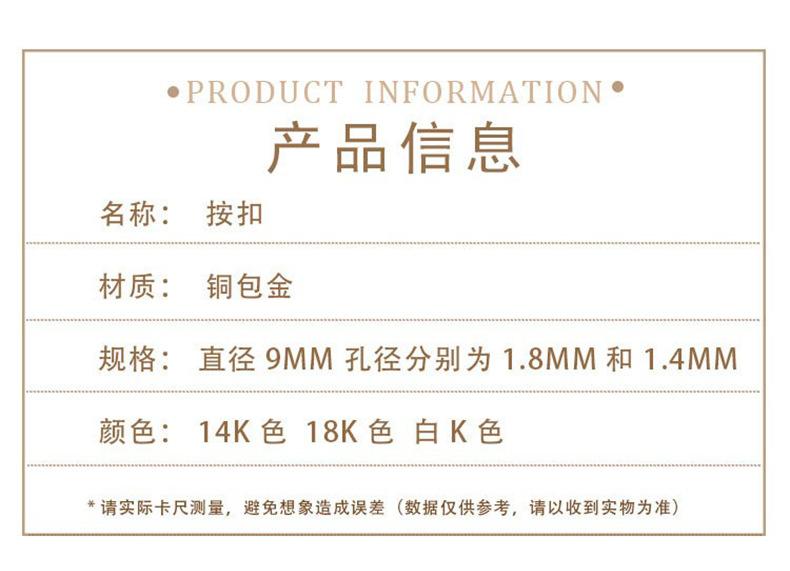 14K light gold snap (1), 18K deep gold snap (1), White K-button (1)