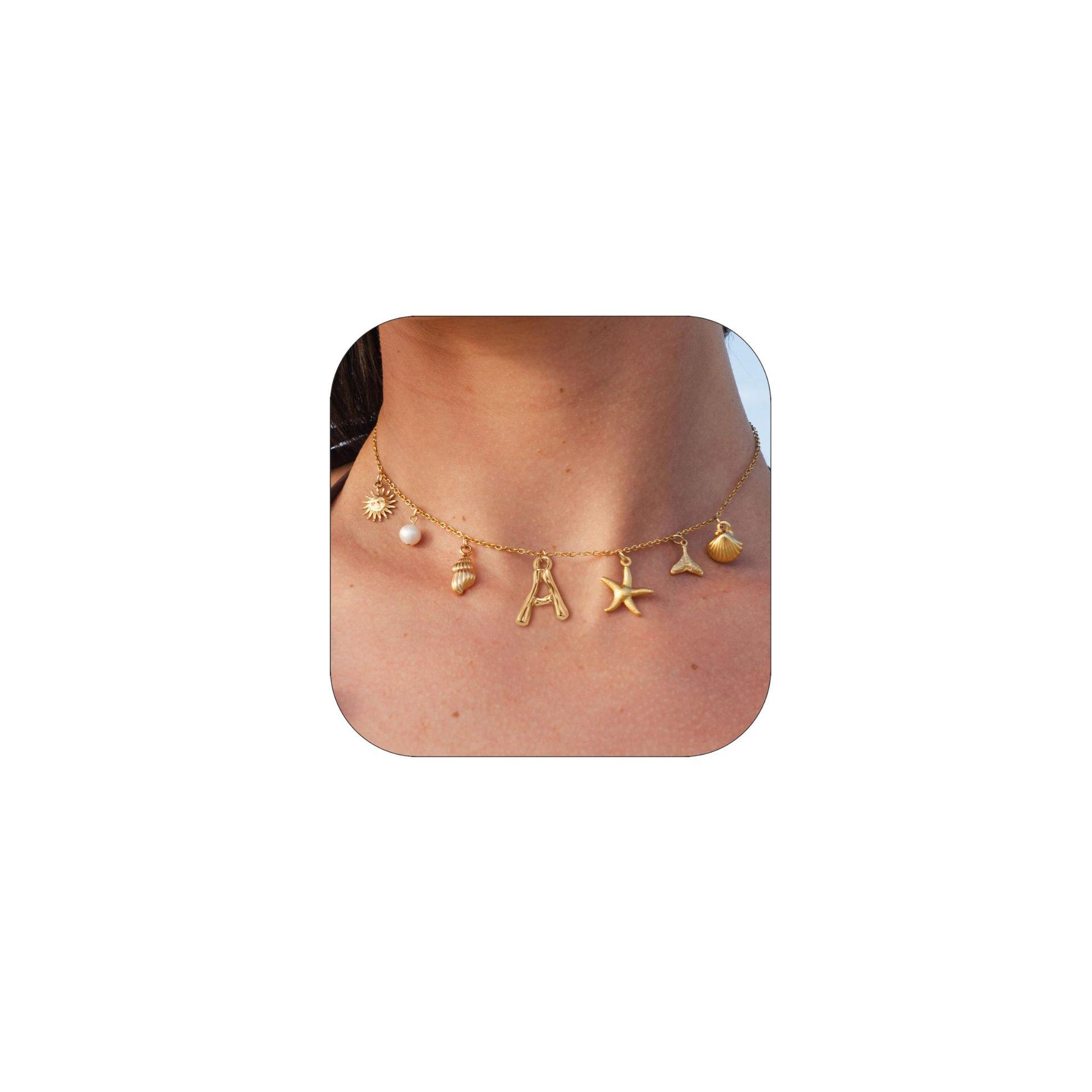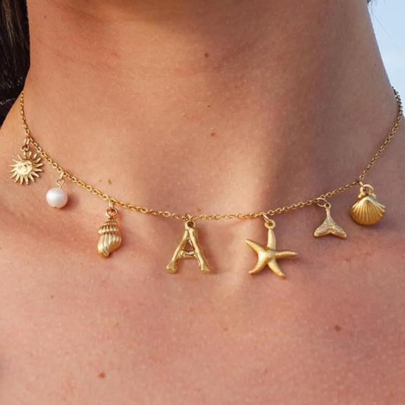 Collar con colgante de concha de bambú de 26 letras, de moda, muy vendido entre Europa y América, chapado en oro auténtico de latón
