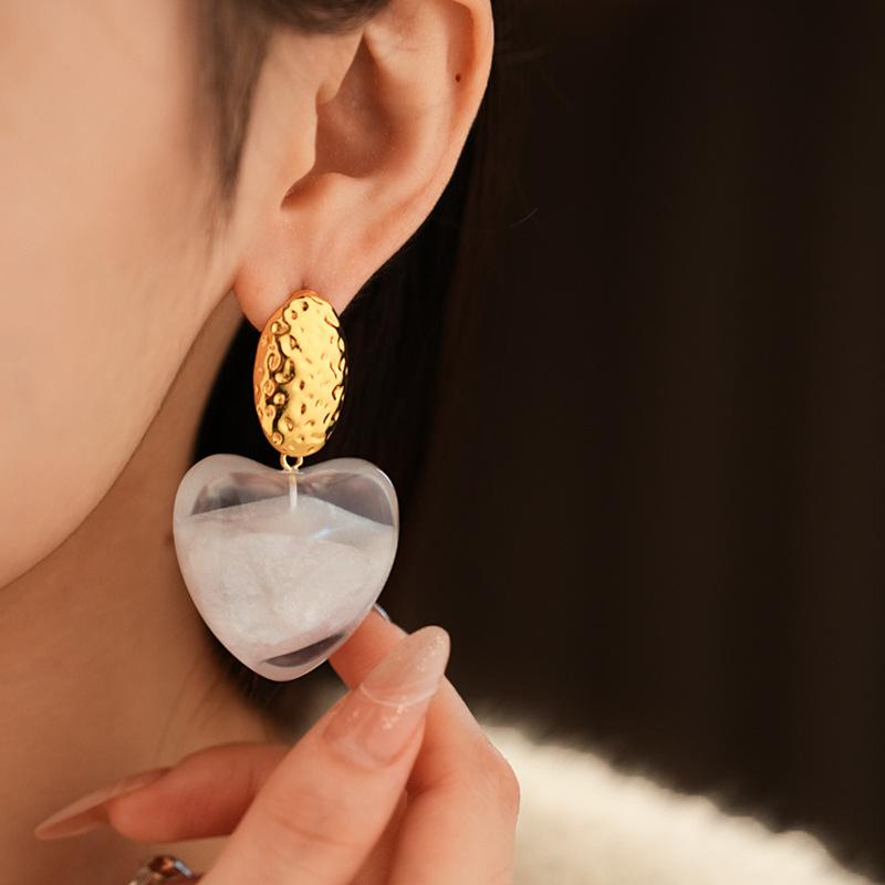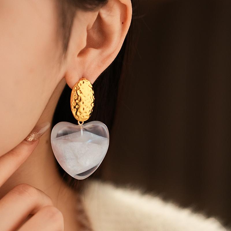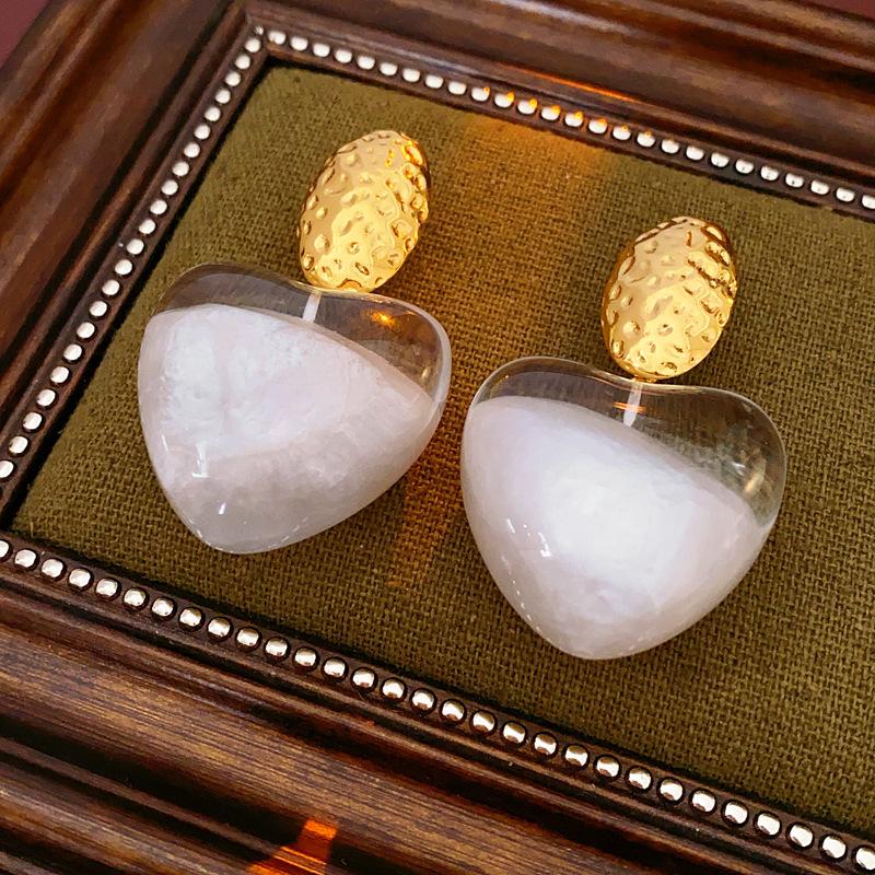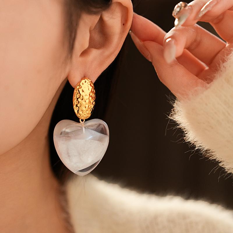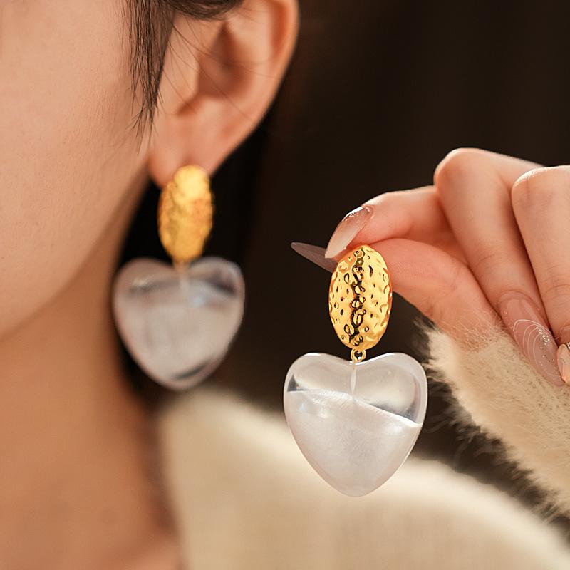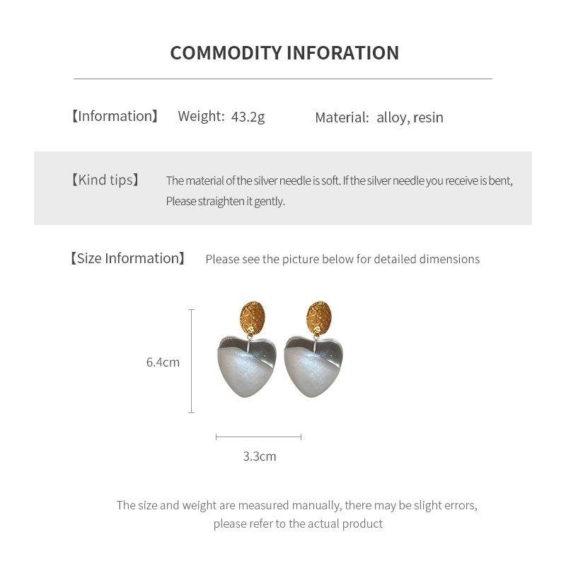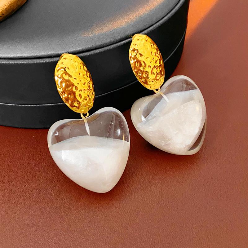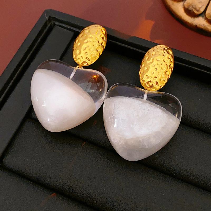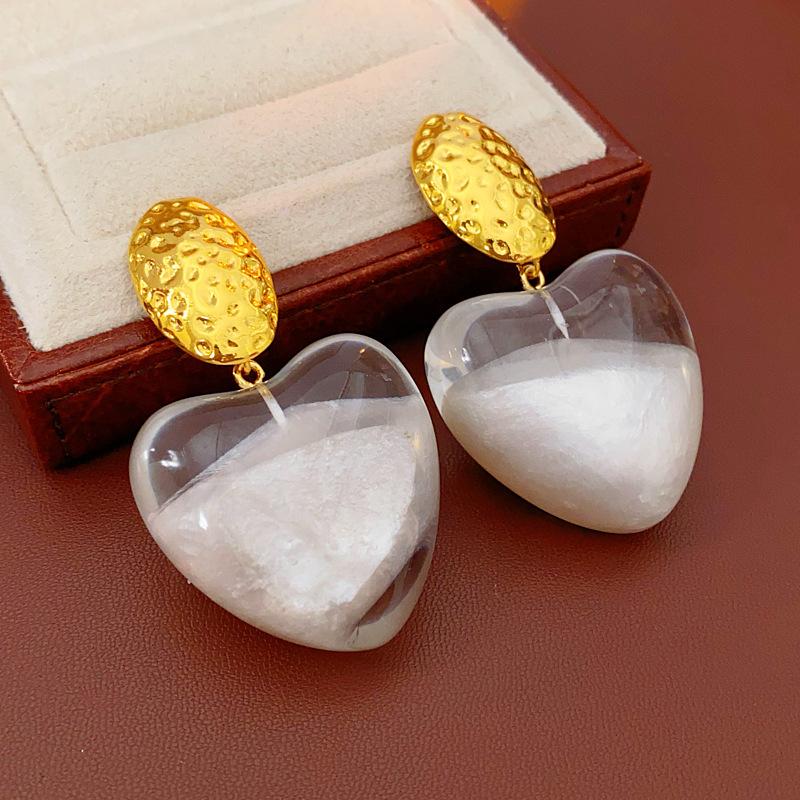 Pendientes ovalados de resina con forma de corazón y aguja de plata, pendientes de moda sencillos de nicho, pendientes exagerados versátiles de alta gama, fábrica de inicio