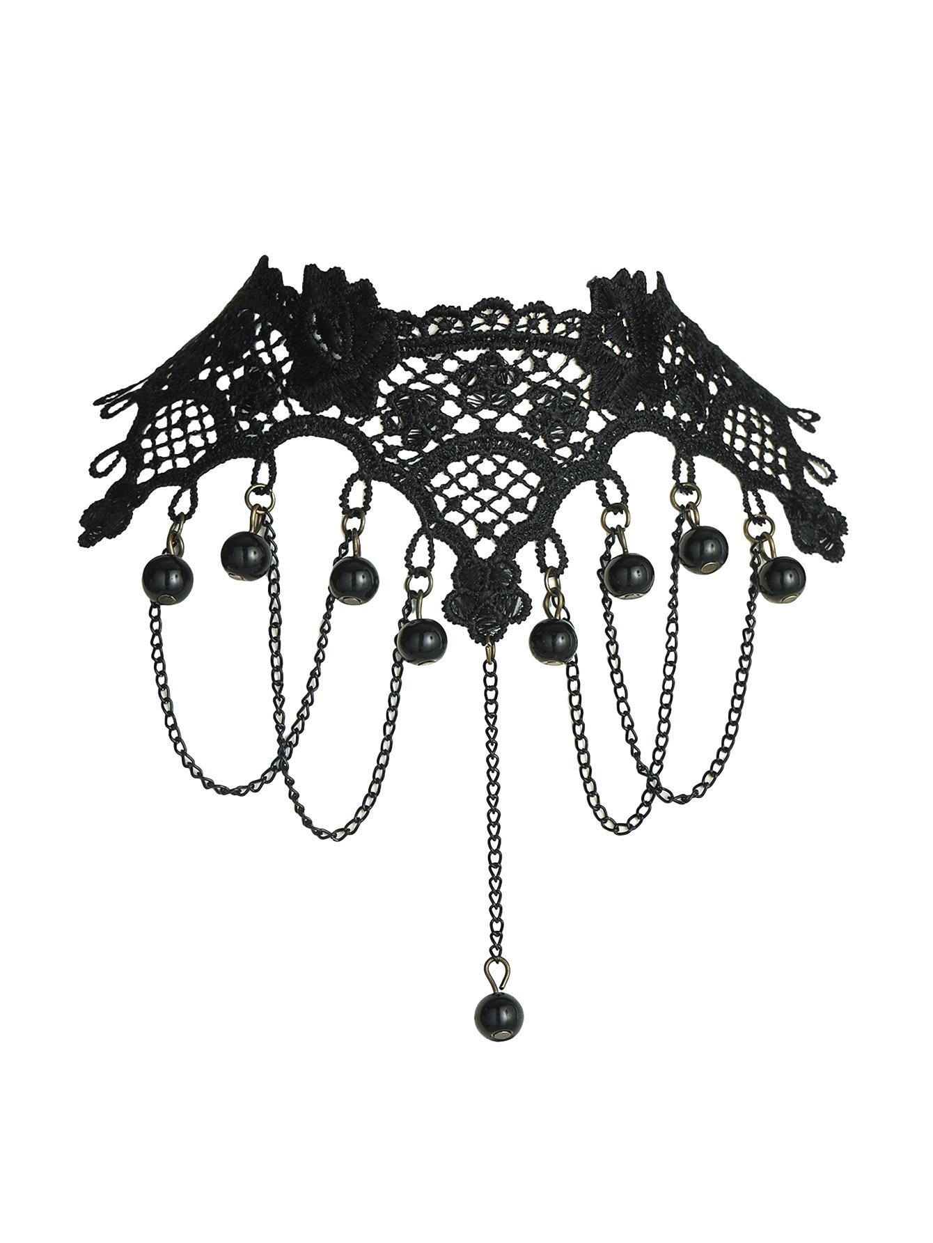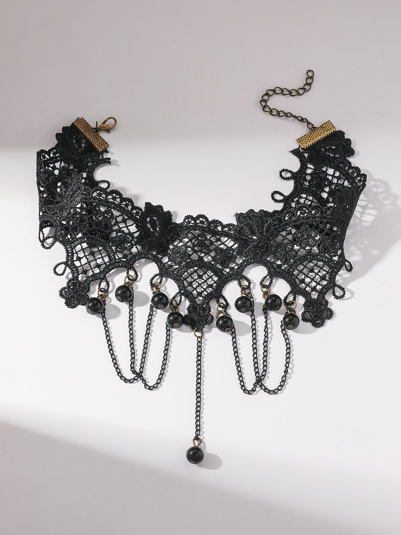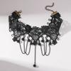 Collar de encaje oscuro retro transfronterizo europeo y americano con personalidad para mujer, collar de cadena de encaje con borlas exageradas para clavícula