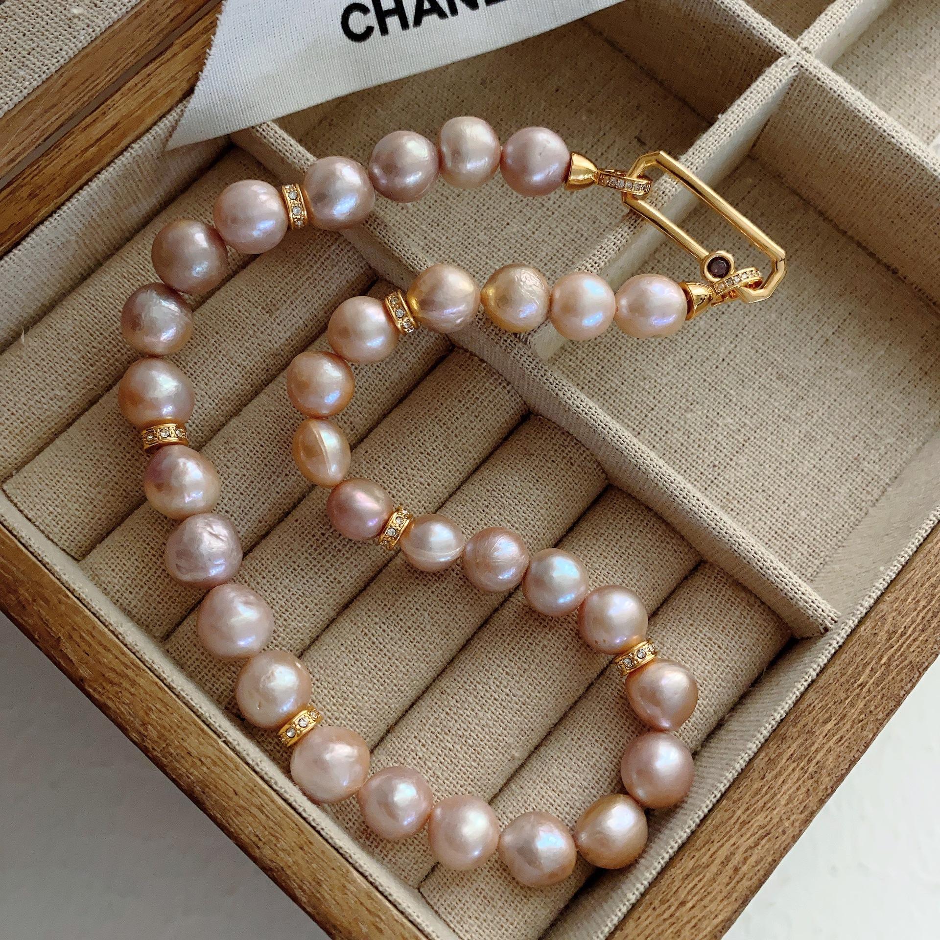 Collar de Dama Estilo Retro Francés Lujo Accesible Collar de Perlas Barrocas Naturales Cadena de Clavícula Nicho Elegante para Mujer