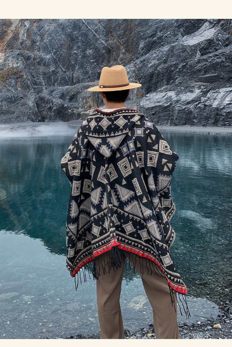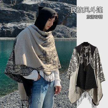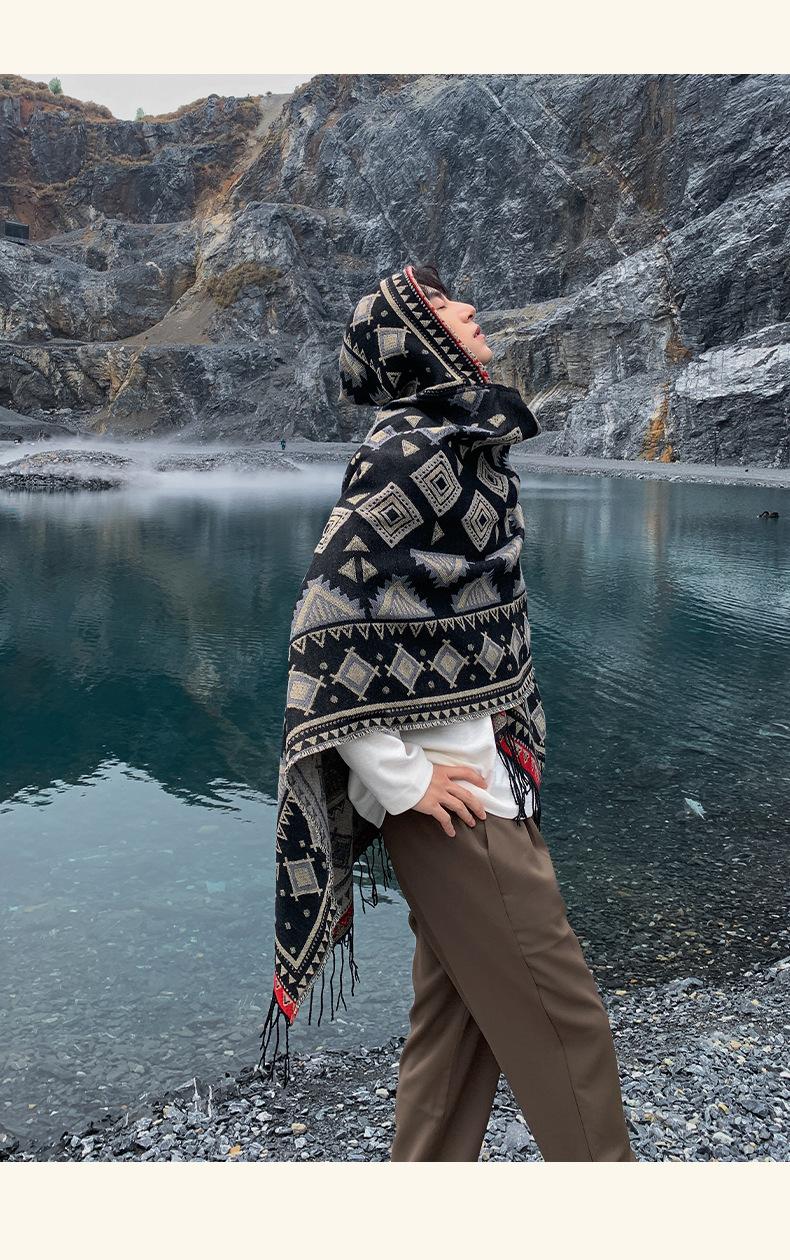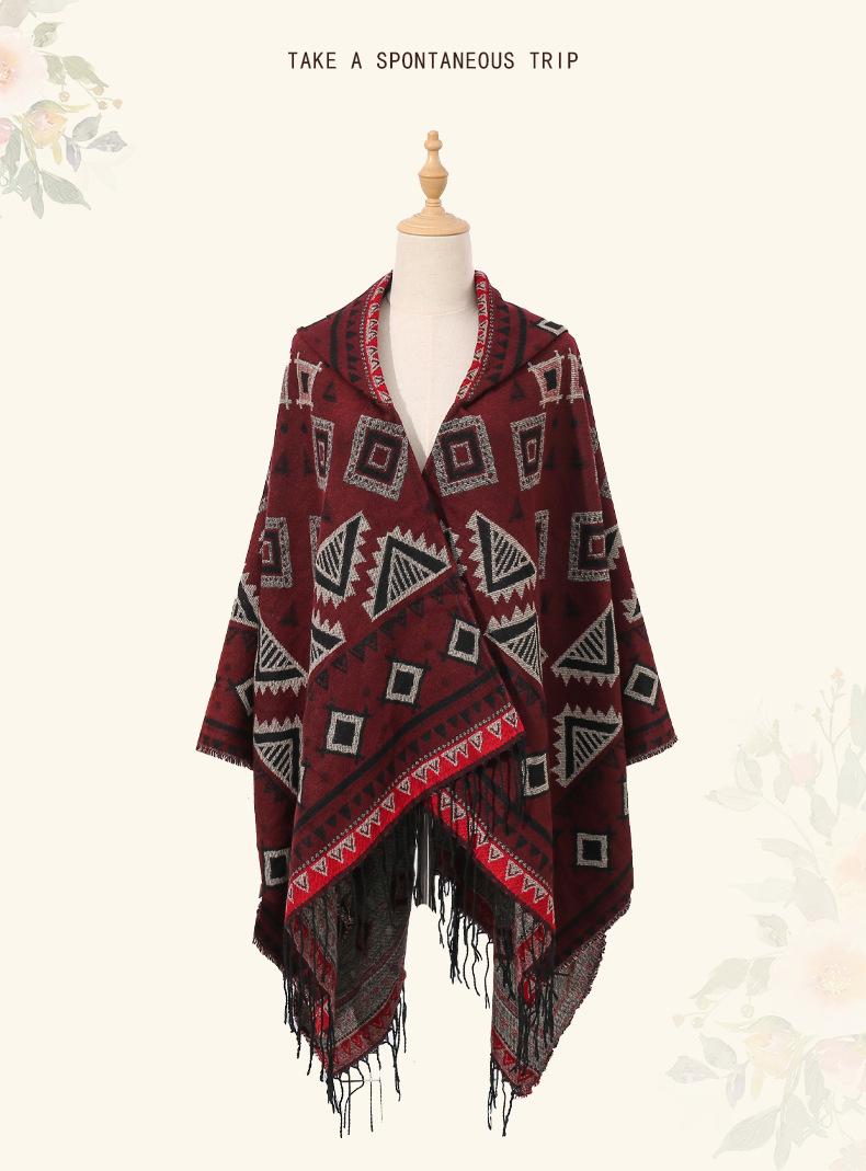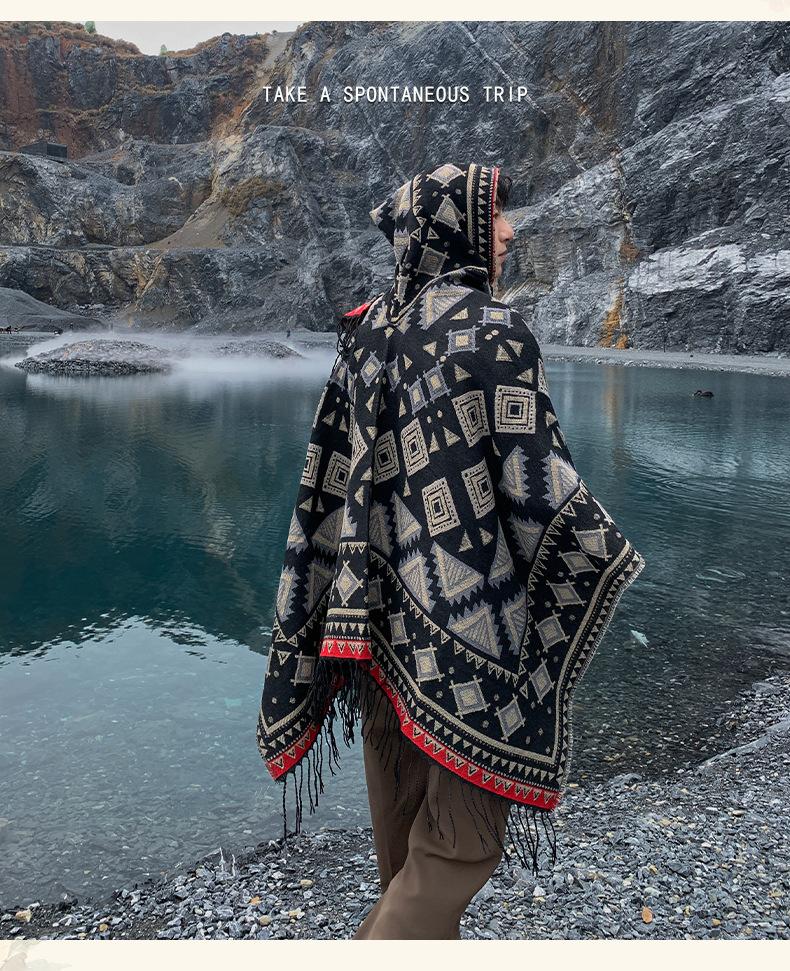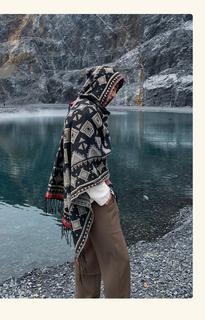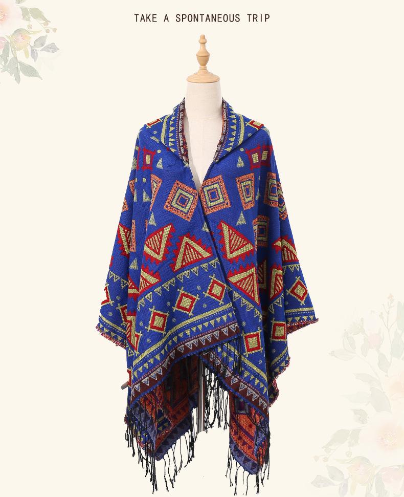 Chal con capucha de estilo étnico turístico para mujer, para montar a caballo, estilo bohemio, de Xinjiang, Yunnan, con aire acondicionado, para habitación, con borlas, camisa tejida