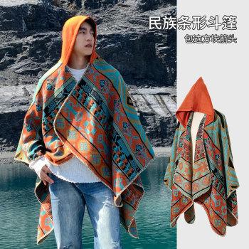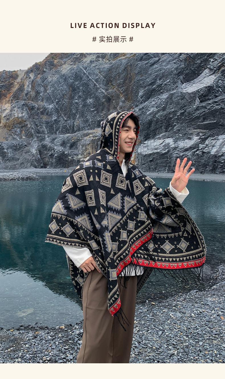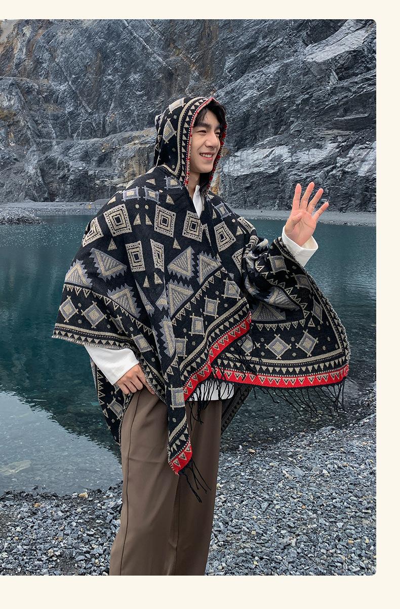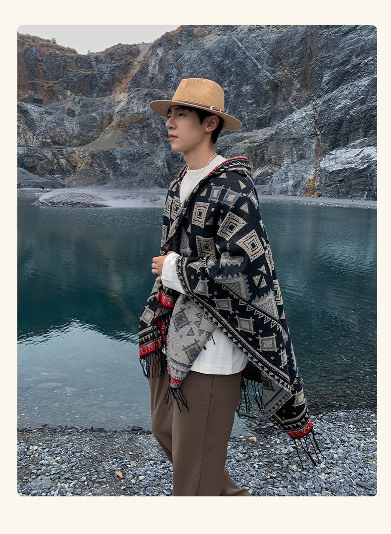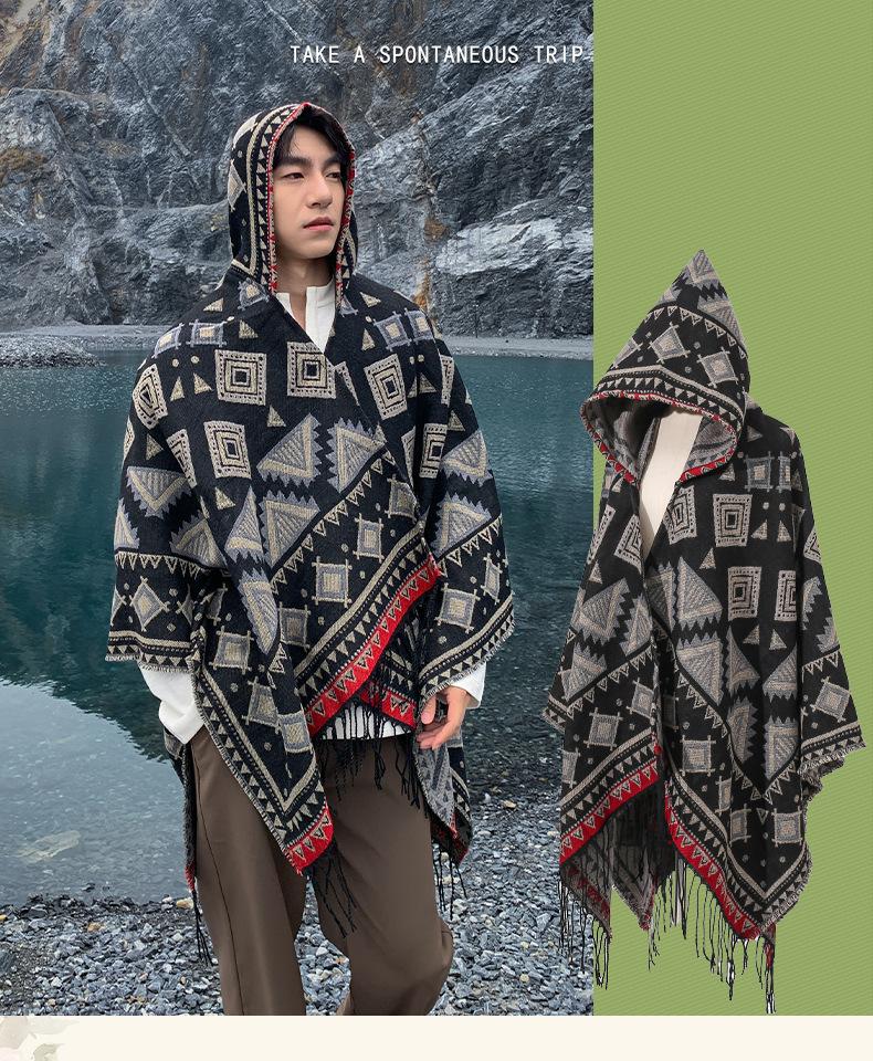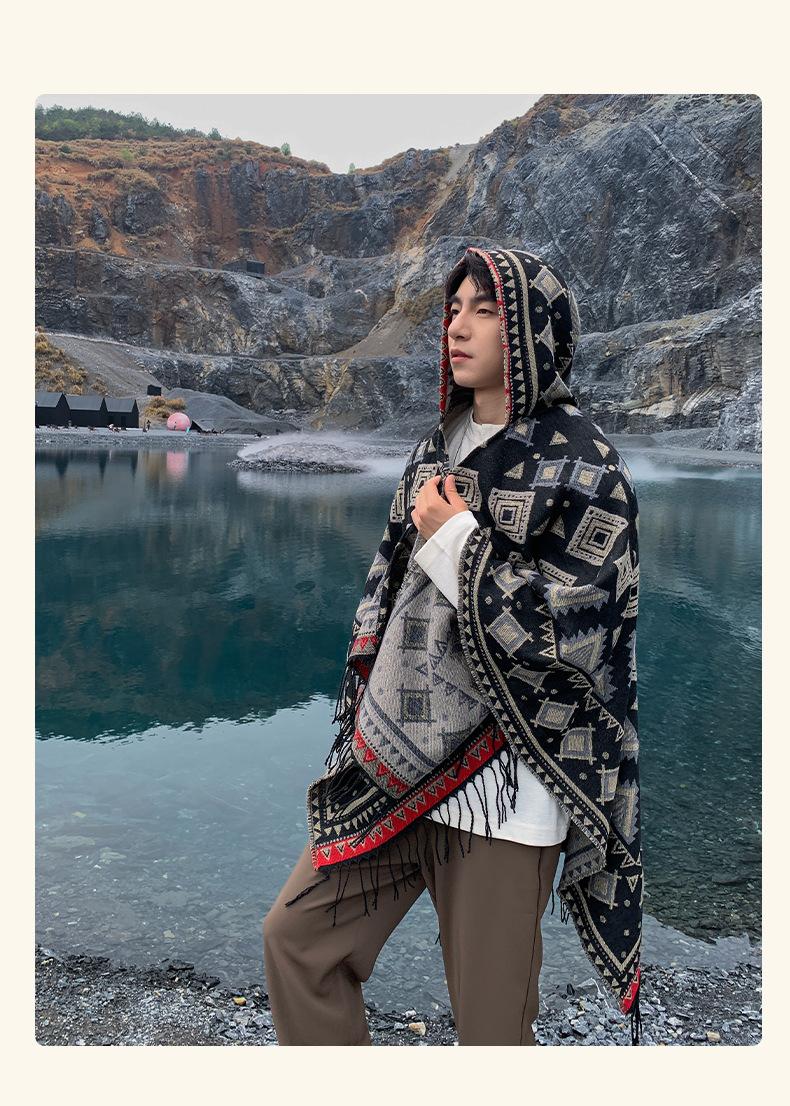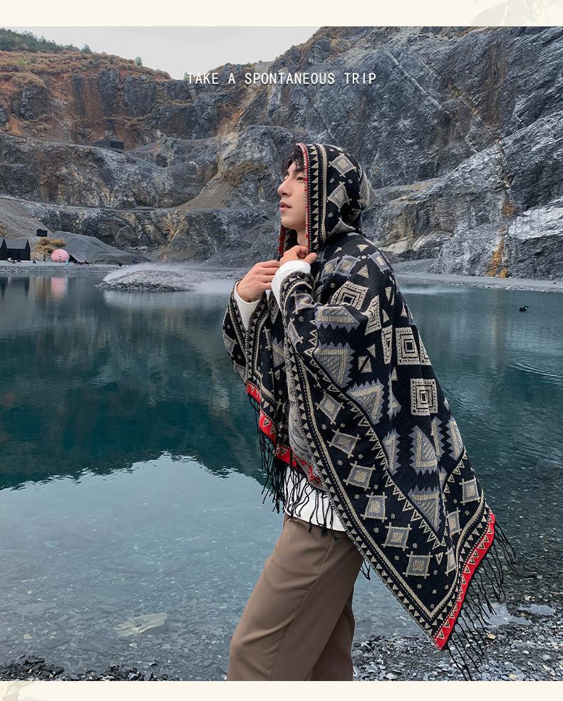 Chal con capucha de estilo étnico turístico para mujer, para montar a caballo, estilo bohemio, de Xinjiang, Yunnan, con aire acondicionado, para habitación, con borlas, camisa tejida