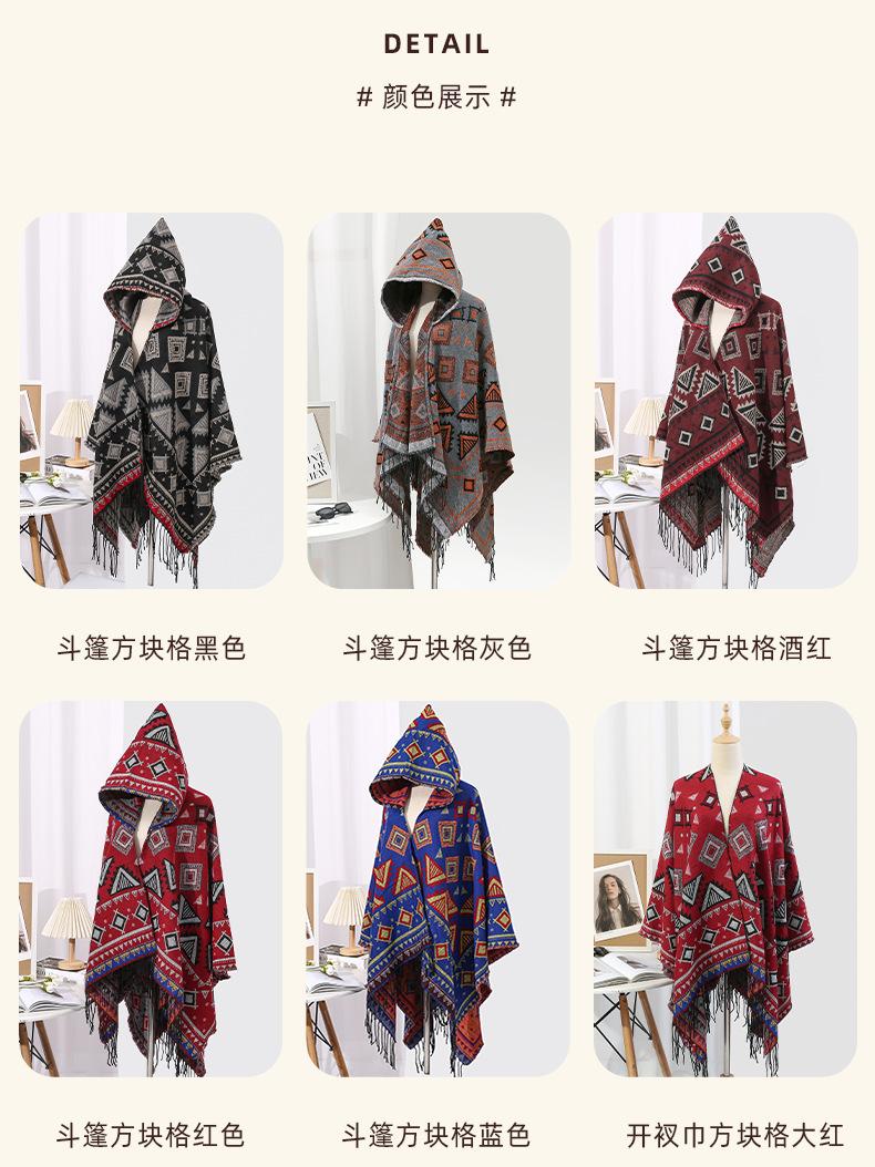 Cloak square blue, Cape square grid red, Cape square grid black, Cloak square wine red, Cape square gray, Slit...