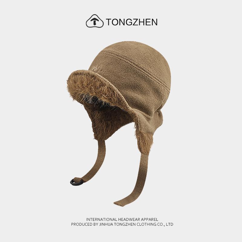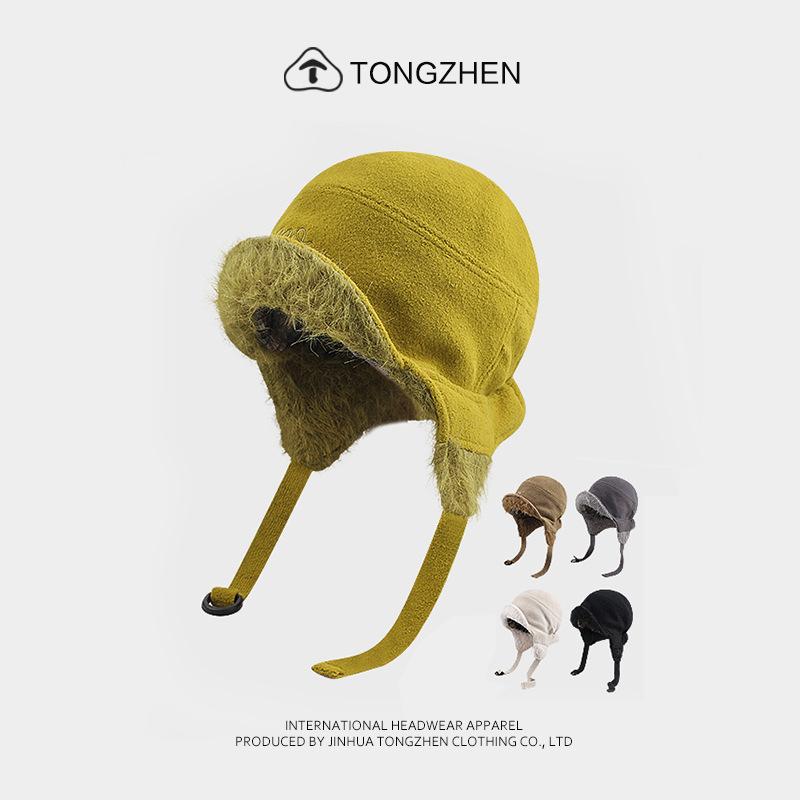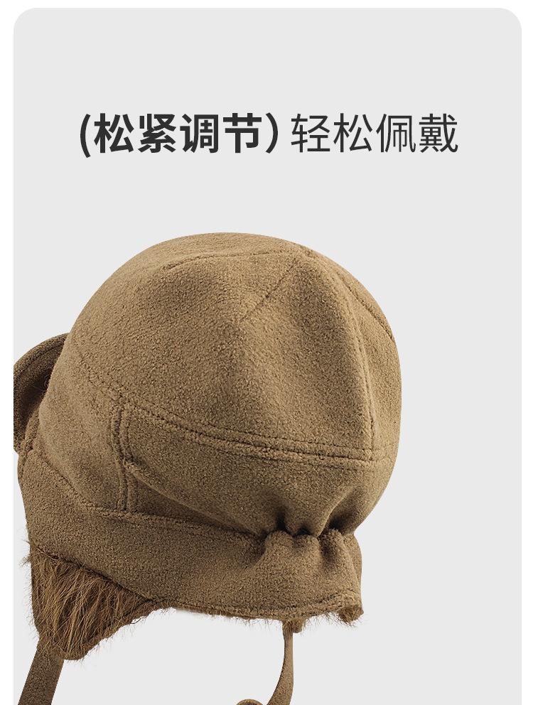 Corea del Sur Cubreorejas Cálido Sombrero de Piloto de Lana Lei Feng Sombrero Cortavientos y a Prueba de Frío Engrosado de Doble Cara para Cara Pequeña Combinación con Todo Invierno