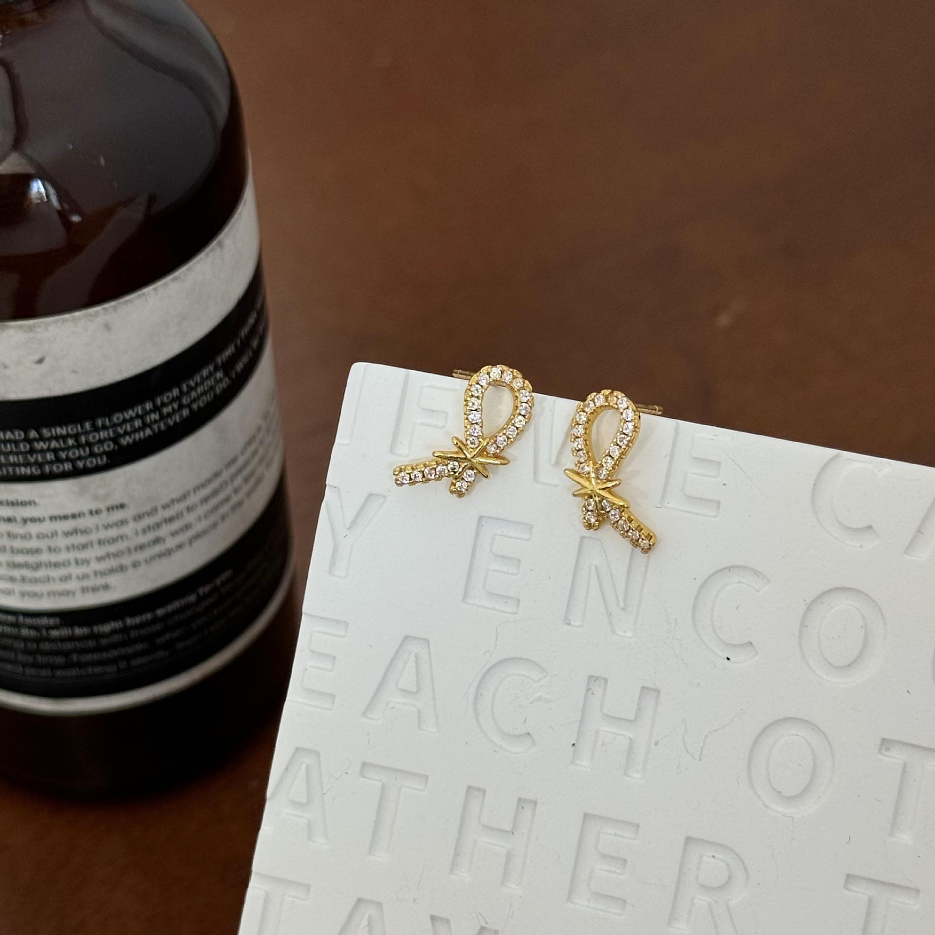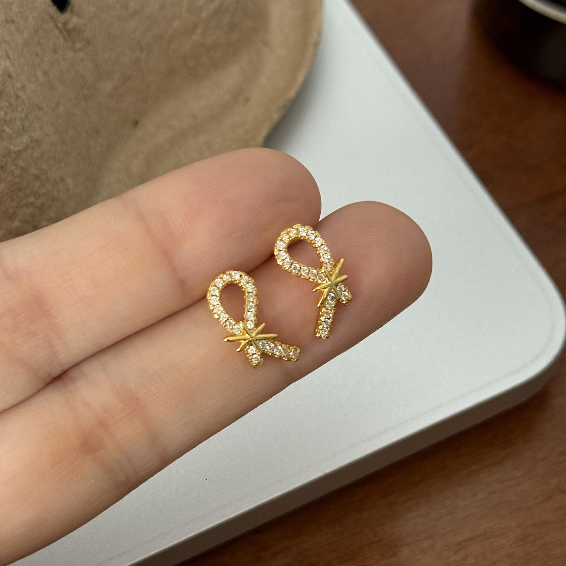 Versión coreana de los pendientes de estrella de seis puntas de oro con personalidad femenina Joker viento frío red lazo rojo explosiones transfronterizas pendientes al por mayor