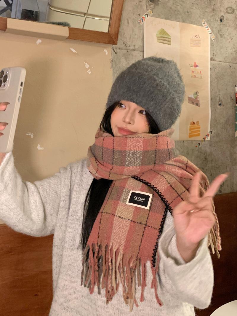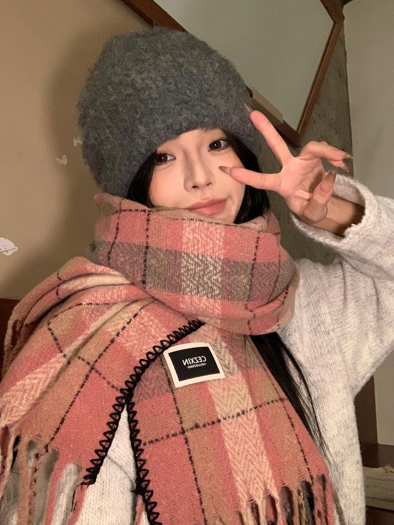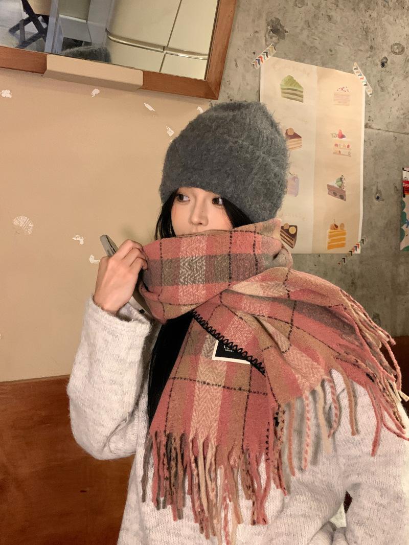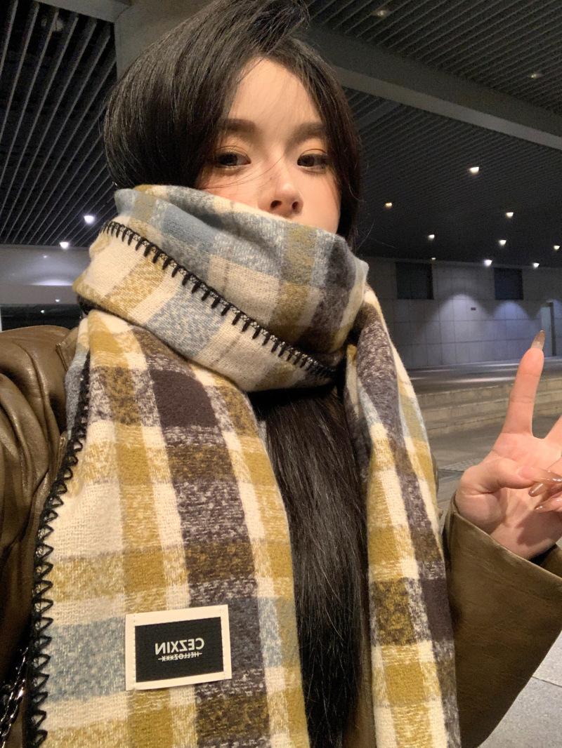 Bufanda Mauhair de invierno 2024 para mujer, nueva, estilo coreano, de alta gama, retro, a cuadros, cálida, para hombre, de lana
