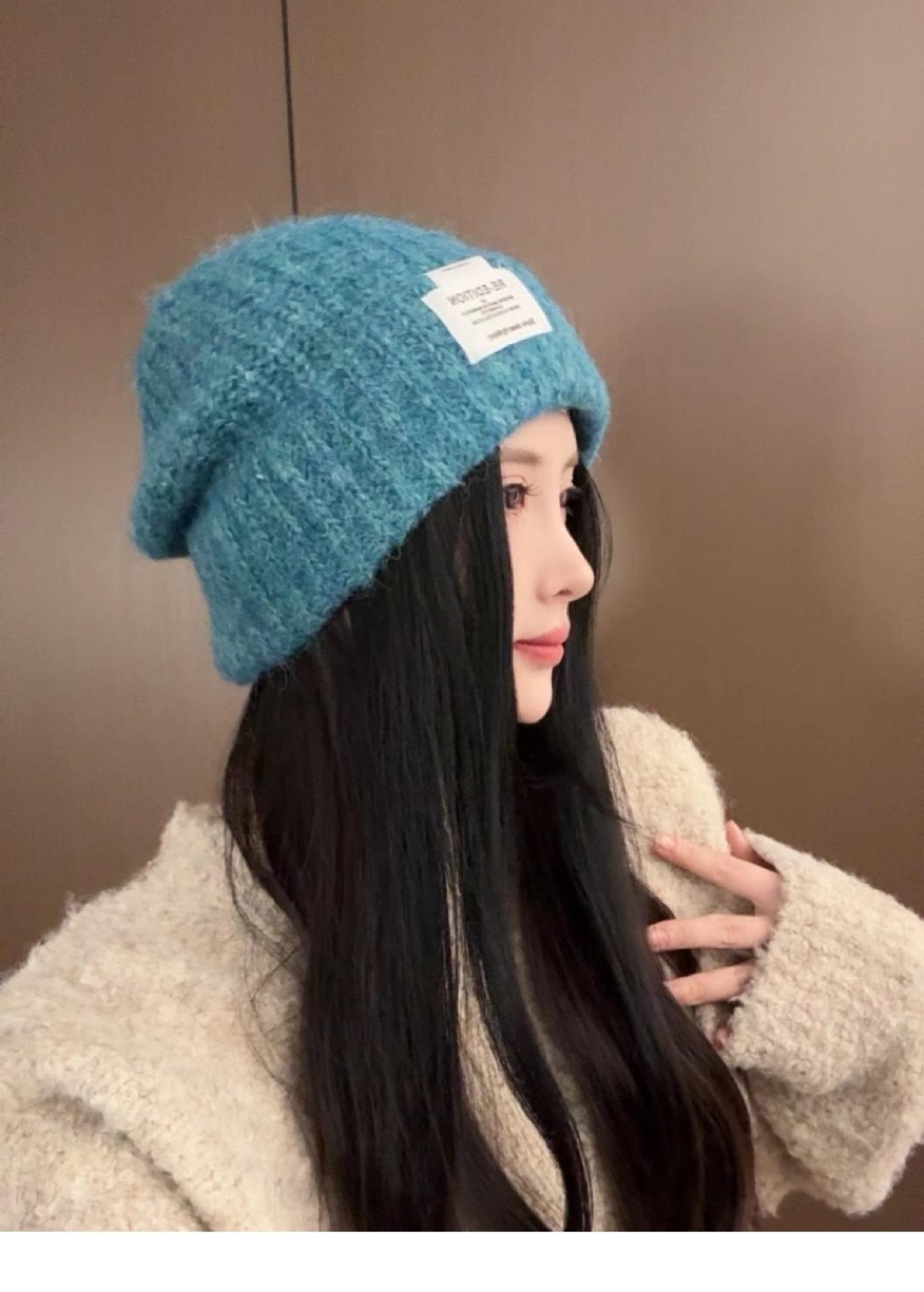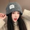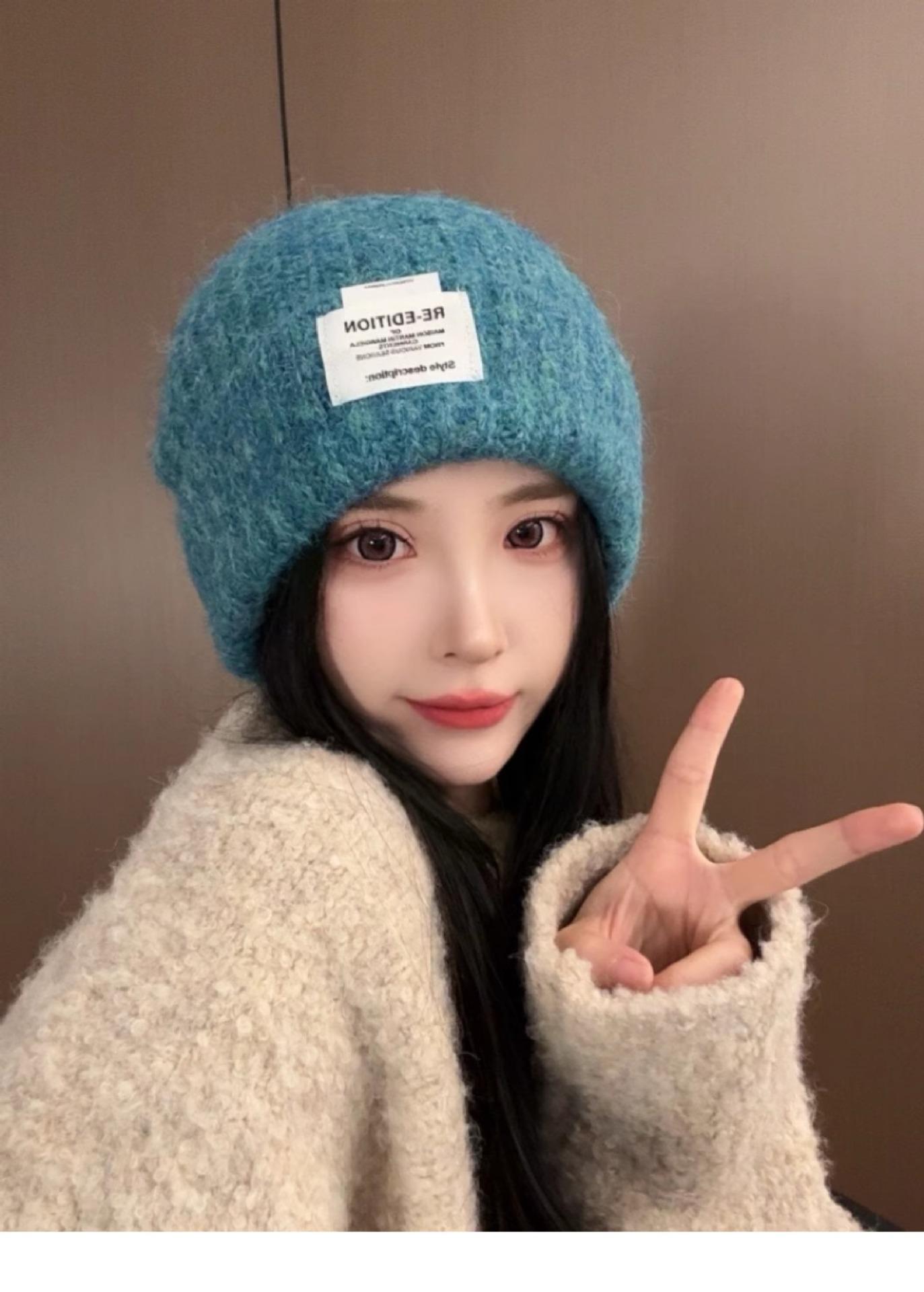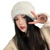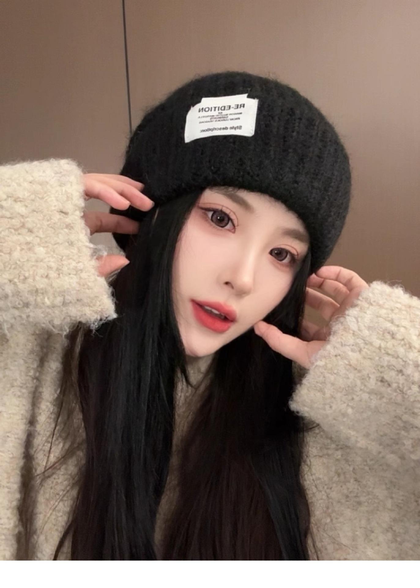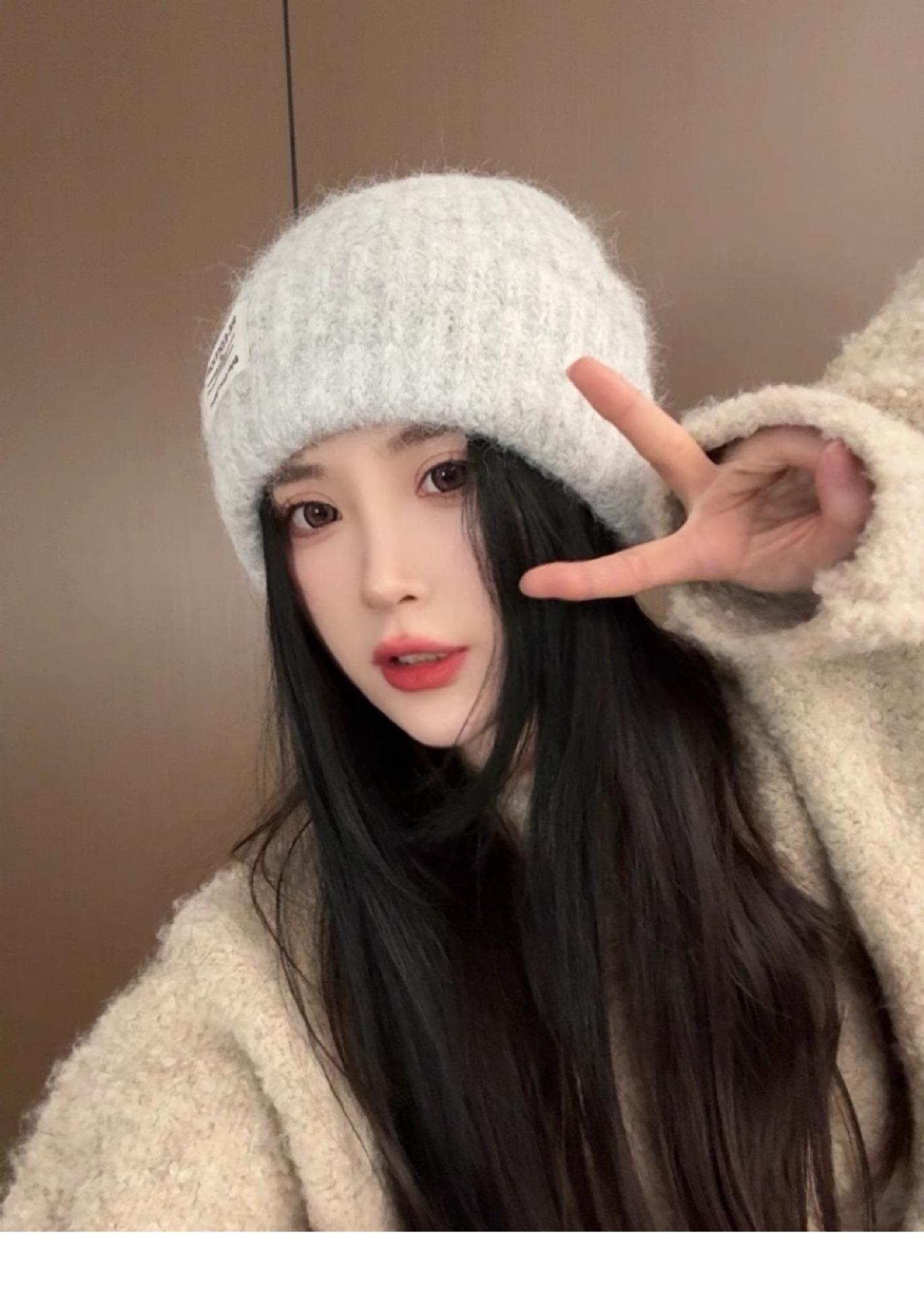 Gorro de lana para mujer, holgado, grande, con protección para las orejas, estilo coreano, liso, combinable, cálido, de punto, para invierno