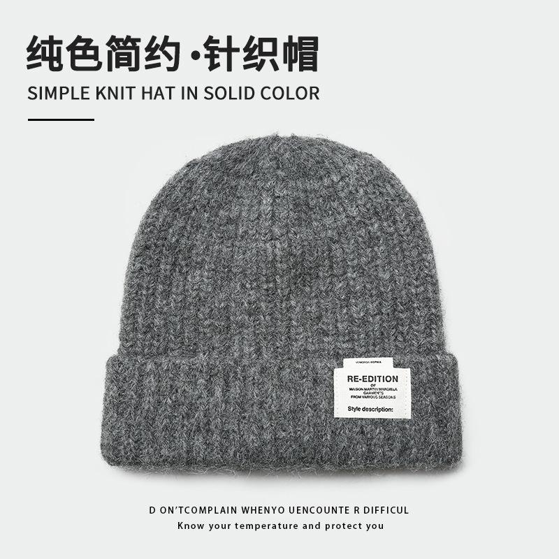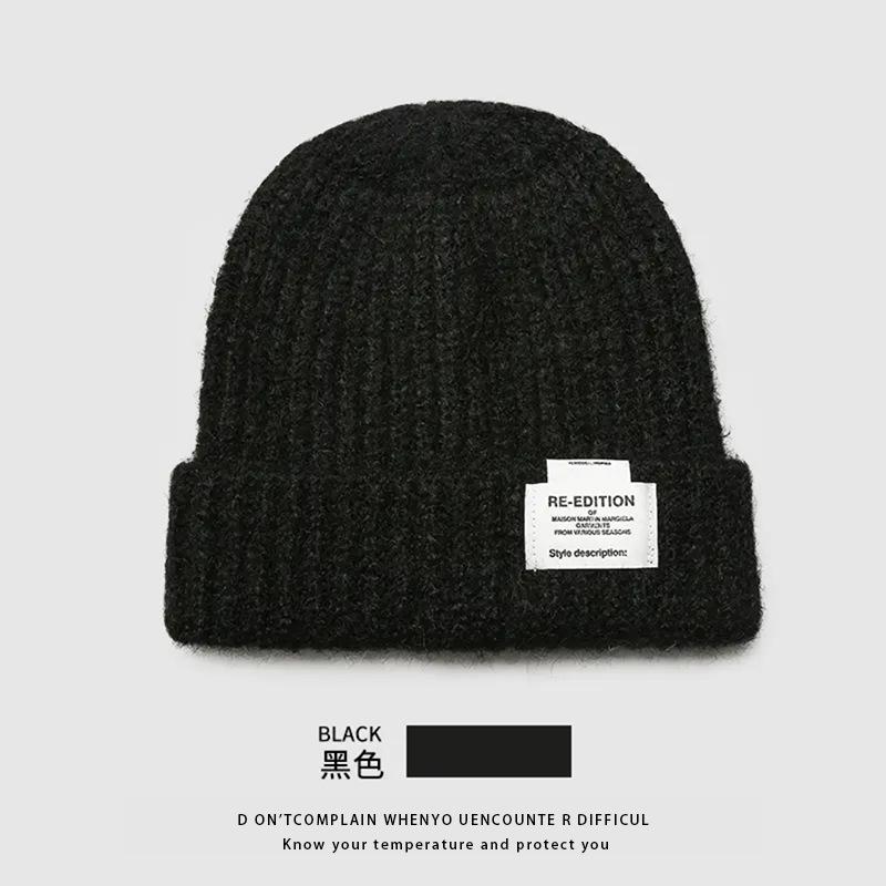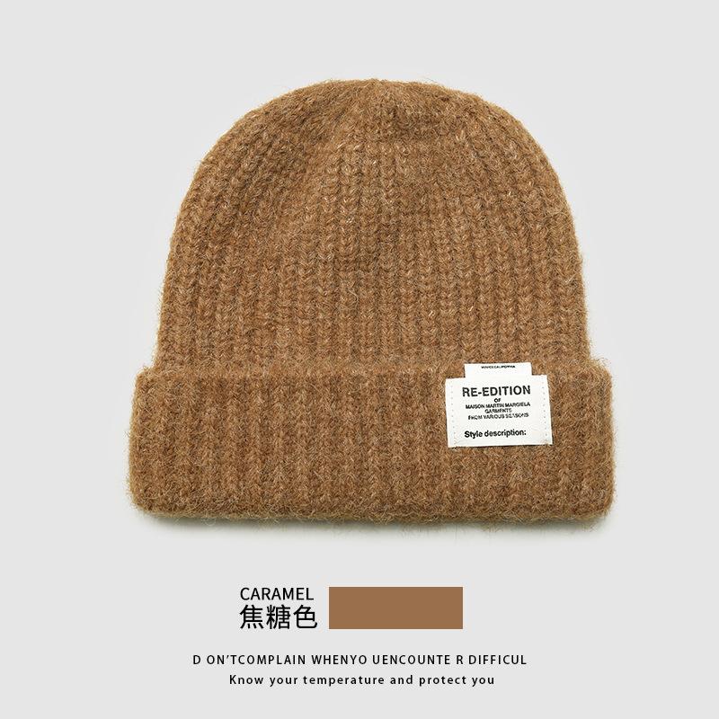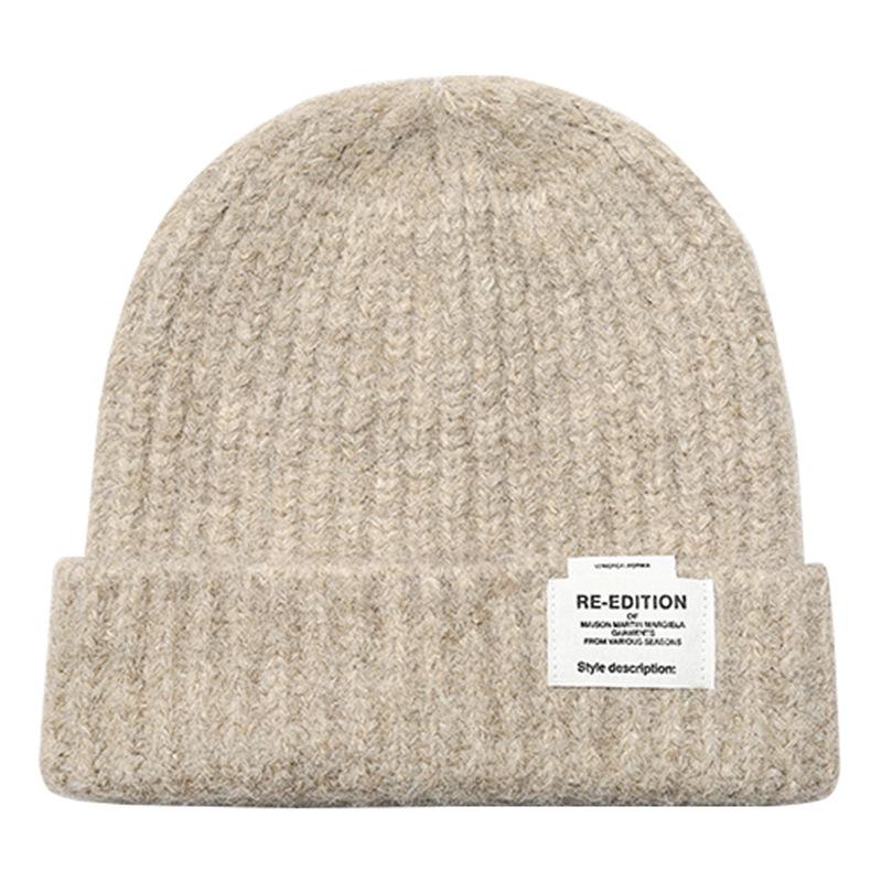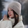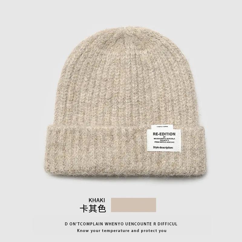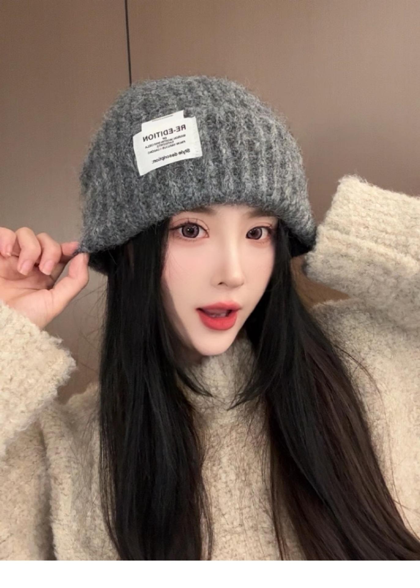 Gorro de lana para mujer, holgado, grande, con protección para las orejas, estilo coreano, liso, combinable, cálido, de punto, para invierno